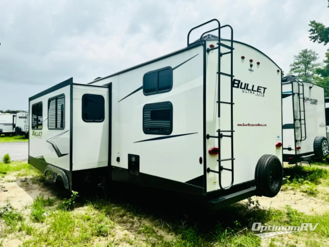 With any Keystone Bullet travel trailer you can experience ultra-lightweight camping with style! The interior design and functionality will impress you, and the stunning cabinetry, the vaulted ceilings, and the built-in laundry chute are just a few of the highlights. Each is built with Hyper Deck RV flooring that is stronger, lighter and more resilient than traditional wood laminated flooring, a 51 cu. ft. pass-through storage compartment which provides 25% more storage space and has a 40" wider door meaning easier access and more room for supplies, and a docking station, an easily accessible convenience center with water connections, water heater bypass, KeyTV hookups, stabilizer jack switches and winterization access. You will also find a Giggy box, a weather protected, labeled, and fused electric box, plus more Keystone Exclusives. Start your glamorous and carefree trip today in a Bullet!