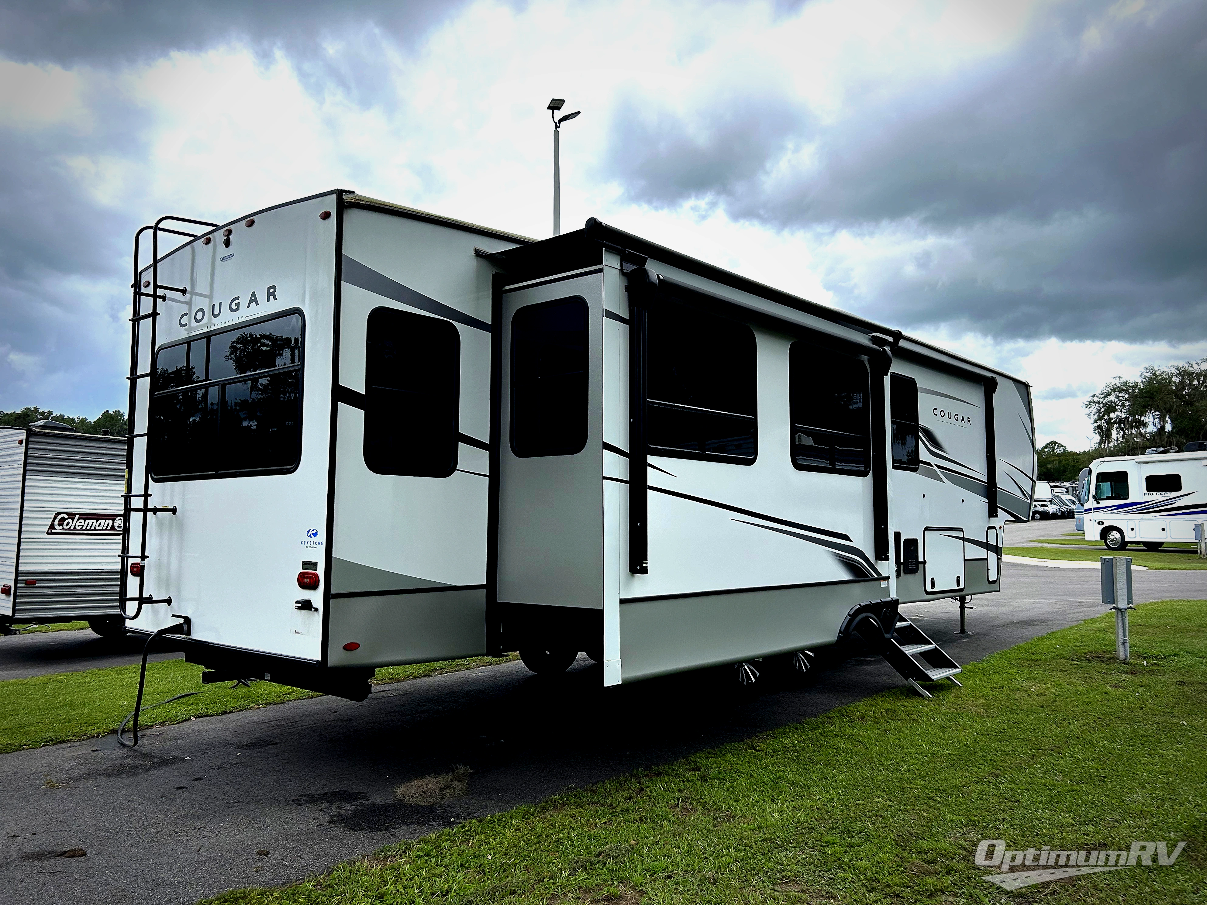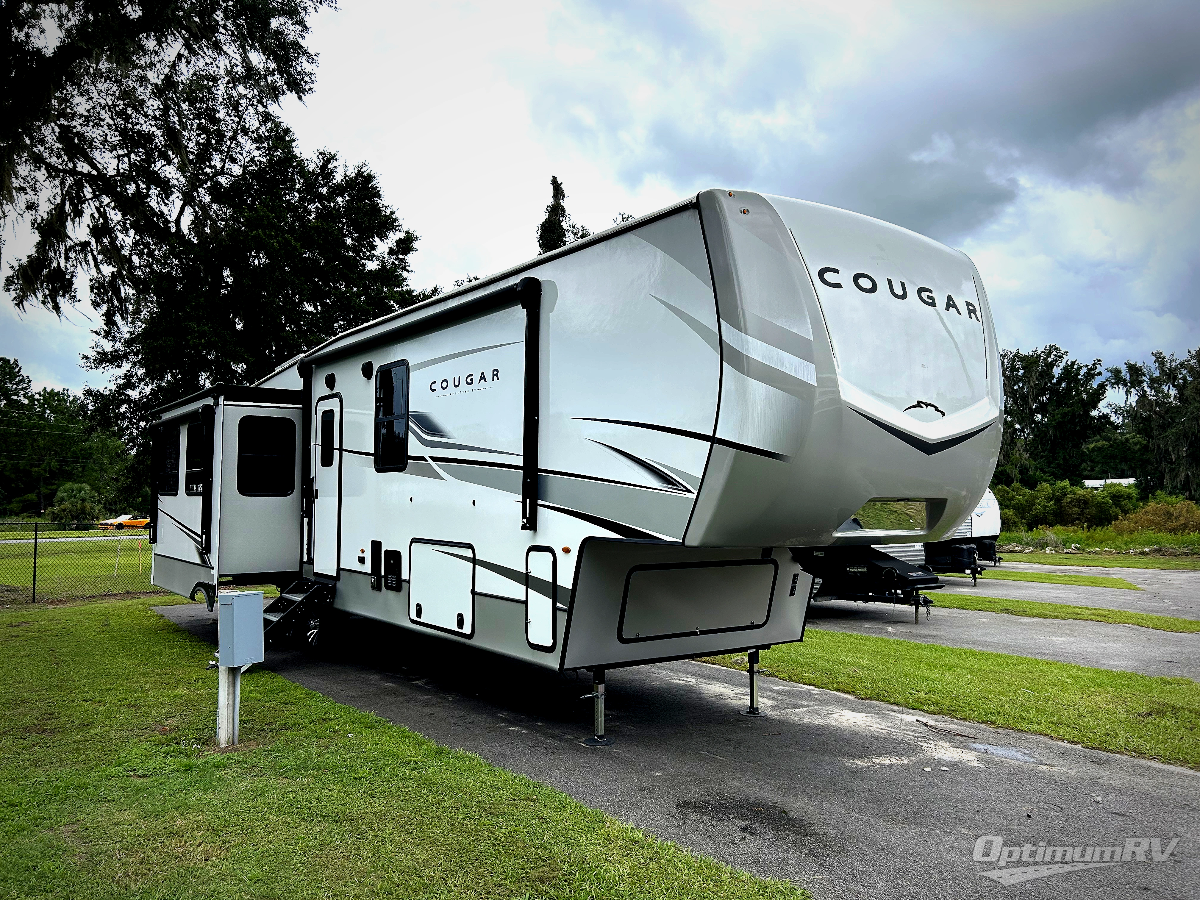 Spend more time having fun and less time worrying about your RV with the Keystone Cougar fifth wheel! These units have all that you will need for excellent vacations. The interior comes with 5/8" one-piece DynaSpan® flooring, tall slide outs for added comfort and head room, night roller shades throughout, and residential, raised-panel hardwood cabinet doors and drawers. You will also enjoy decorative crown molding, a 5,500 BTU electric fireplace with thermostat control and remote, and a Max Air exhaust fan with rain sensor. The exterior is also fully outfitted with a convenience center, friction-hinge entry door, electric four-point auto leveling system, and LCI® SolidStep® on the main entry. There is a full pass-through storage with slam-latch baggage doors, an industry-best 80-gallon fresh tank capacity, a 2" accessory hitch with 300-LB storage capacity, and an outside shower.
