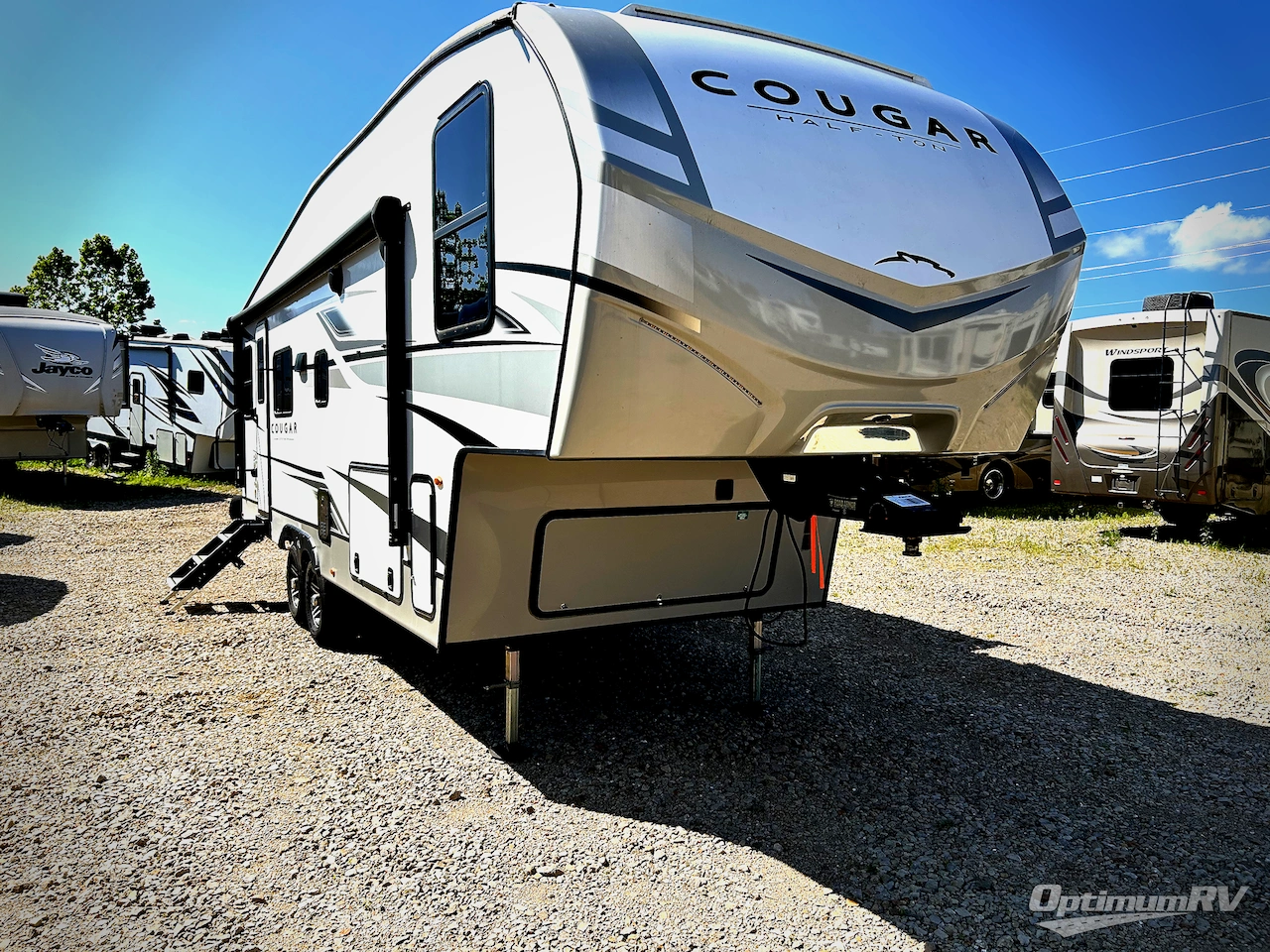 Spend your weekends in comfort with this Cougar Half-Ton fifth wheel! A full bathroom with a linen closet and shower with seat will provide convenience no matter where you've chosen to camp. You'll also be grateful to find a full kitchen with a 21" Furrion range with Piezo ignition and microwave so that you can get dinner ready in no time at all, and the private bedroom up front is where you will want to be at the end of a long day. You can also add an optional fireplace to this model to create a cozy atmosphere.