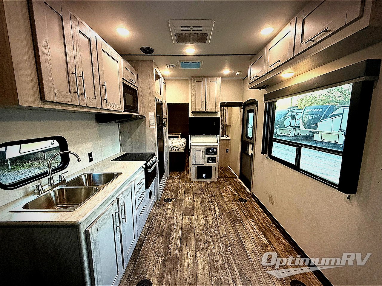 With any Fuzion Impact Edition toy hauler, the robust construction gives you years of enjoyment, and the unexpected conveniences and technology allow you to enjoy the indoors while exploring outdoors on a budget! Some standout features include the blade high-performance air flow system delivering an average of 20% more cooling power, and the 5k Interlock tie downs rated up to 5,000 lbs. each. The SolarFlex 200 delivers affordable, high quality solar energy and you can choose an option to upgrade if you like. While indoors, you will appreciate full-extension ball bearing drawer guides, pressed countertops, hardwood cabinetry, and bedside outlets/USB to keep your electronics charged. Choose an easy-to-tow, value-minded and impactful Fuzion Impact Edition toy hauler travel trailer or toy hauler fifth wheel today!