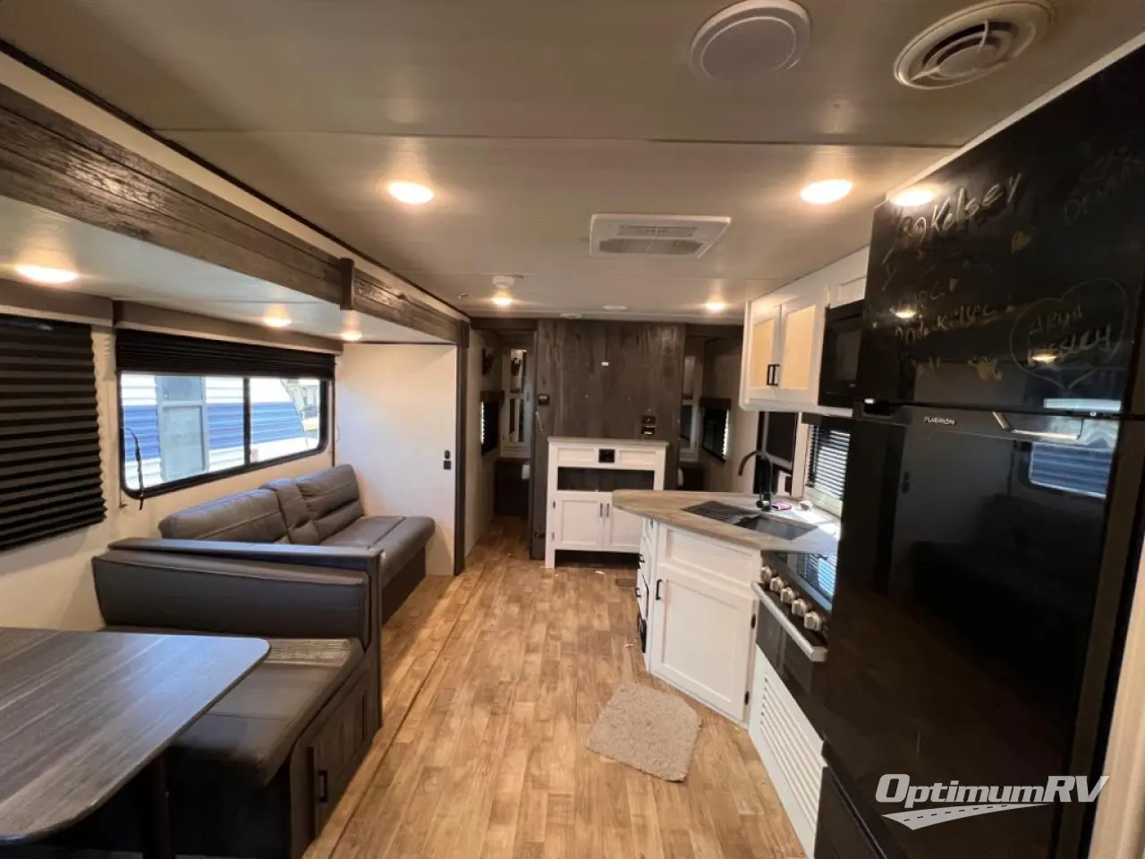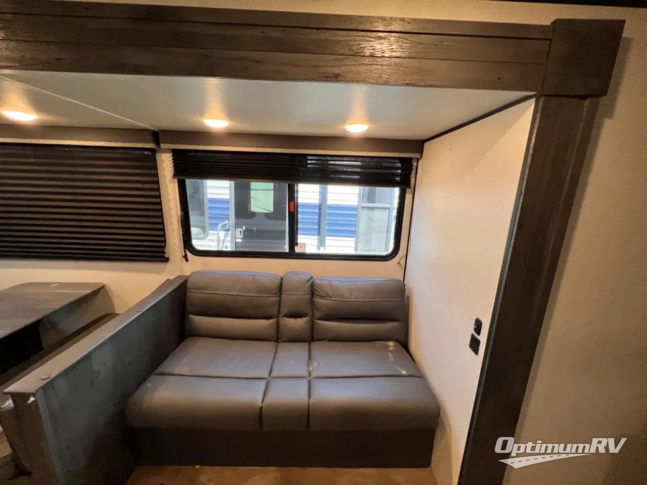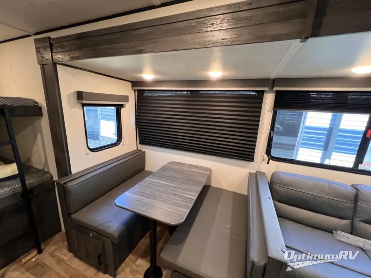 Get away with ease in this Hideout travel trailer! You will have your own private place to sleep in each night with the private bedroom up front. This bedroom has a queen-size bed, closets and nightstands on either side of the bed, overhead cabinets, and a laundry chute. The entertainment center has been prepped for a fireplace, and there is even TV prep too if you want to bring along a television for movie nights. The large slide holds the booth dinette and jackknife sofa, and the central vacuum will help you clean up any messes that are made throughout the trip.