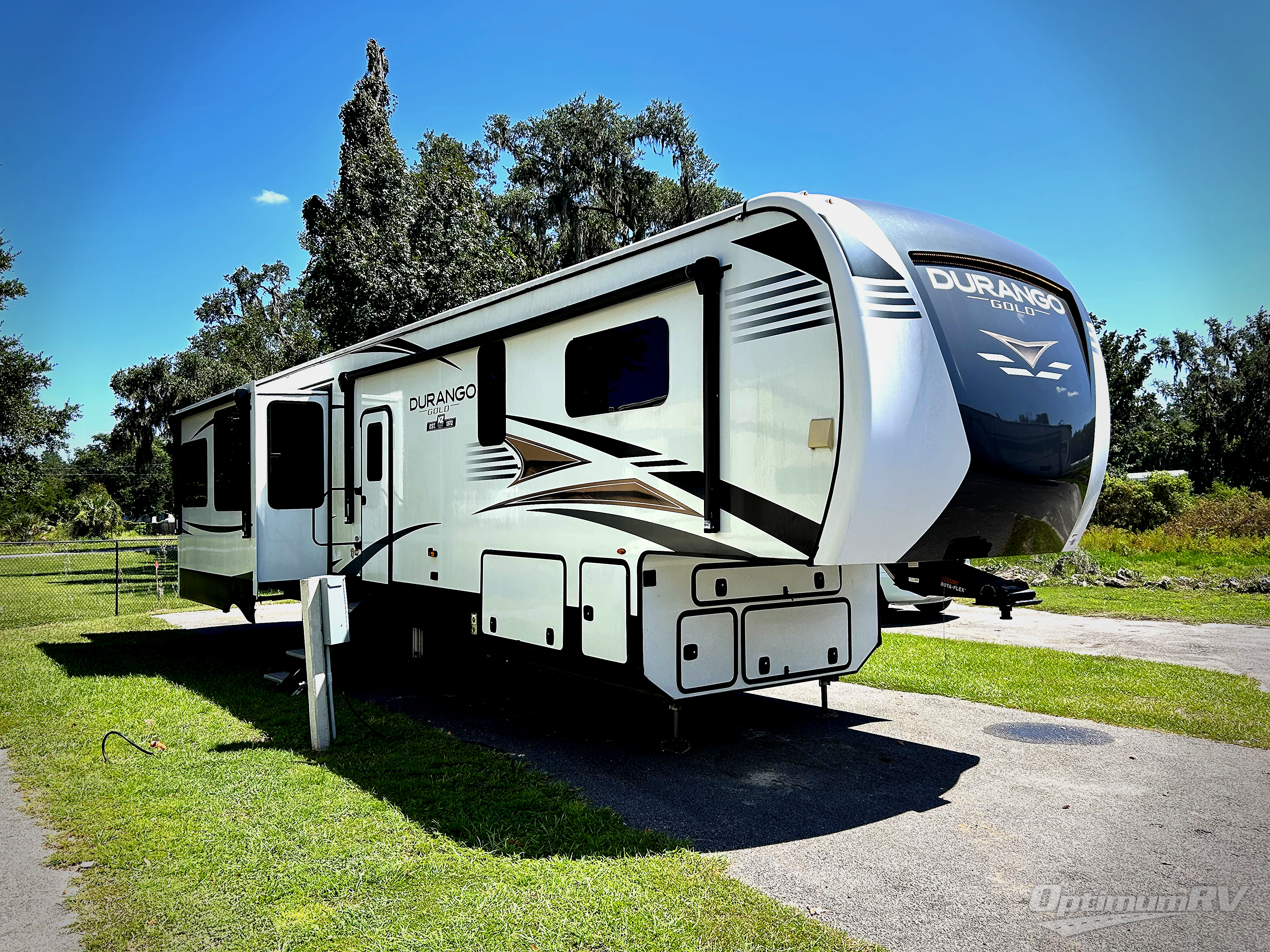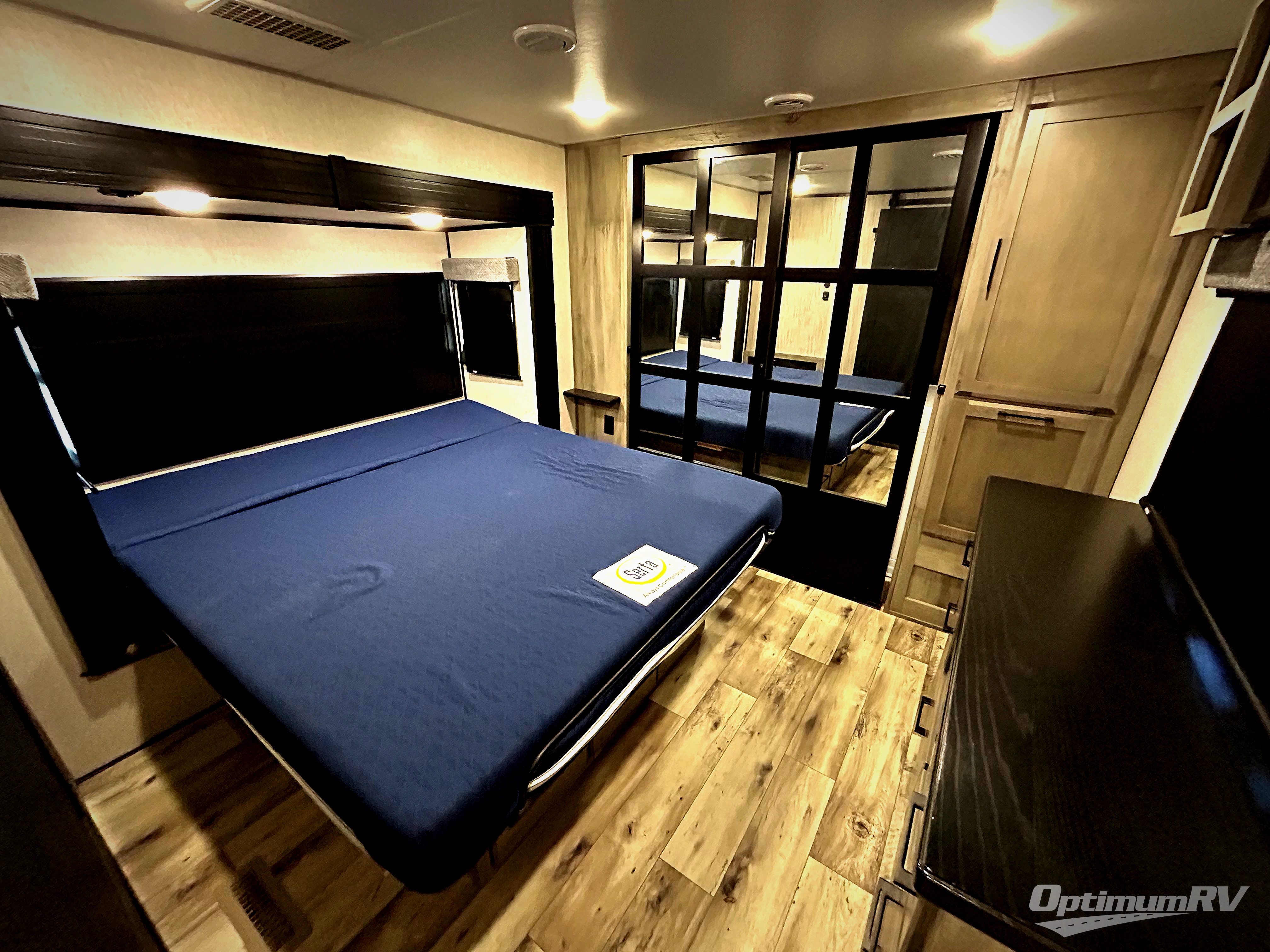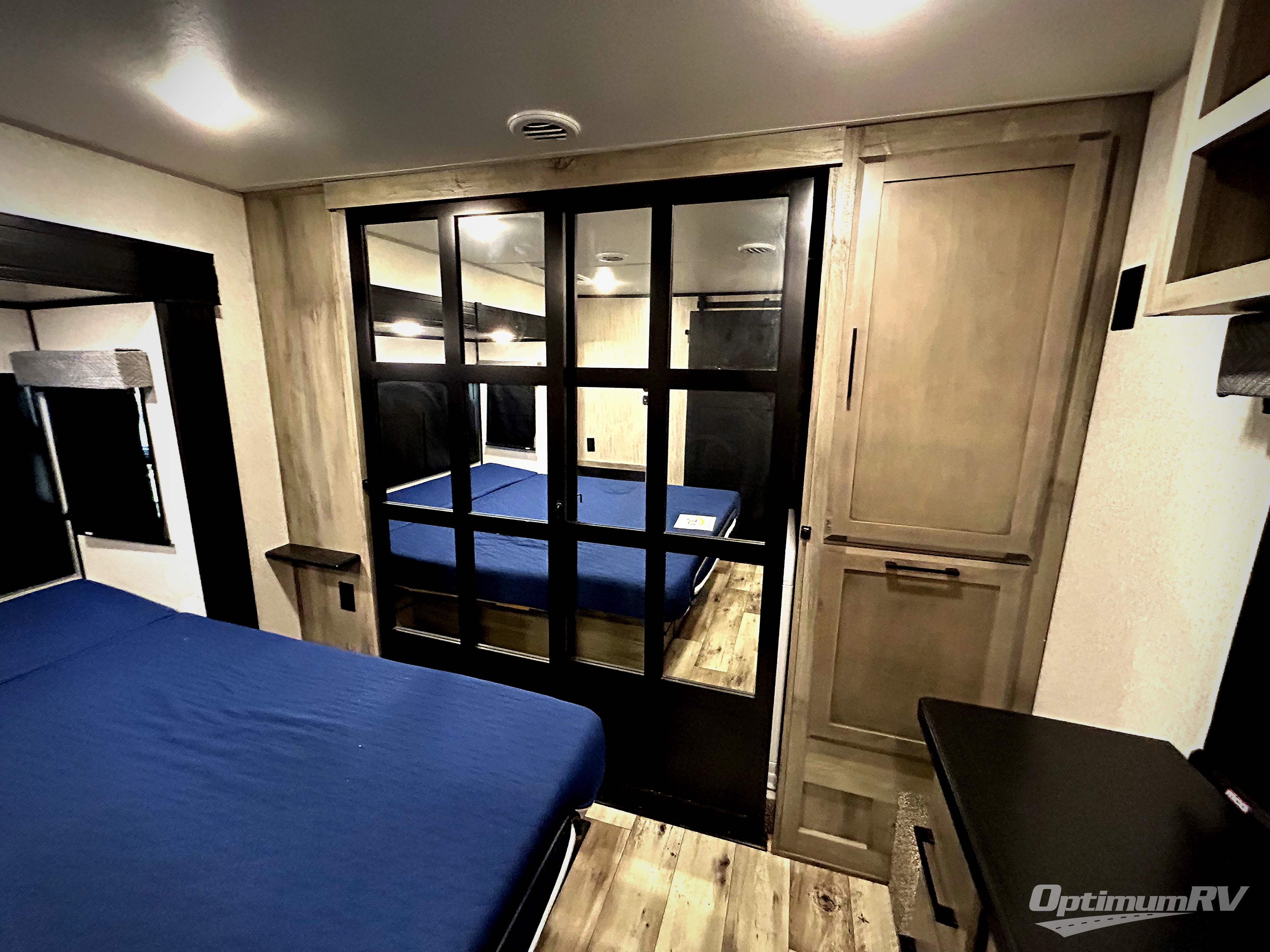 When you enjoy traveling with family and friends, and enjoy the outdoors just as much as the indoors, this Durango Gold can provide everything you want, plus more! Beginning with the rear patio door that leads to the unique patio deck that provides a place to relax and unwind as well as stow a few items above ground. When you are ready to experience luxury and comfort head back inside to the fireplace below the 50" Smart LED TV and sit in the chairs or on the hide-a-bed sofa, or even at the dining table. There is a full-timer's desk option to choose as well. The cook will have full amenities, upgraded appliances, a kitchen island with a farmhouse stainless steel sink, solid surface countertops, and a pantry to store lots of goodies. The middle extra room can be utilizes as a bunkhouse, another living area, or even an office because of the desk top, plus there is a queen size loft above. And you will be able to sleep like a king in the front bedroom with a fireplace. There is plenty of storage for your clothing, as well as a 32" Smart LED TV, plus a place that has been prepped to add an optional washer/dryer if you choose.