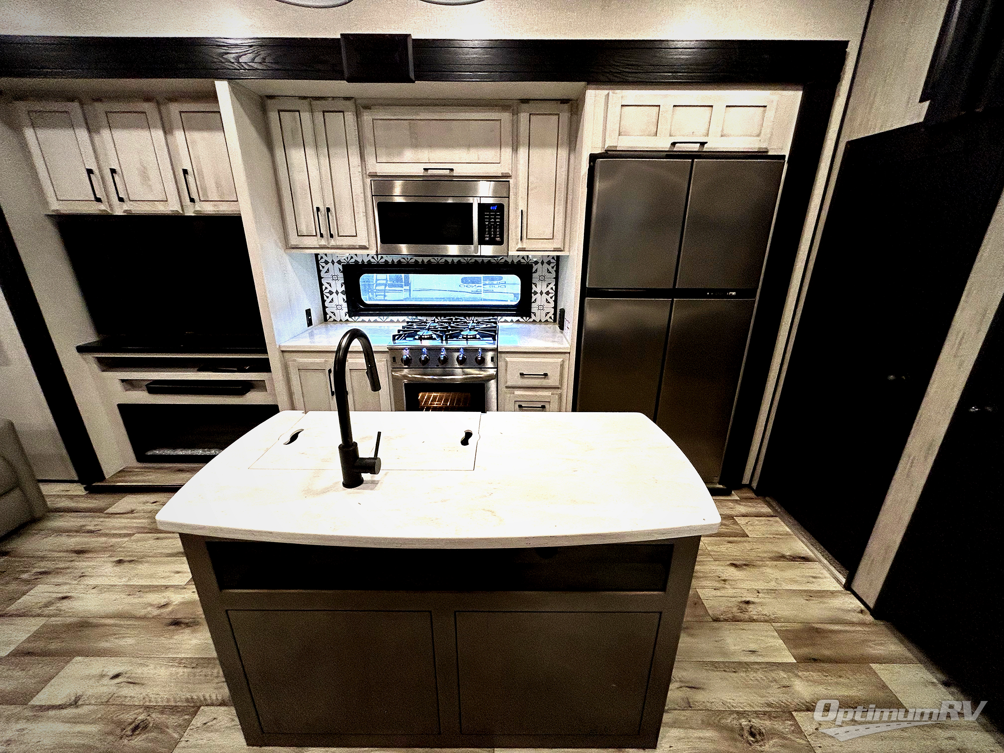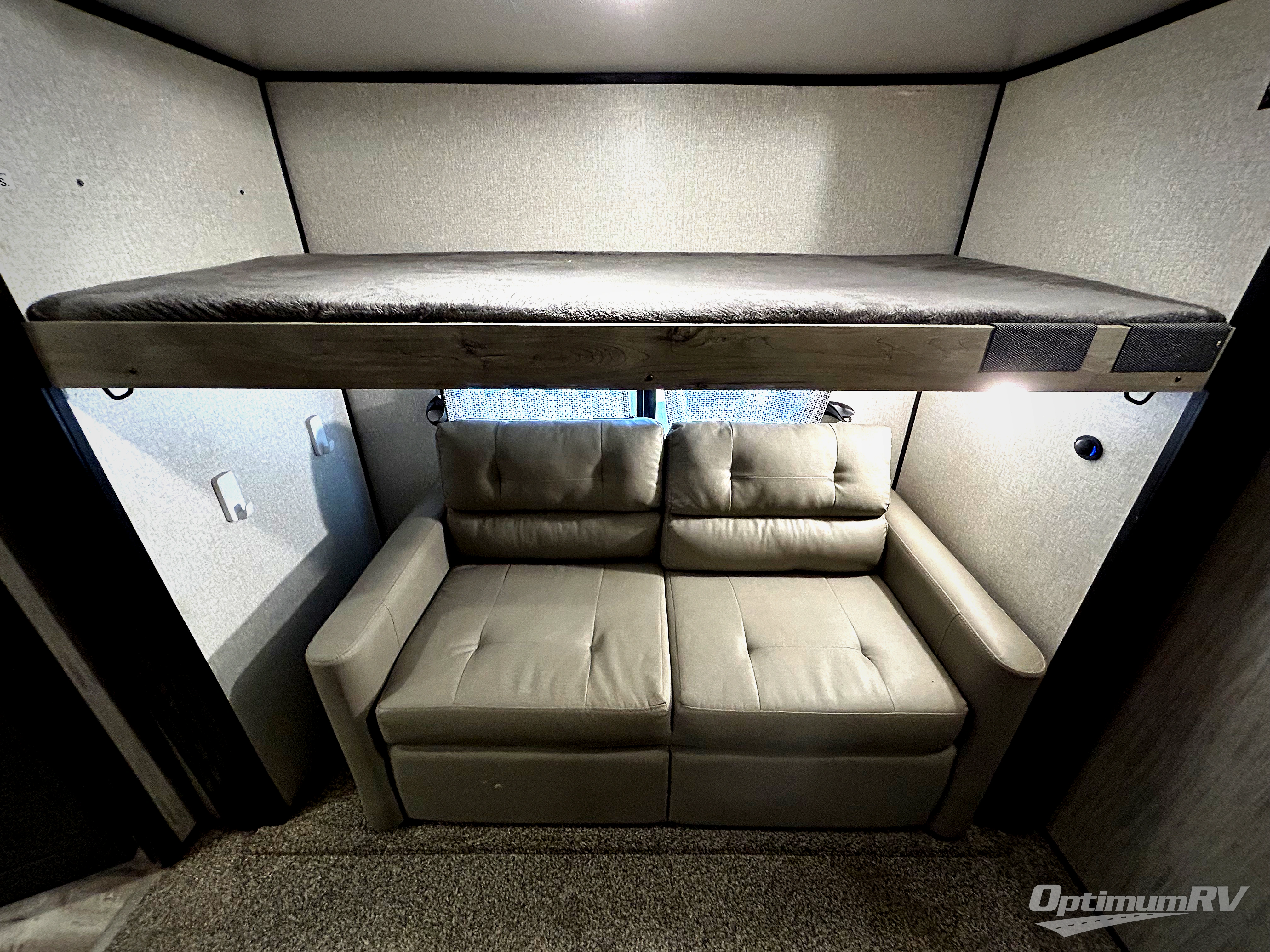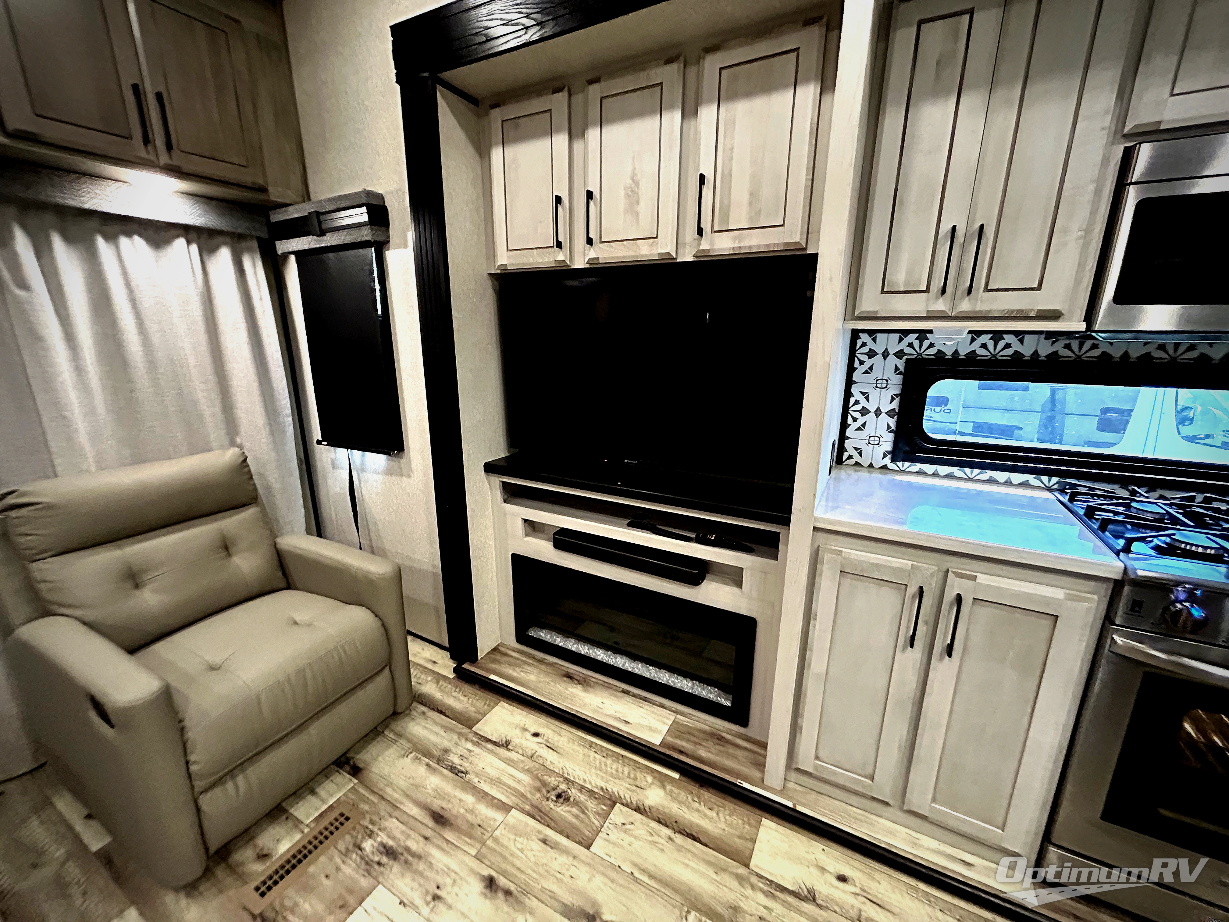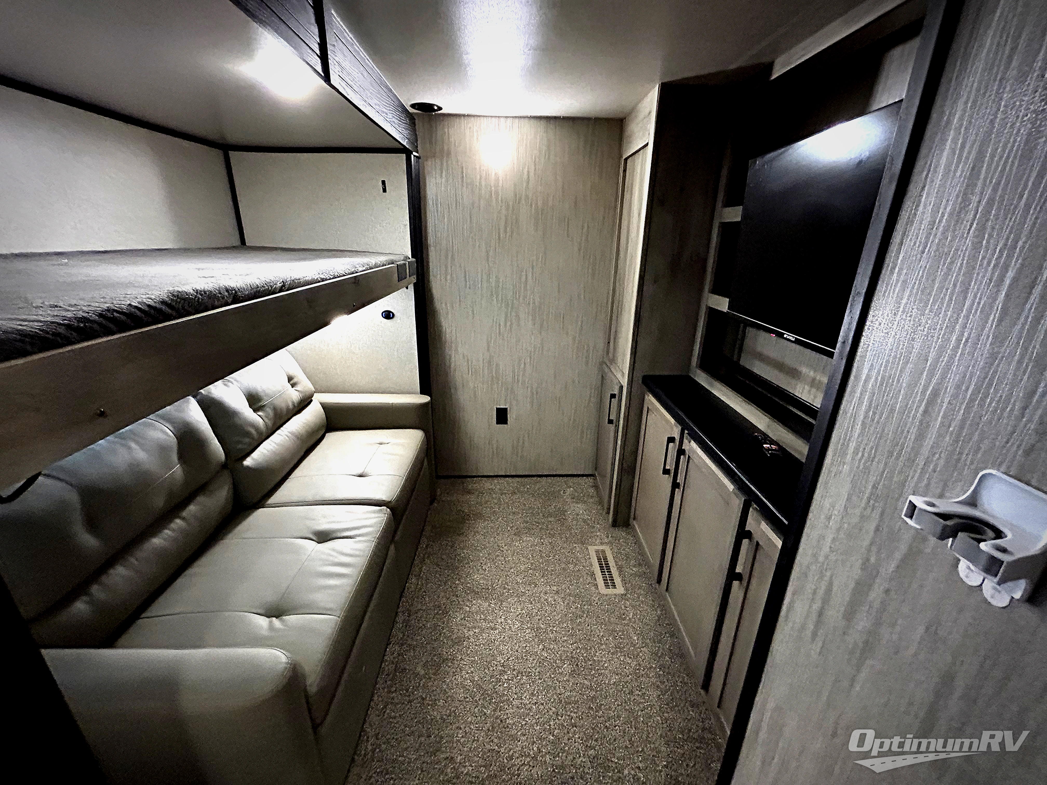 With any KZ Durango Gold full-time luxury fifth wheel, you will enjoy the look of modern farmhouse cabinetry, upgraded kitchen appliances such as a 30" convection microwave and 24" oven with four burner range, plus a stainless dishwasher. Other top features include an electric tilt bed with Serta Comfort foam king mattress, theater seating with cupholders and a USB plug, plus heat, massage, and power recline/decline features. You will also appreciate a handy central vacuum system with multiple attachments that stores out of sight. Each Durango Gold is constructed with six-sided aluminum framing, and has heated, insulated and an enclosed underbelly. It is also constructed with Tufflex roofing material which is flexible, puncture resistant, and reflective. Some additional standout features include a fully-vented attic system, and a Durango Towing package which includes a 2" towing receiver hitch with 4-pin wire harness connection. This will provide you with 3,000 lbs. of towing capacity. Come choose your favorite lightweight high-profile wide body luxury fifth wheel today!
