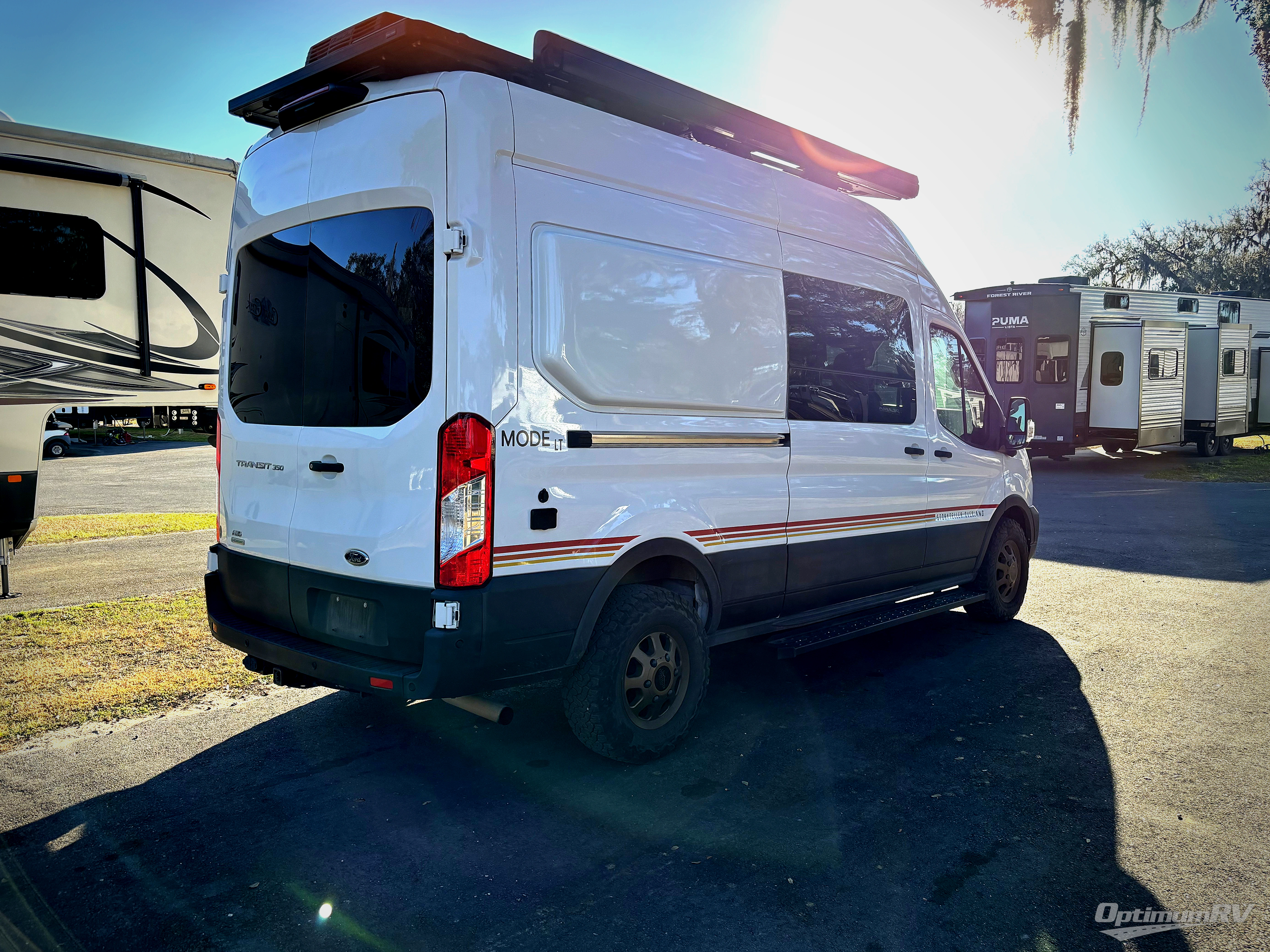 It's time to enjoy urban adventures, state park campouts, and trails in this MODE LT with a Ford 3.5L EcoBoost! As you search for your next destination, you will appreciate the cab conveniences from adaptive cruise control, the SYNC 8" multi-function display, and the front/rear split camera and side sensor system. You can easily set up the GrooveLounge two-seater convertible sofa bed and the patented Dreamweaver bed/convertible work surface to relax, unwind and sleep on. The portable induction cooktop and the exterior fold-down table provide the flexibility to make meals where ever you would like. And there is a MODE COM 11" full-color touchscreen control system, and the 12kWh M-Power Energy Storage System gives you the power to go off-grid. There are many more features that make this an adventure van you will enjoy for years and years!