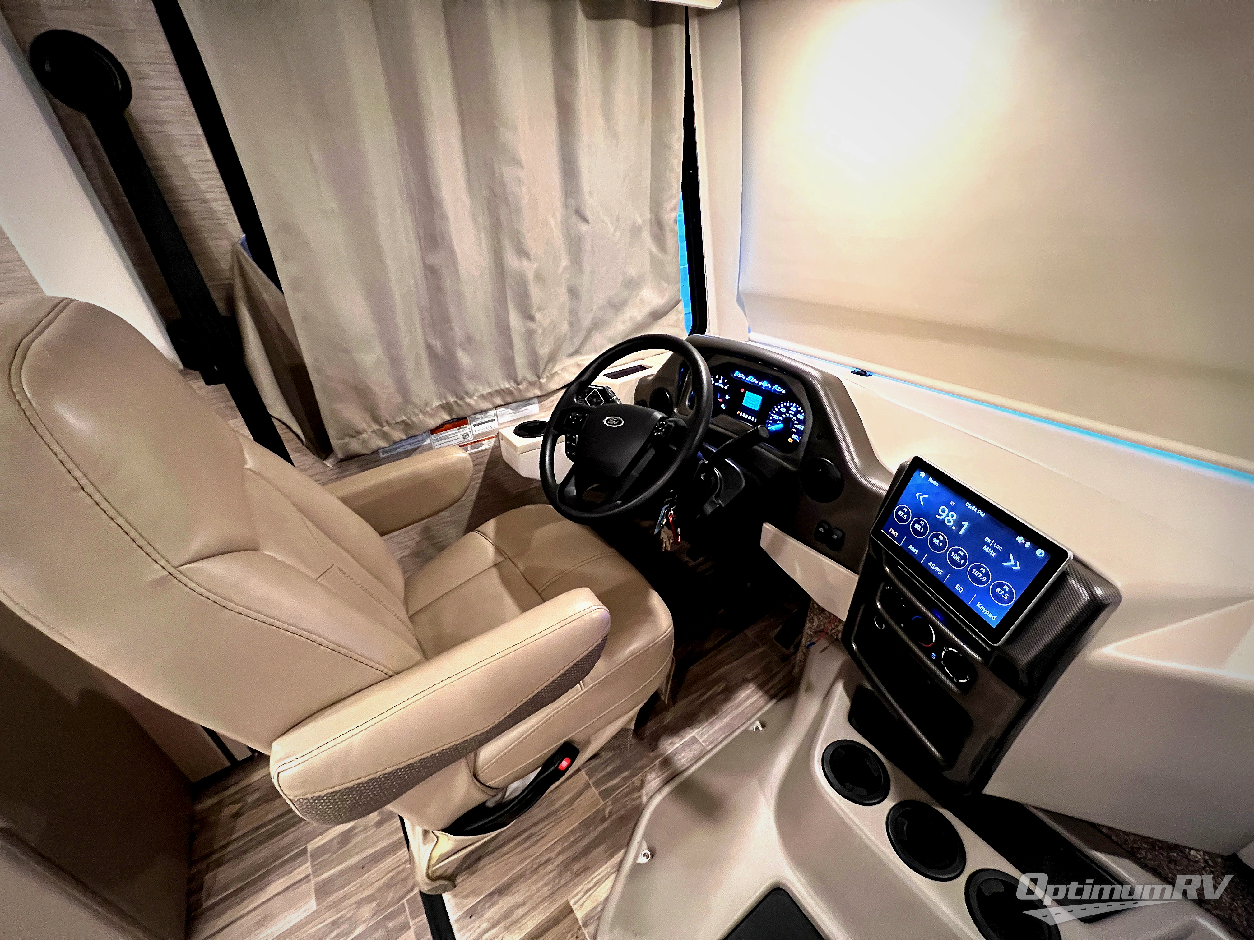 The A.C.E Class A gas motorhome is constructed with a welded tubular steel floor, vacu-bond laminated roof, walls and floor with block foam insulation, and a premium one-piece exterior roof for a coach made to last. You will love the pet-friendly features, like the Bird's Eye window, the Pet-Link multi-purpose tie-down and the Pull-Out Kibble Station with an FDS approved pet bowl liner. Each model includes an Onan RV QG 4,000 gas generator, a Winegard ConnecT Wi-Fi extender +4G, and are pre-wired for solar charging. Some of the other convenient amenities you will find on the A.C.E are frameless windows, a basement pass-through storage, and an exterior LP connection. Head inside to find residential vinyl flooring, pressed laminate countertops, glass tile backsplash in the kitchen, and a designer headboard, bedspread and pillow shams in the bedroom for all-around comfort!