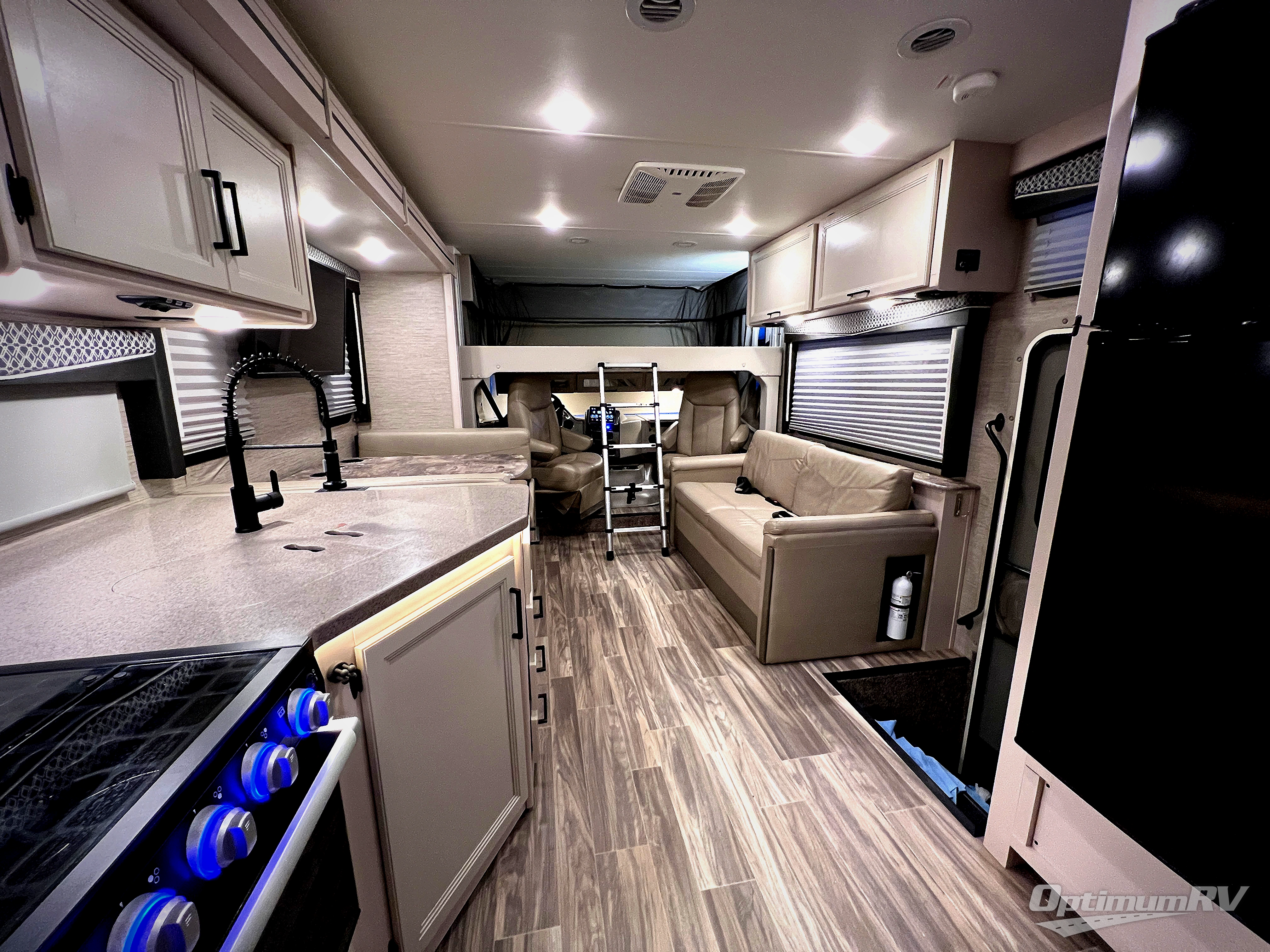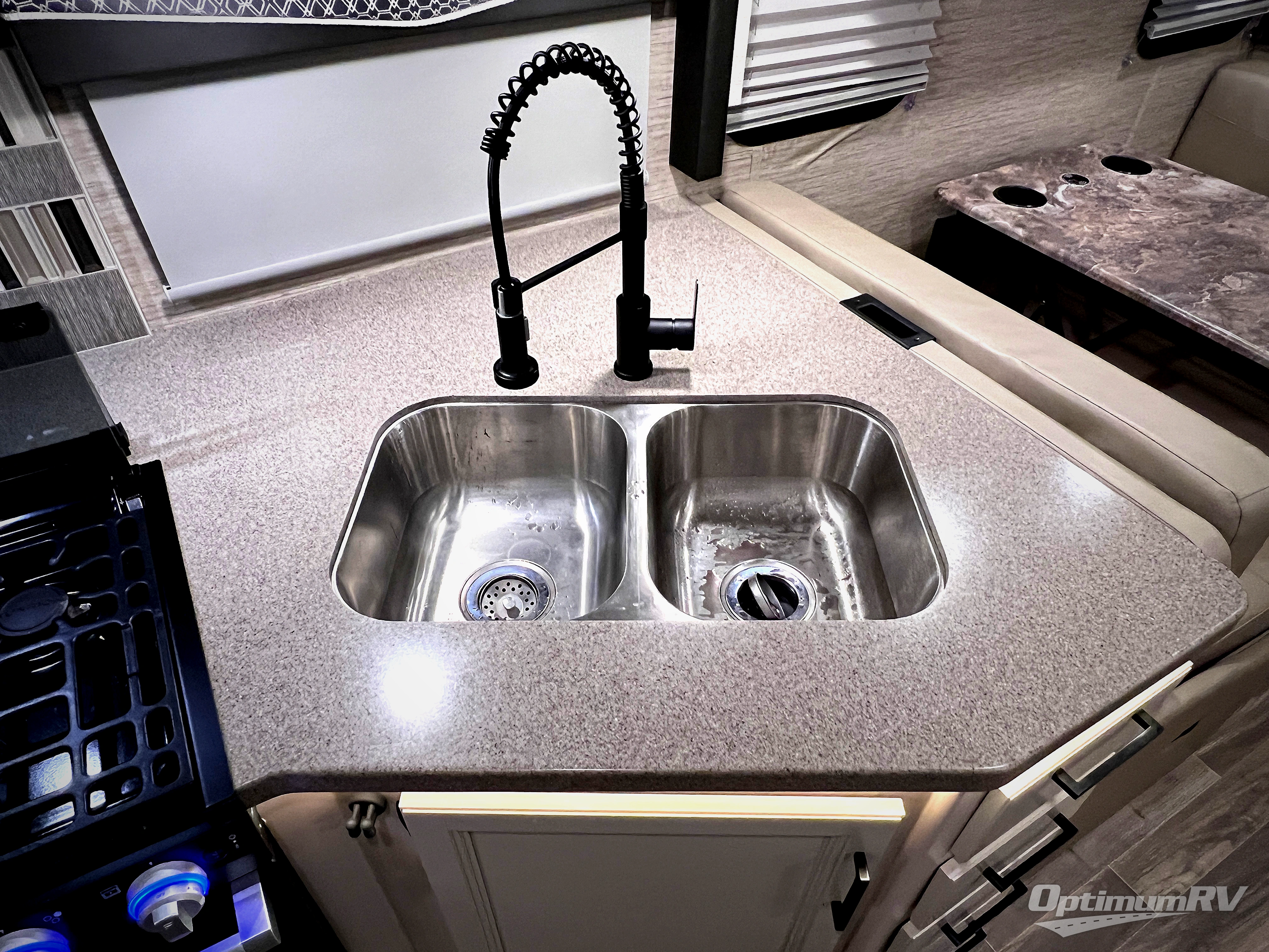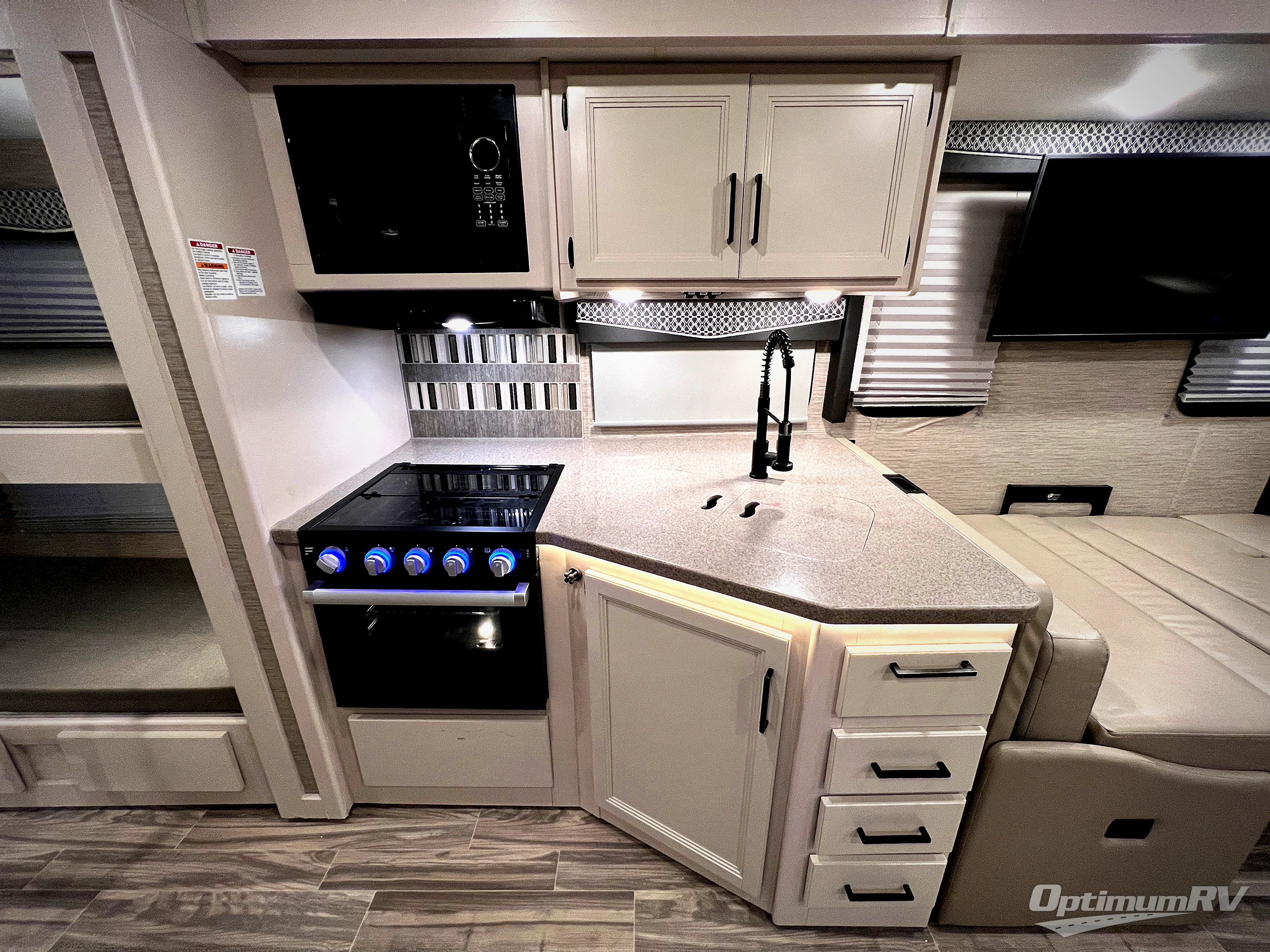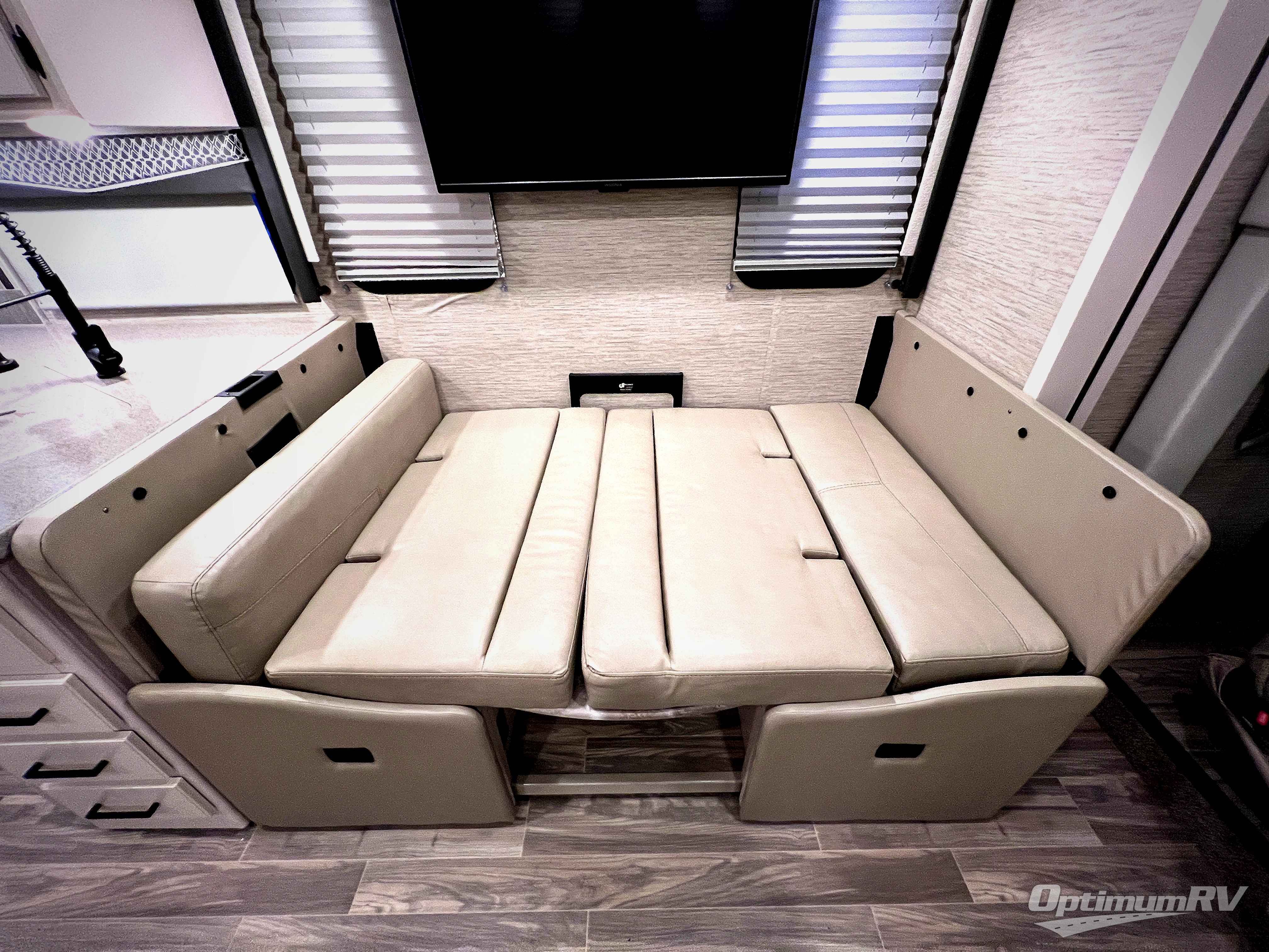 You will love how much space you have in this motorhome thanks to the full-wall slide! There is a jack-knife sofa and a Dream Dinette, or you can choose the optional theater seats in place of the sofa if you don't need the additional sleeping space. The chef of your group can prepare meals indoors on the three burner gas cooktop or in the microwave oven, plus there is an exterior kitchen with a refrigerator, a sink, and a 1000-watt inverter! The full bath will allow you to freshen up each day, and you'll feel right at home in the rear private bedroom with a king bed, a closet, plus a 32" TV!
