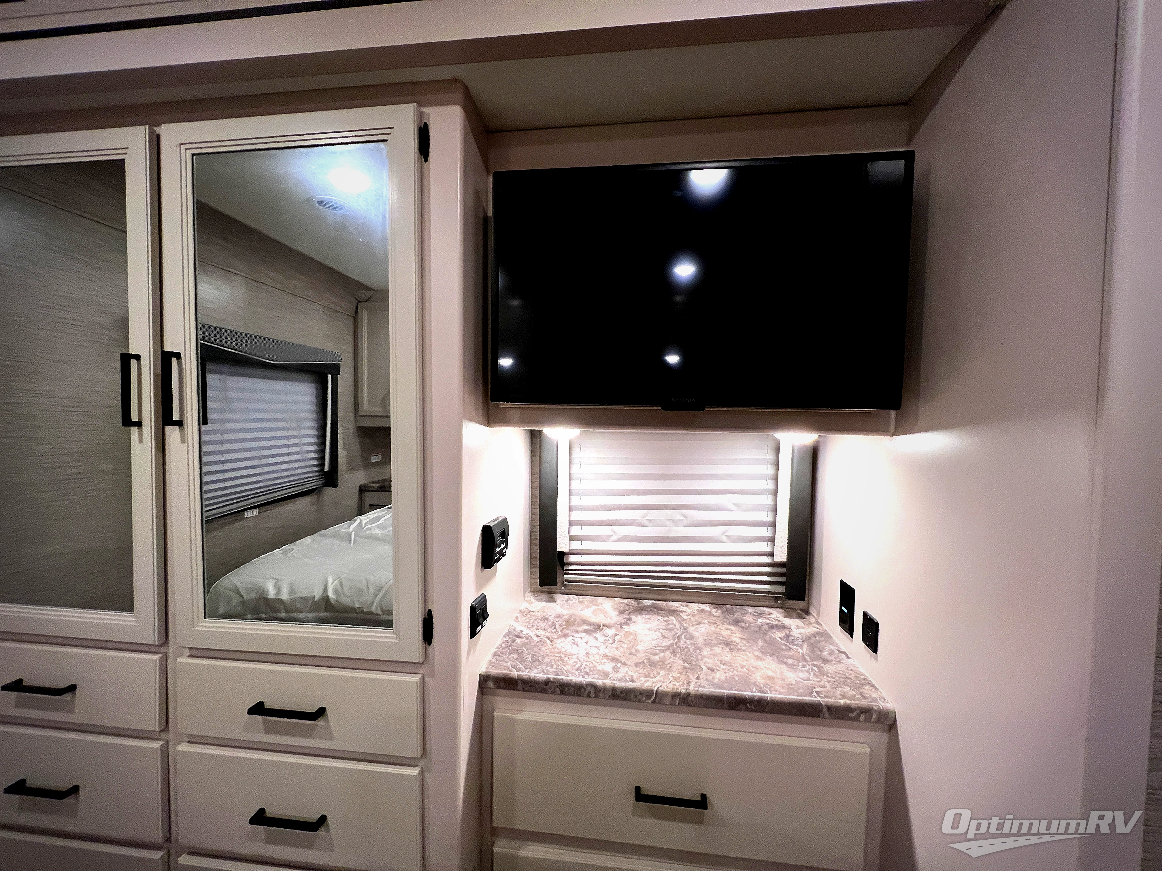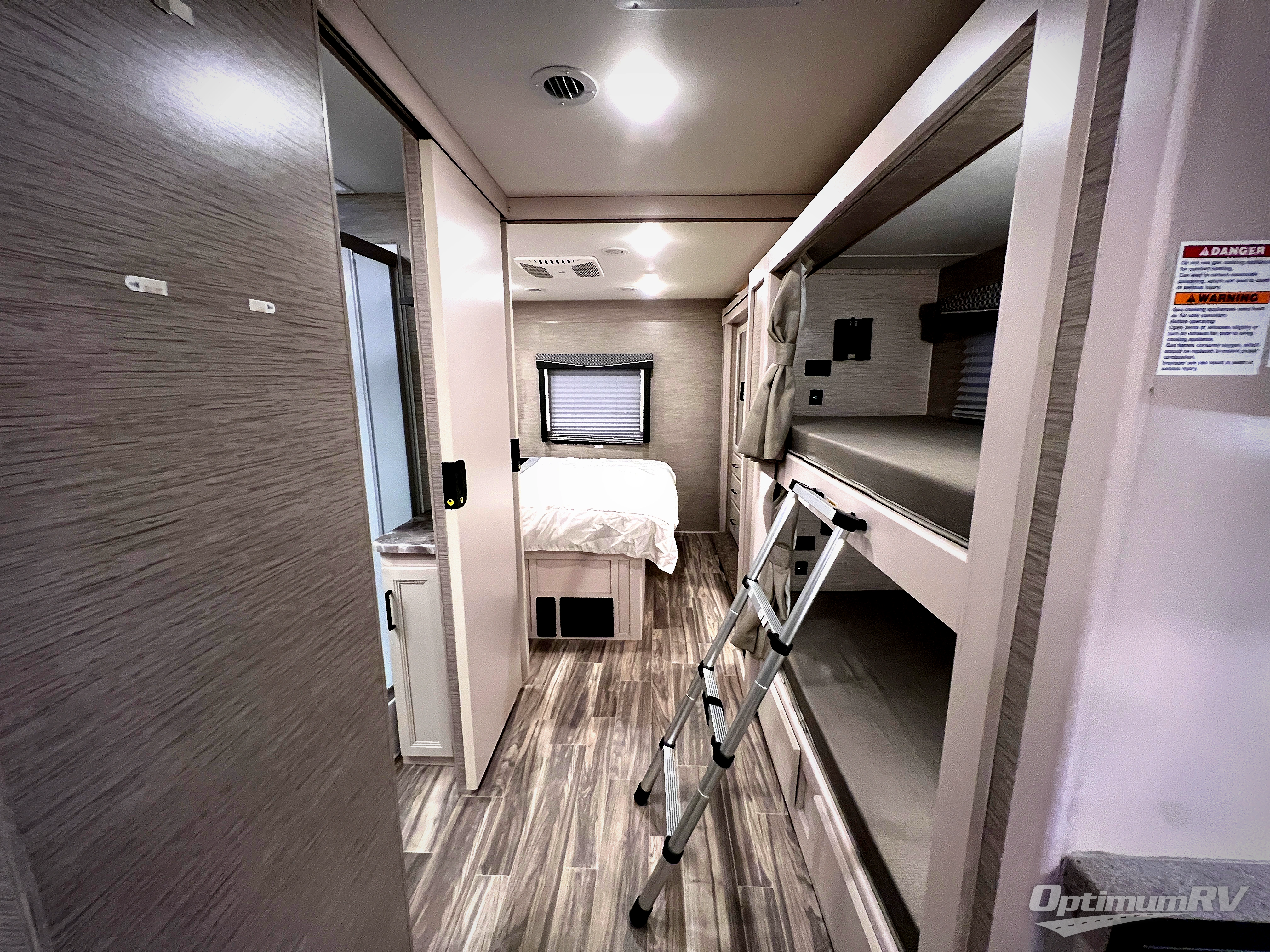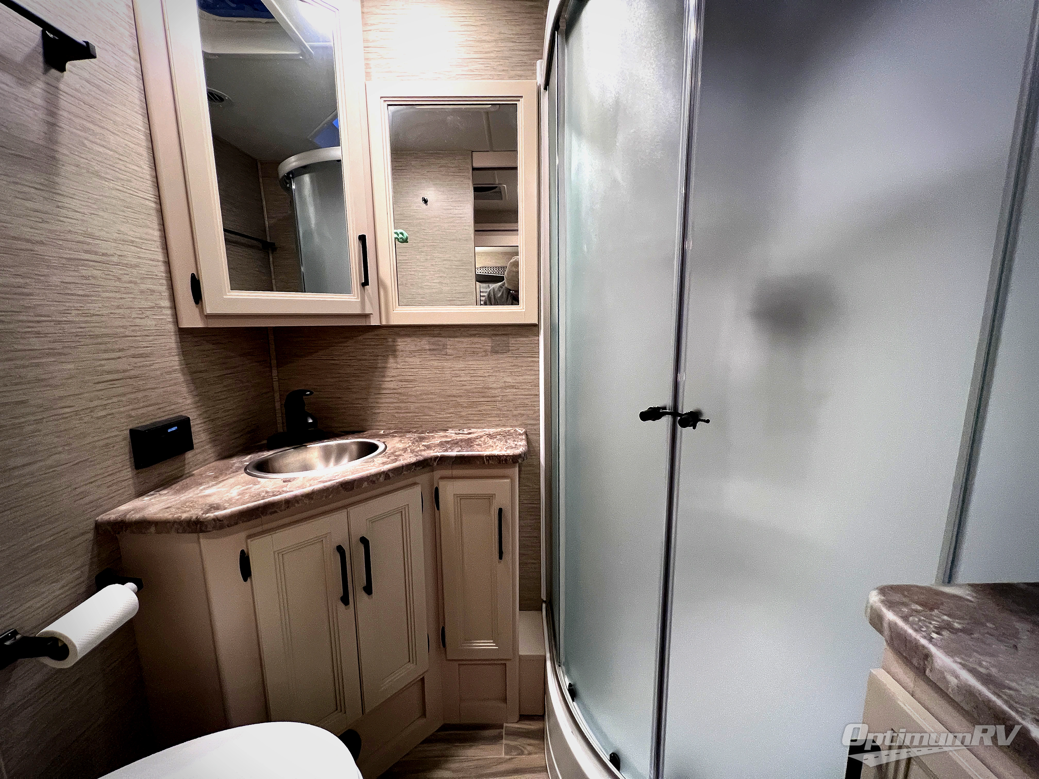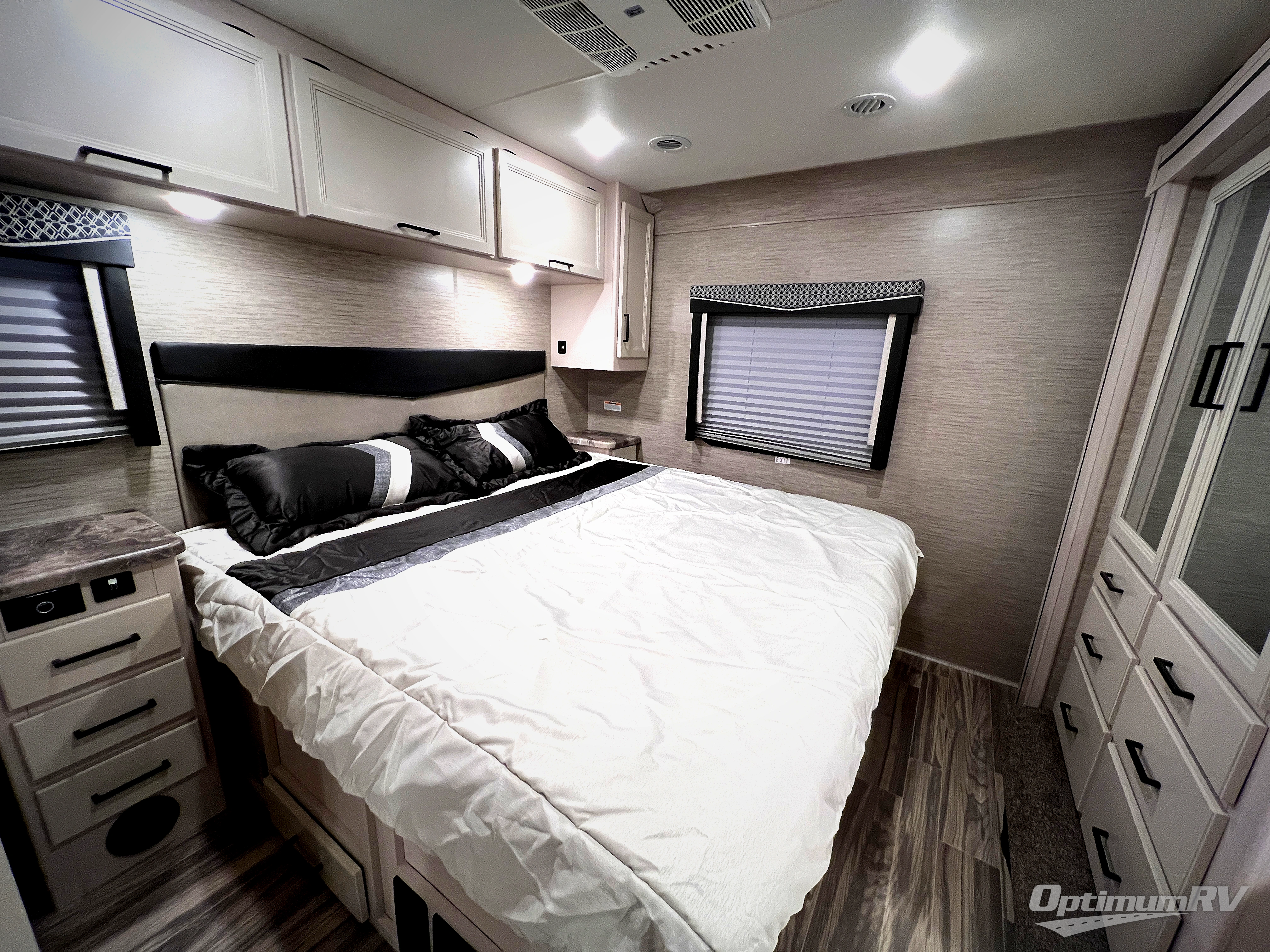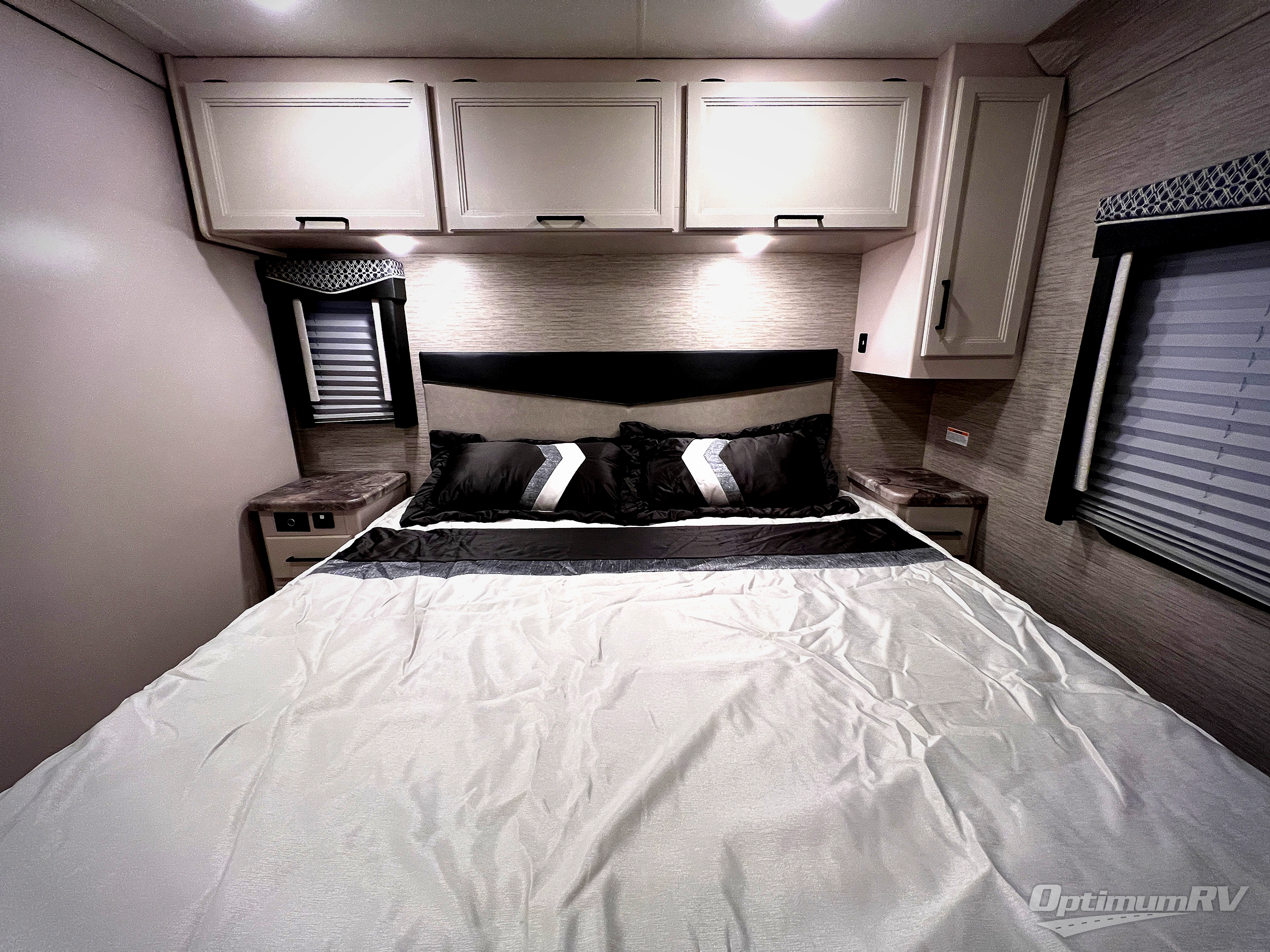 You will love how much space you have in this motorhome thanks to the full-wall slide! There is a jack-knife sofa and a Dream Dinette, or you can choose the optional theater seats in place of the sofa if you don't need the additional sleeping space. The chef of your group can prepare meals indoors on the three burner gas cooktop or in the microwave oven, plus there is an exterior kitchen with a refrigerator, a sink, and a 1000-watt inverter! The full bath will allow you to freshen up each day, and you'll feel right at home in the rear private bedroom with a king bed, a closet, plus a 32" TV!