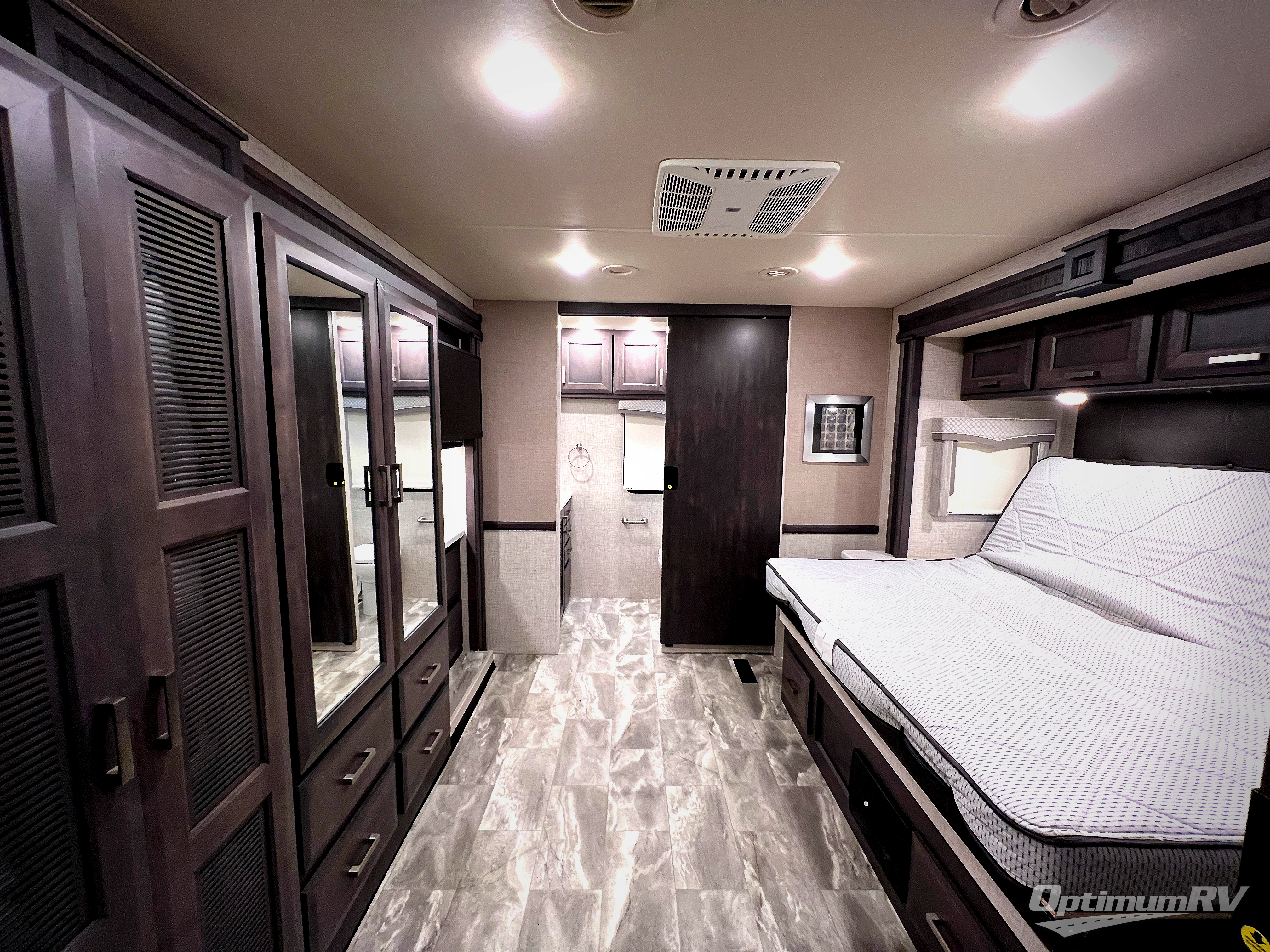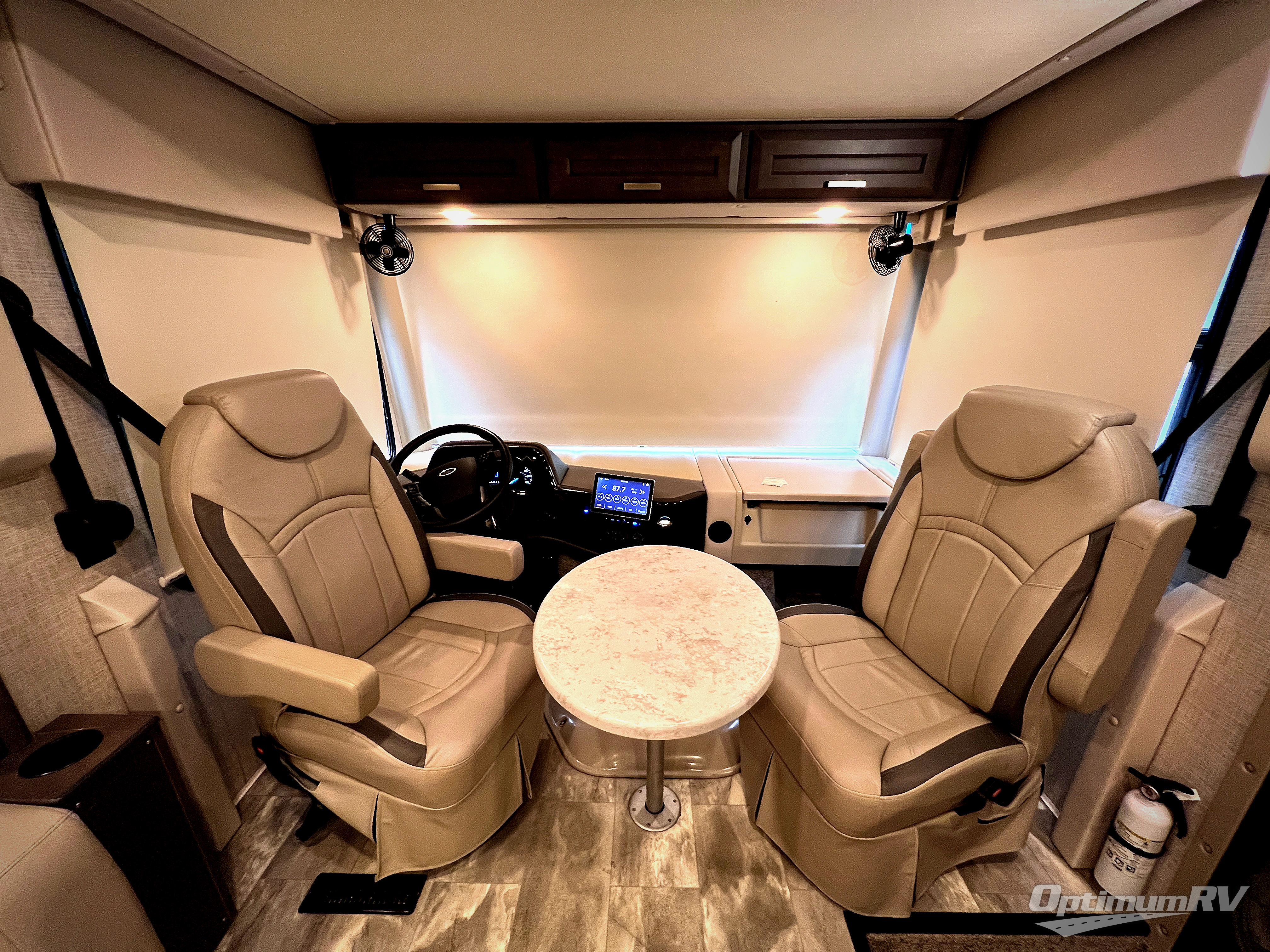 Hop on board the Challenger Class A gas motorhome by Thor Motor Coach for an adventure of a lifetime. The modern dash features a 10.1" touchscreen dash radio with Bluetooth and Sirius/XM radio, plus there are reclining/swivel leatherette captain's chairs for your comfort. Setting up your coach will be a breeze with the automatic leveling jacks with touchpad controls, and each model includes an Onan RV QG 5500 gas generator, dual roof A/C's, and many more amenities for hassle-free camping. The interior of the Challenger will have you feeling at home in a heartbeat. Residential vinyl flooring, solid surface countertops, and satin-finish cabinetry are just a few comforts you will enjoy. Each model also includes a Winegard ConnecT WiFi extender +4G to keep you connected to the outside world as you travel, and an entertainment package that will never leave you bored!