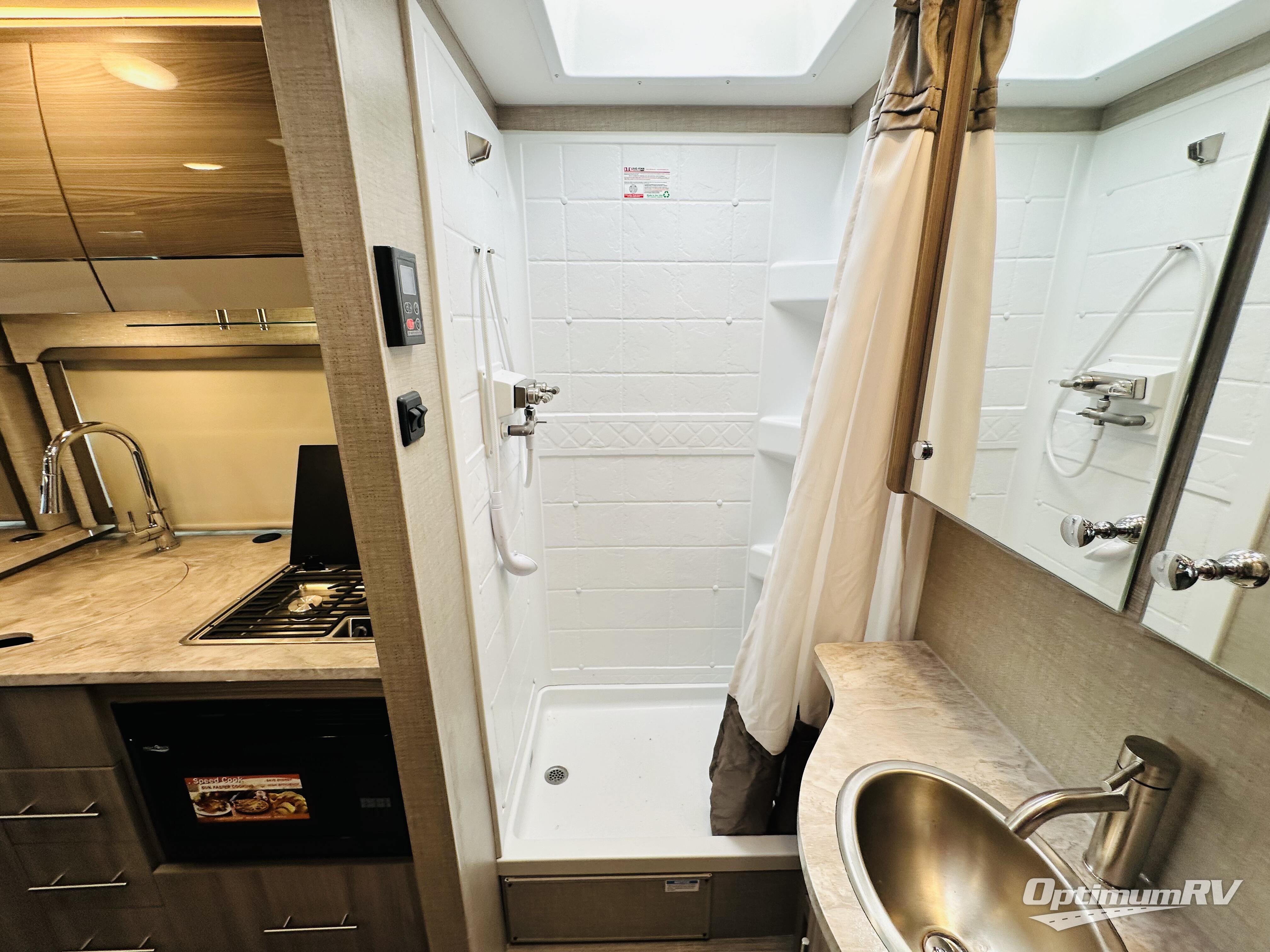 The Thor Motor Coach Compass AWD Class B+ gas motorhome is small but mighty! It includes all-wheel drive, and it is built upon a Ford Transit chassis, 3.5L V6 Eco Boost turbo gas engine, and Ford ten-speed automatic overdrive transmission. The Ford safety features provide excellent care while driving, and you can stay connected to your Compass AWD with the FordPass Connect. The power patio awning with LED lights can be moved out into position with just one touch on your cell phone thanks to the Rapid Camp+ multiplex control system. You will have a 100W solar panel with controller, a single roof air conditioner, a Winegard ConnecT 2.0 Wi-Fi/4G/TV antenna, and a tankless water heater as some of the top electrical and plumbing features.