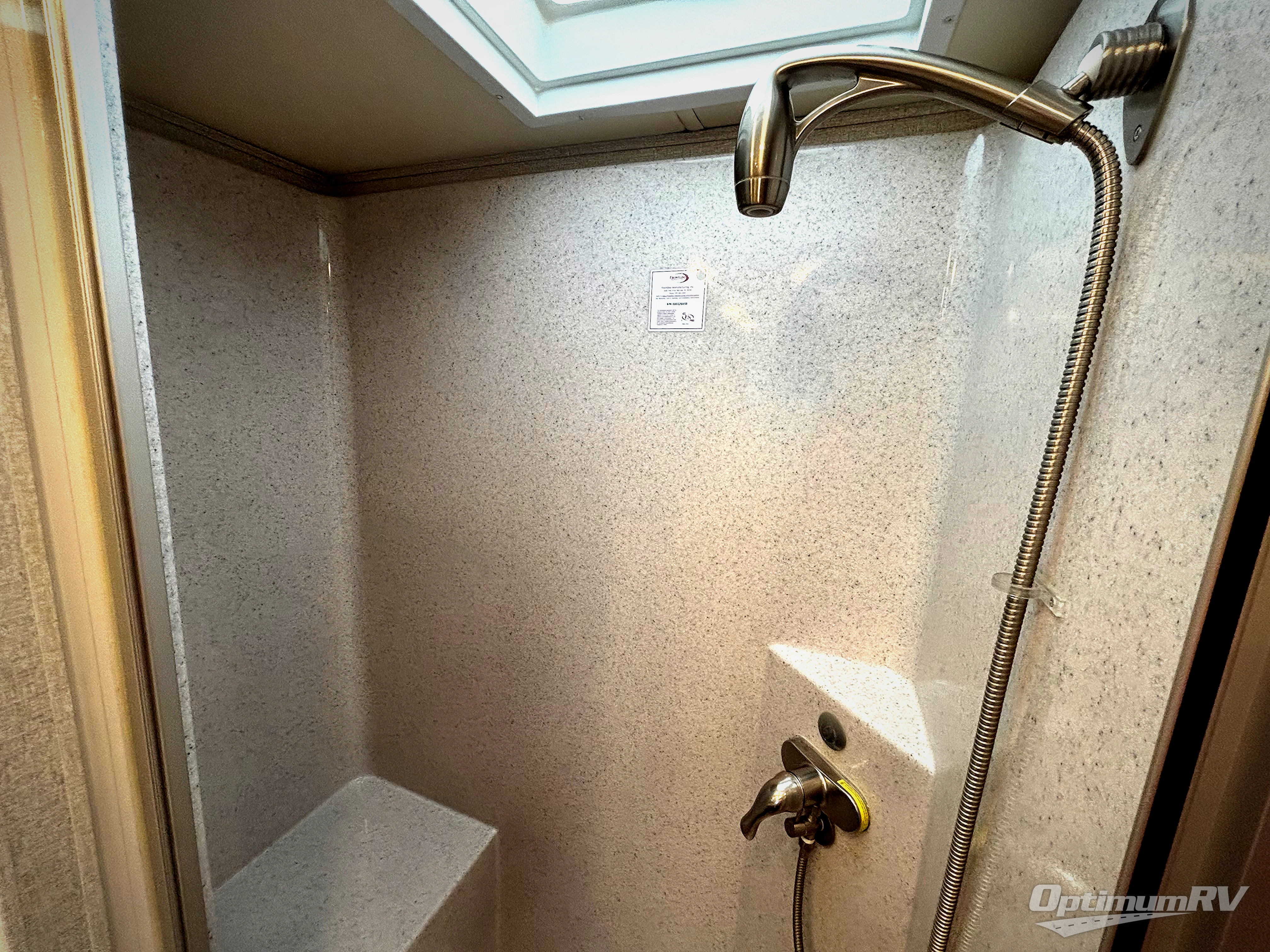 This Venetian Class A diesel motorhome has a high amount of luxury with two full bathrooms! One of those bathrooms is even included back in a master suite for you to enjoy, and this bathroom contains a dual-sink vanity to help you both get ready with ease. You'll have quite a lot of sleeping space too with the inclining king bed, 27" x 74" bunk beds, 80" sofa, 90" Dream Dinette, and 48" x 74" drop-down bunk above the cab. On top of that, you have the storage space and entertainment needed for all of those people with the two linen closets, a bedroom closet and dresser, two kitchen pantries, a residential refrigerator, and four LED HDTVs.