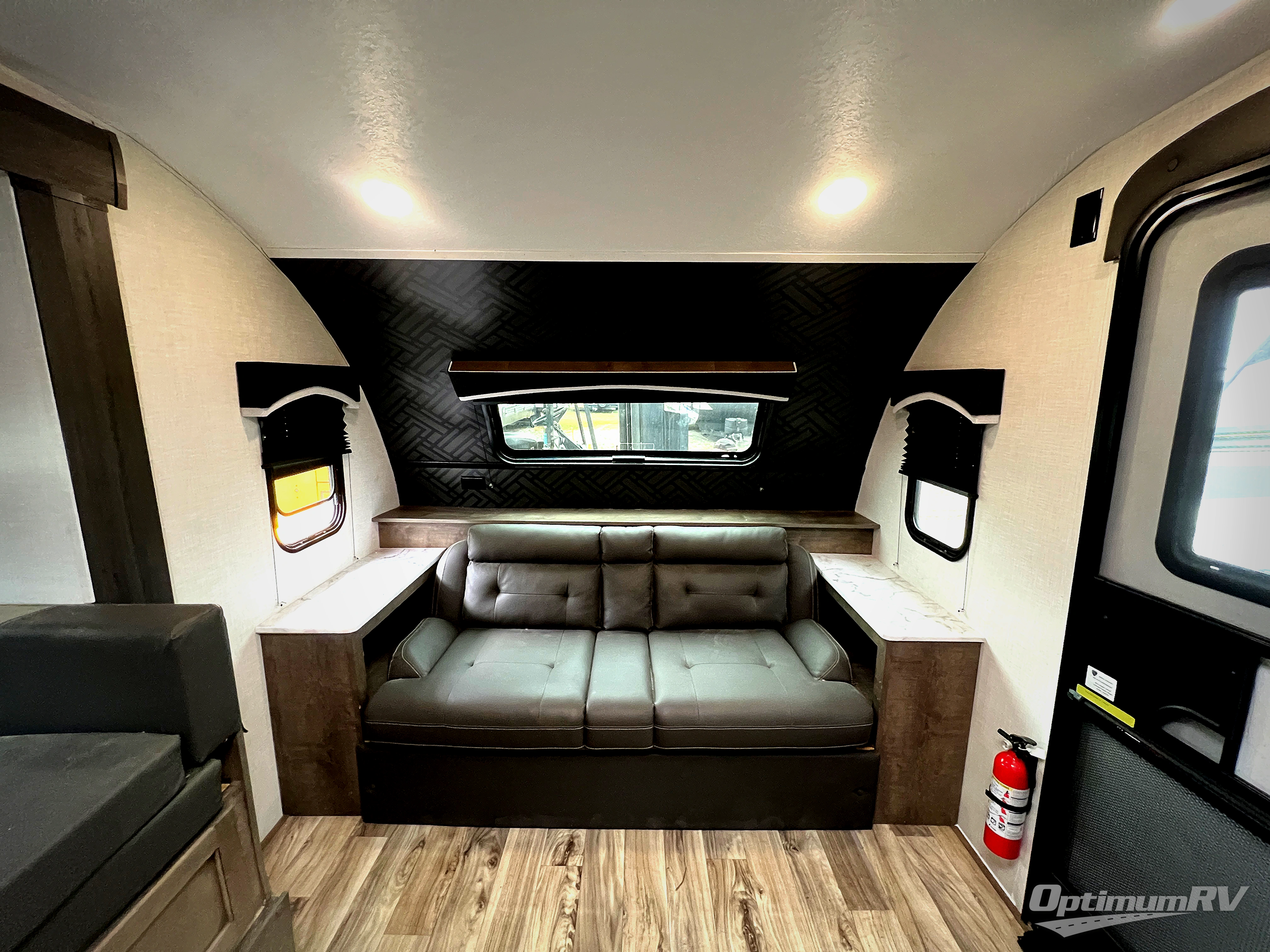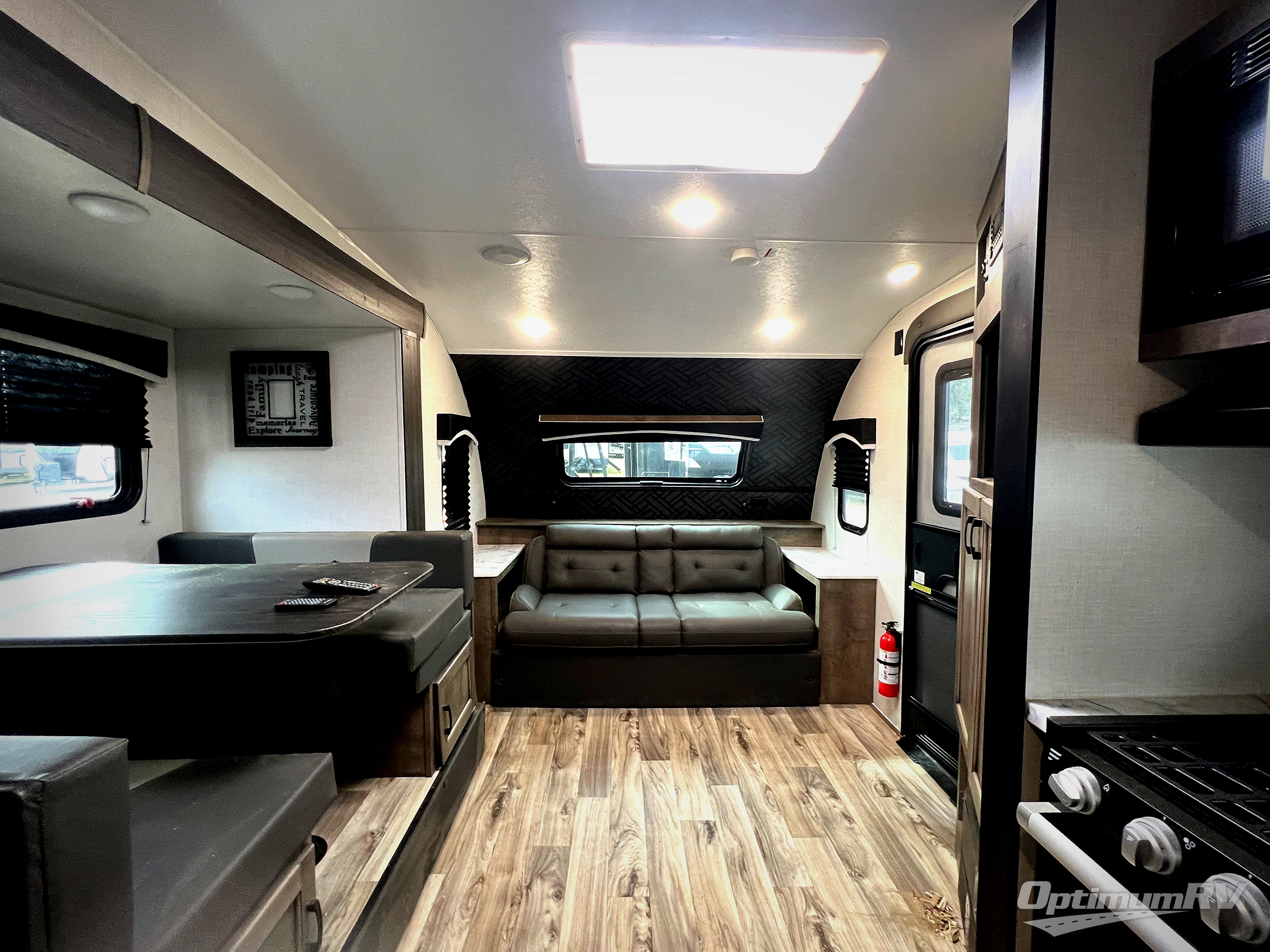 You will enjoy relaxing outside and inside with a 17' power awning that provides an outdoor living area protected from the elements, just add your camping chairs that are stowed away in the rear pass-through storage with motion-activated light, and the interior provides a 64" jiffy sofa up front and a booth dinette. Both of these furnishings offer sleeping space for family and friends when you are ready to call it a night. The L-shaped counter in the kitchen area provides a large sink and a three-burner range, and the 8 cu. ft. refrigerator is within the slide out. Easily access the walk-through bath from this area as well as the rear private bedroom which offers an RV queen bed, dual wardrobes, windows and StorMore bedside nightstands with a 110V outlet and USB charging.