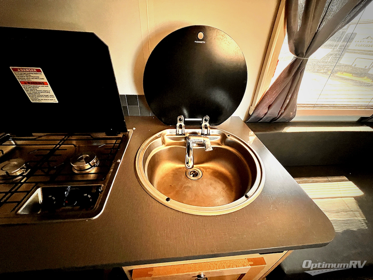 You'll love this travel trailer that features a little more interior space for a more at-home feel. There are two dinette seats with a table where you can dine each day, and this area can fold down to create a 77" x 72" bed size. You might even even want to watch movies in bed with the 23" flat screen TV! This model includes a cassette toilet so you don't have to use the camp's facilities in the middle of the night, and you can make breakfast on the two burner cooktop in the morning.
