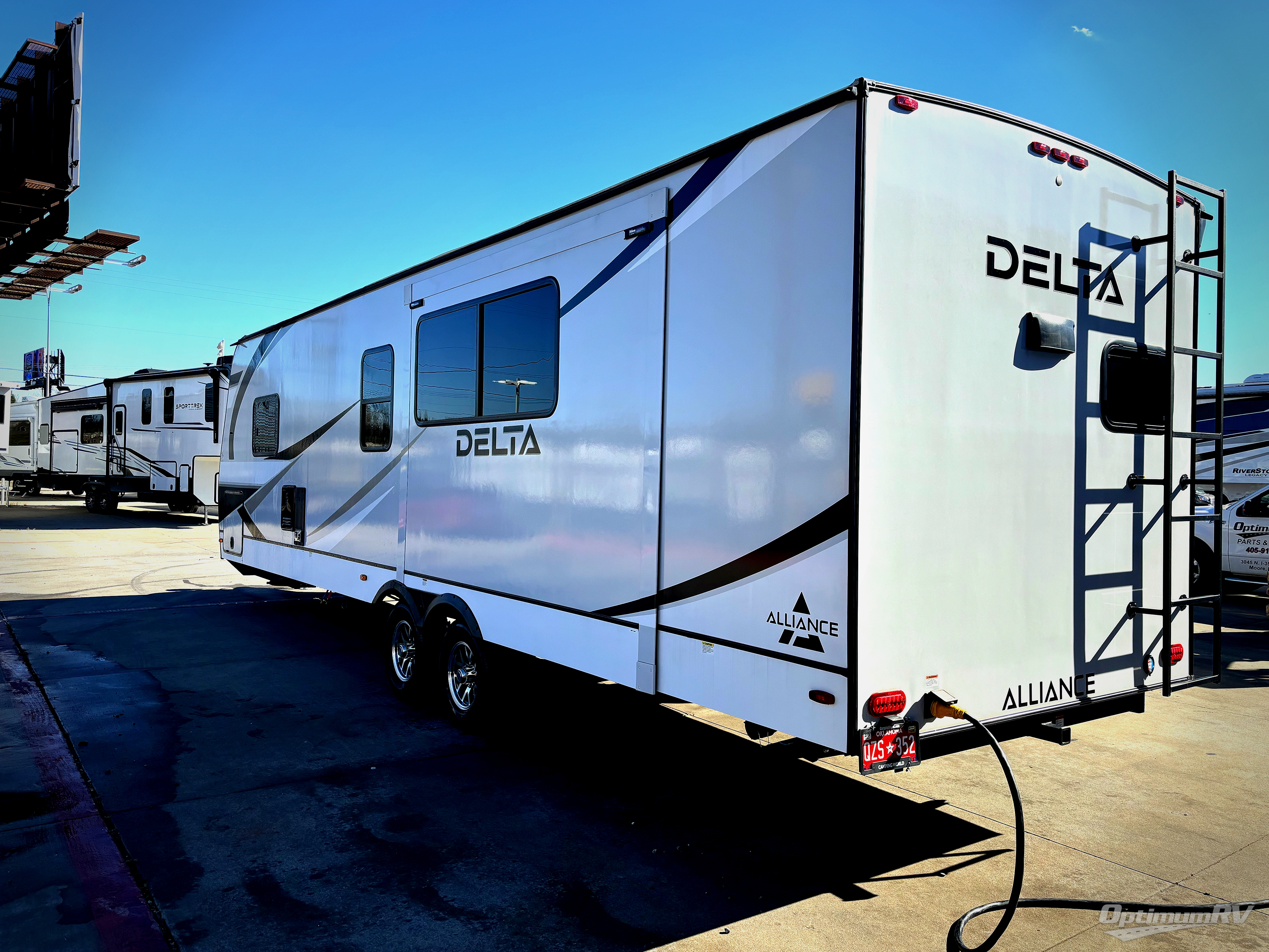 Form and function works together with every one of these Alliance RV Delta travel trailers! They are built with a walk-on roof with a seamless PVC roof covering, Mylar reinforced exterior seals, and a heated and enclosed underbelly to protect your unit in all seasons. The commercial grade vinyl flooring will be easy to clean and the oversized atrium windows throughout let in plenty of natural sunlight. With 62 cu. ft. of drop frame pass-through storage, you can bring along all of your essential camping gear plus it has USB charging for more convenience. There are many at home interior conveniences including a Bluetooth speaker, USB charging throughout, and even a pull-out kitchen trash can. Come find your favorite model today!