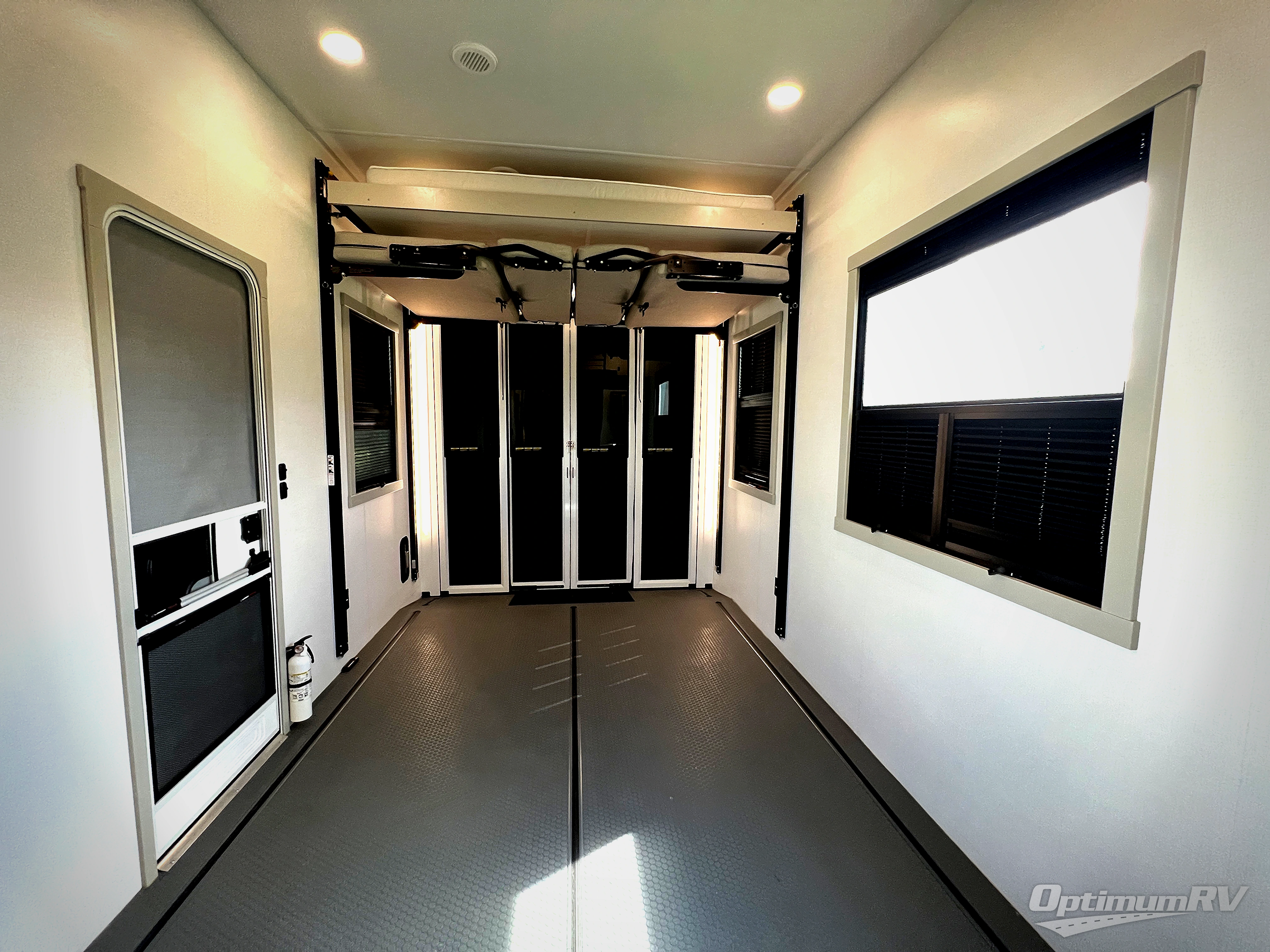 With any Model G toy hauler fifth wheel by Brinkley you will enjoy luxurious amenities, tons of storage space, and innovative features that have been developed and tested in the real world. Durable construction includes an industry leading PDI process, an industry best insulation package, and reinforced and walkable slide roofs. Some of the exterior features you'll find are a 3-way pass-through with a multi-functional flip-up bulkhead wall, under I-beam storage, a MAX-Vision reverse lighting system, and a low-maintenance roof to name a few. A Rockford Fosgate audio system comes standard, along with a OneControl app system that lets you control your fifth wheel's functions right from your mobile device. You will find the solar system with a designated storage area to be ultra convenient, plus there is a FlexPower 5500 with a dual fuel inverter generator for all your power needs. Head inside to find a residential interior with Brinkley's CraftSense wood trim construction, floating entrance steps, integrated window screens and insulated blackout blinds, and residential solid surface countertops plus backsplash. You will also enjoy the neon shower lighting and recessed medicine cabinets in the bath, plus motion activated LED bed lights and dual bedside outlets in the bedroom. Choose a Model G toy hauler fifth wheel to experience all the luxury it has to offer!