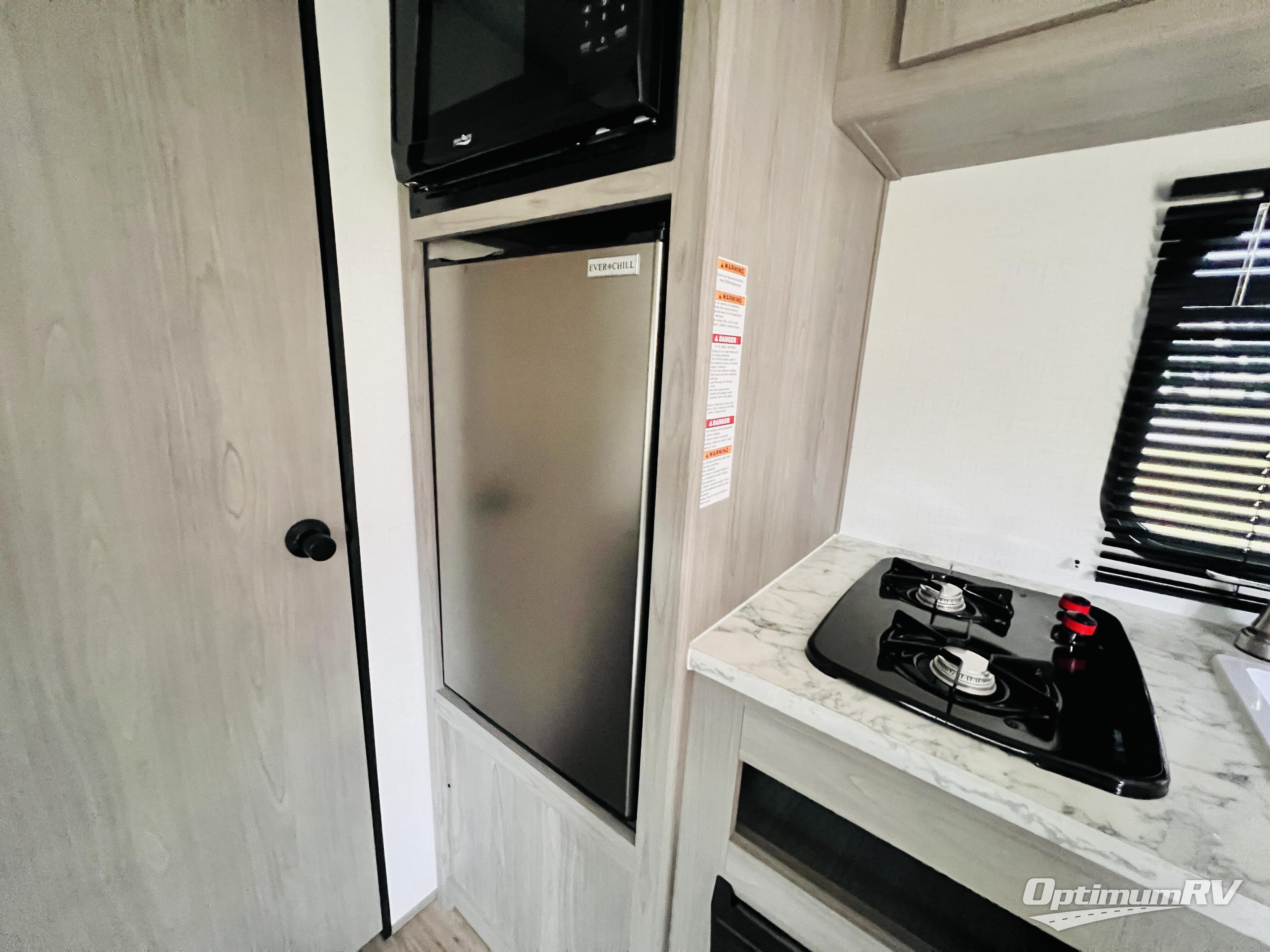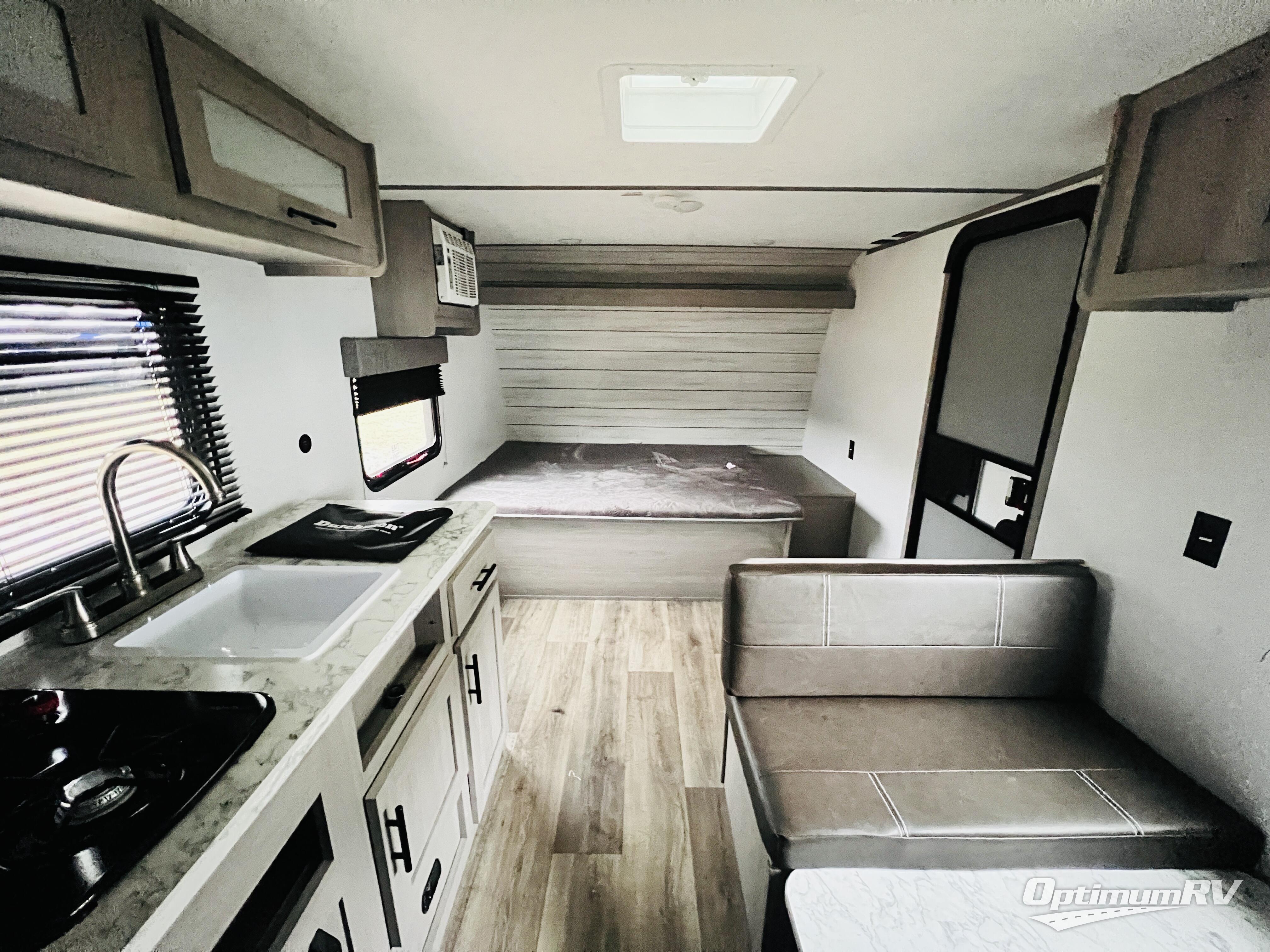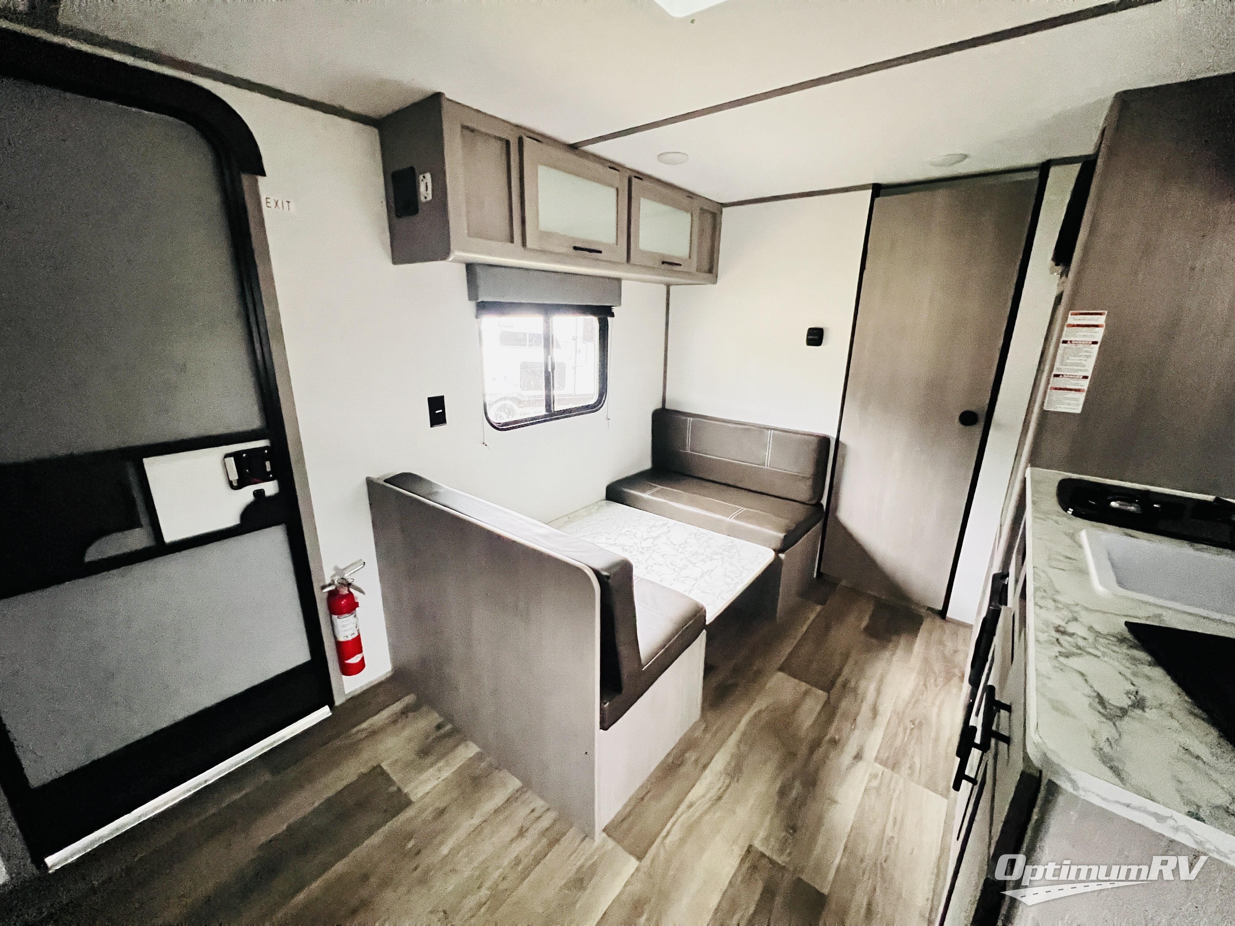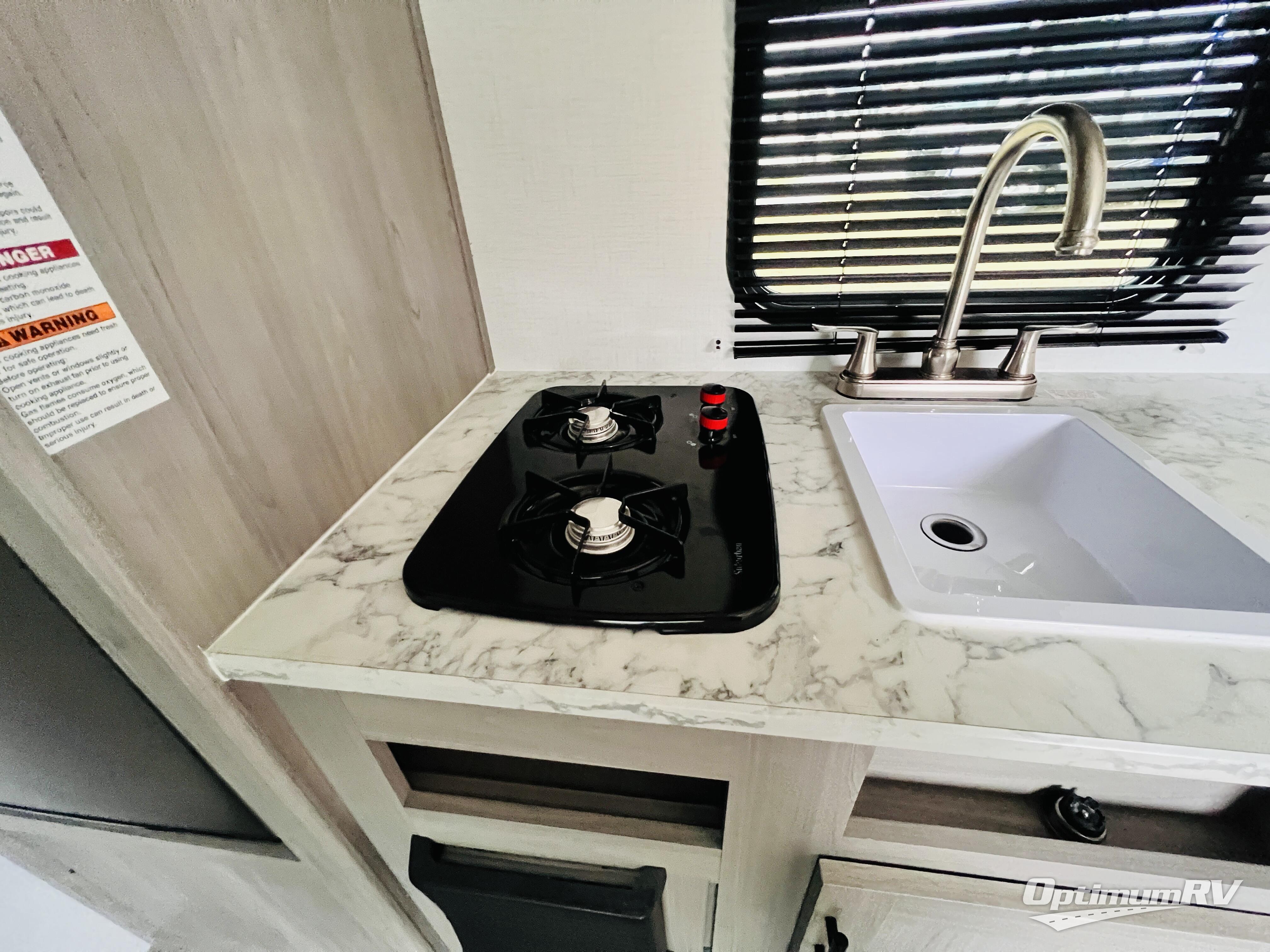 A perfect couples coach that could sleep one or two more, depending on size, using the booth dinette which can be converted at night This unit is cozy and convenient providing you just what you need to enjoy a little adventure away from home. For meals, there is a two burner cooktop and sink, plus a 3.3 cu. ft. refrigerator for your perishables. Overhead cabinetry can be found along both sides for your dishes and things. You will all appreciate the convenience of having your own private shower and toilet so that you don't need to use the campground facilities at night. You will also enjoy spending time outside with an 8' awning to provide even more living space outdoors!
