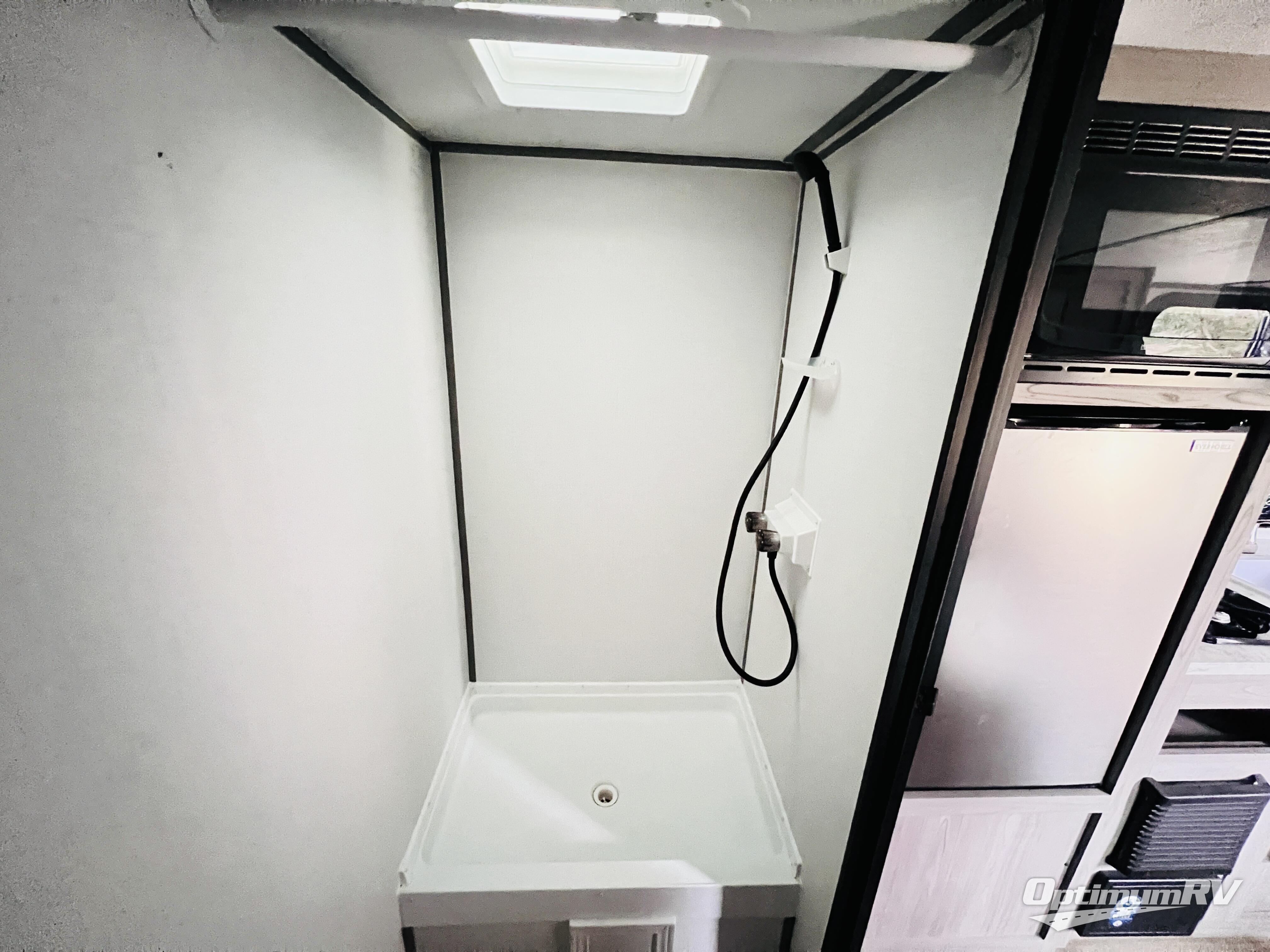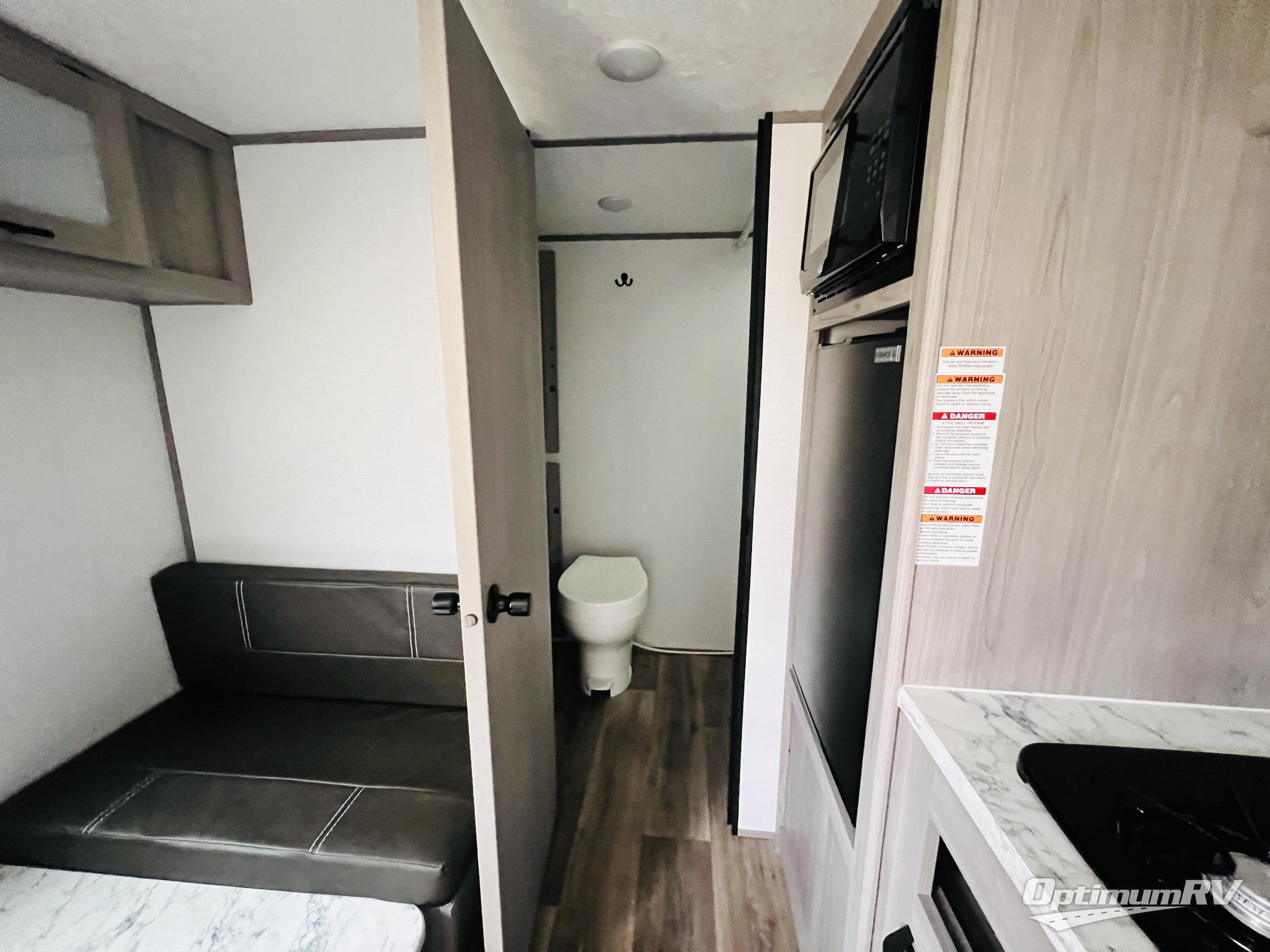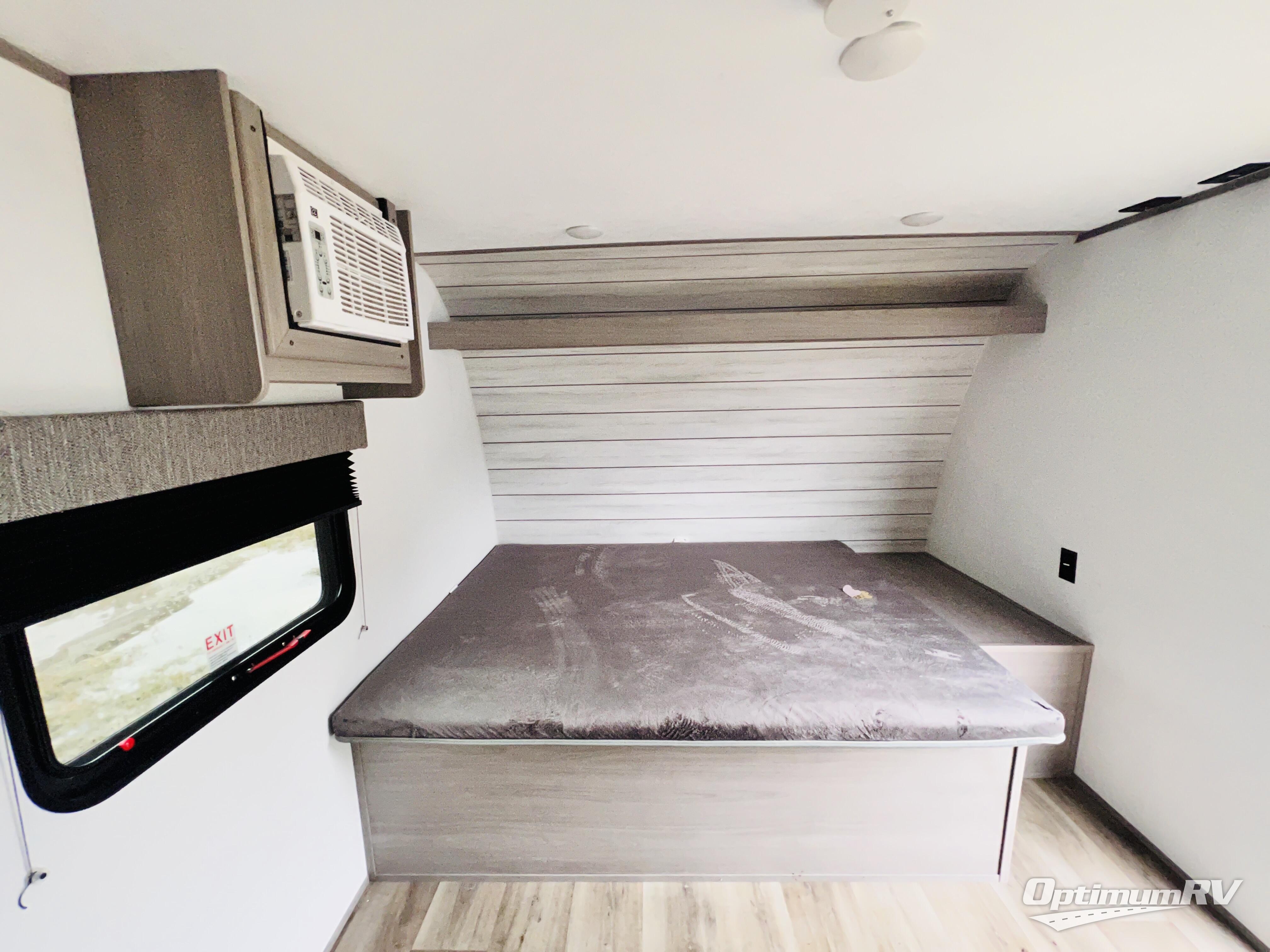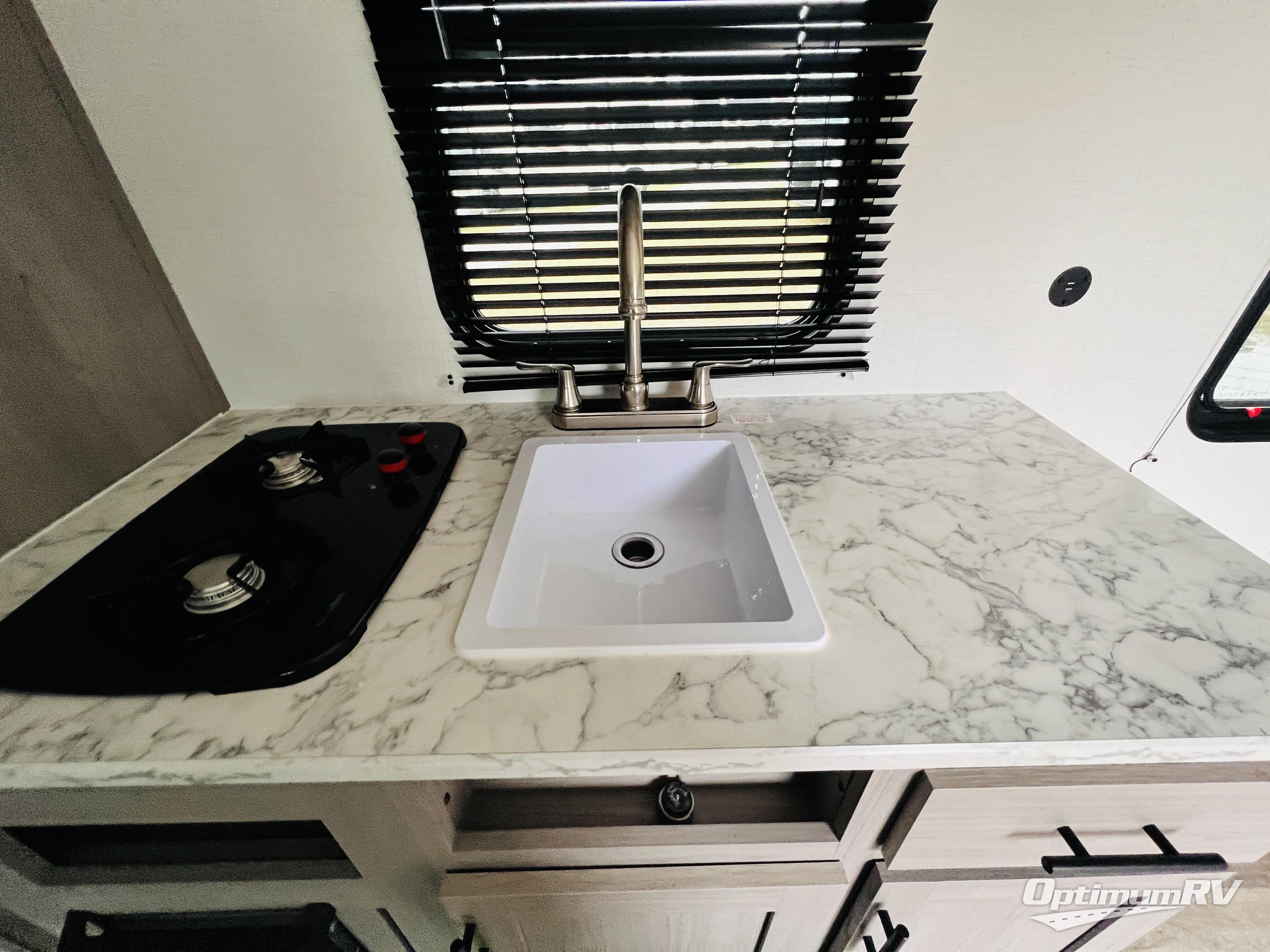 A perfect couples coach that could sleep one or two more, depending on size, using the booth dinette which can be converted at night This unit is cozy and convenient providing you just what you need to enjoy a little adventure away from home. For meals, there is a two burner cooktop and sink, plus a 3.3 cu. ft. refrigerator for your perishables. Overhead cabinetry can be found along both sides for your dishes and things. You will all appreciate the convenience of having your own private shower and toilet so that you don't need to use the campground facilities at night. You will also enjoy spending time outside with an 8' awning to provide even more living space outdoors!