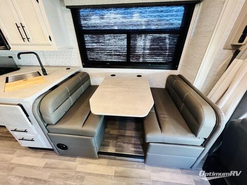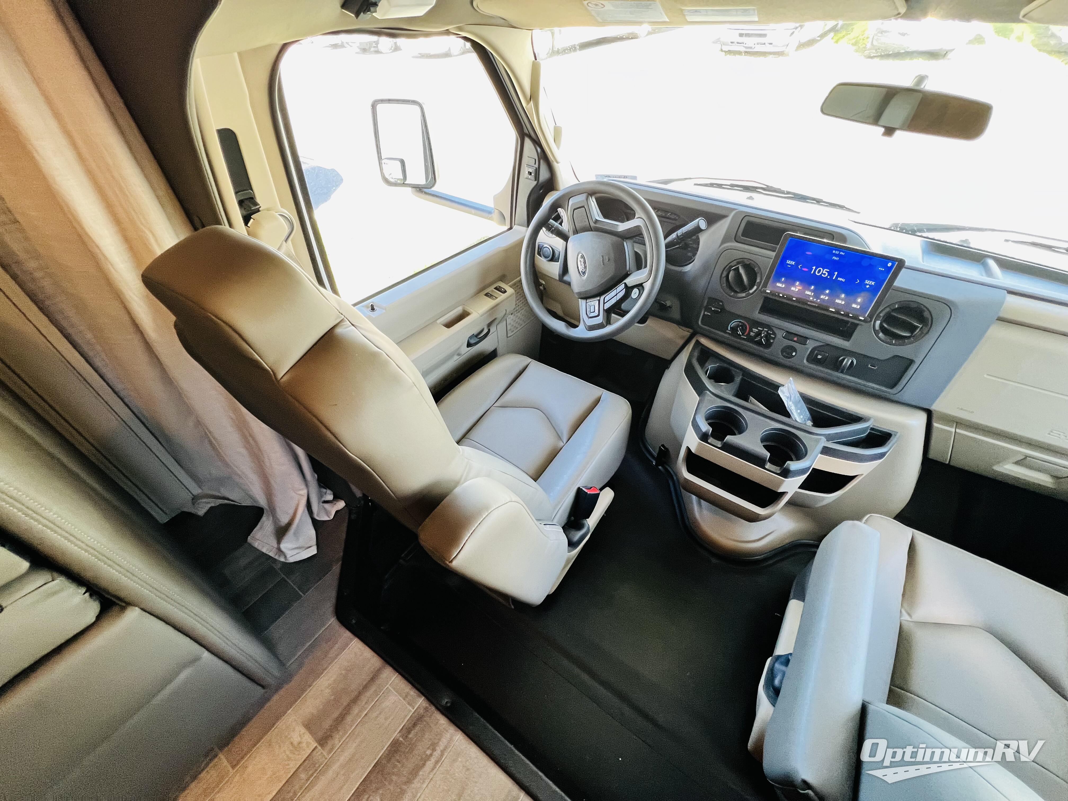 With any Odyssey Class C gas motorhome by Entegra Coach, the driver will appreciate the power from the 325 HP engine, the towing capacity from the 7,500 lb. hitch, the tire pressure monitoring system, the navigation from the Sony infotainment center with Apple CarPlay and Android Auto, plus the backup and side-view cameras when parking and driving down the highway. The kitchen offers full amenities including a recessed stainless steel sink with a cutting board sink cover, LED-lit pressed countertops, a decorative backsplash, and a pop-up charging station with 110 outlet and USB plugs to keep your smart phones charged. Get ready for luxury in a Class C, choose your favorite today!