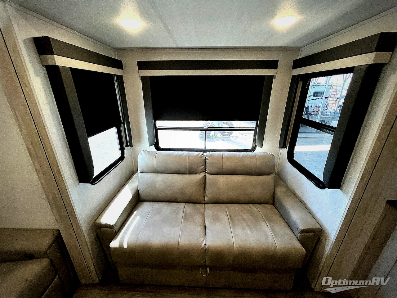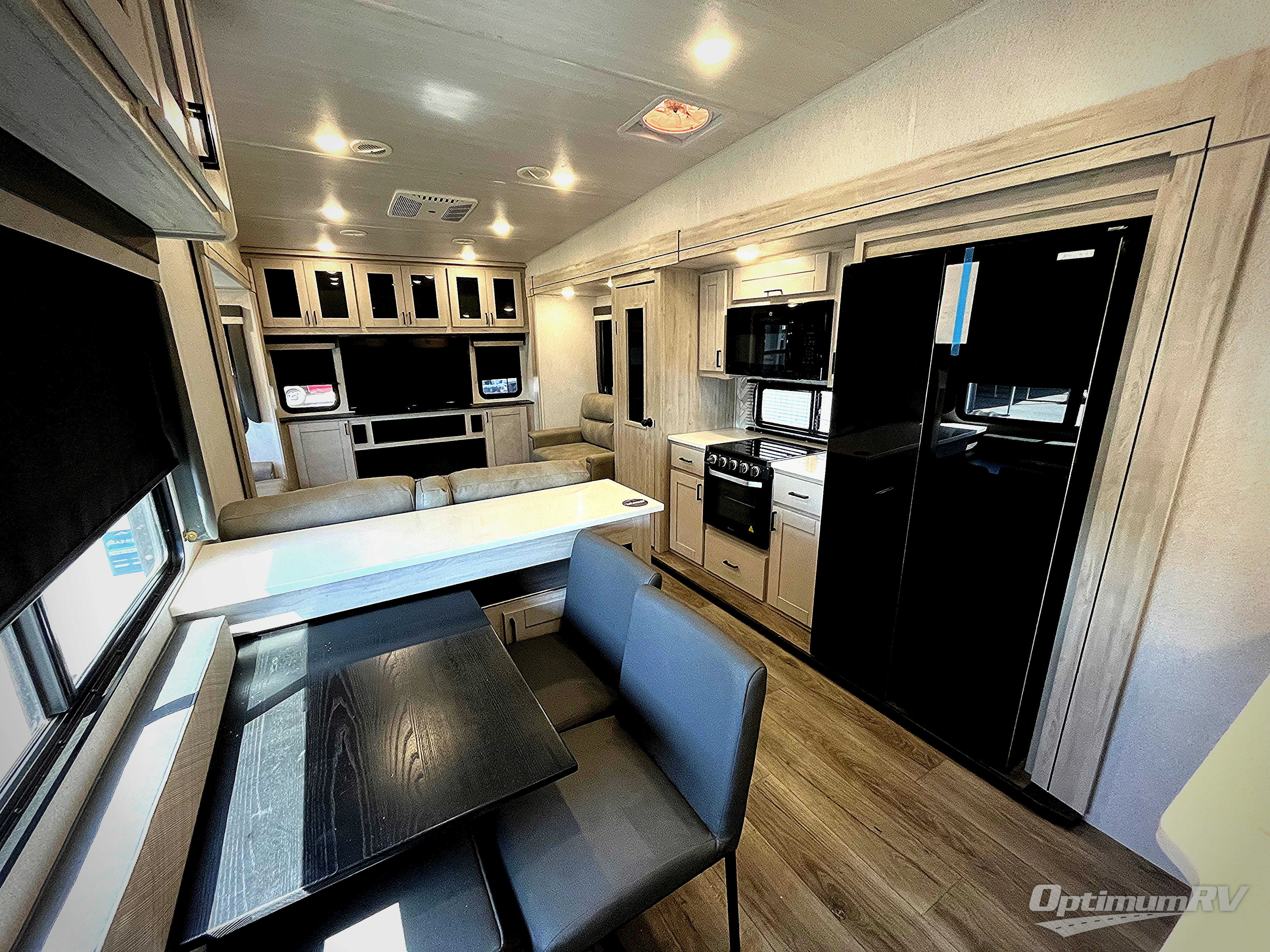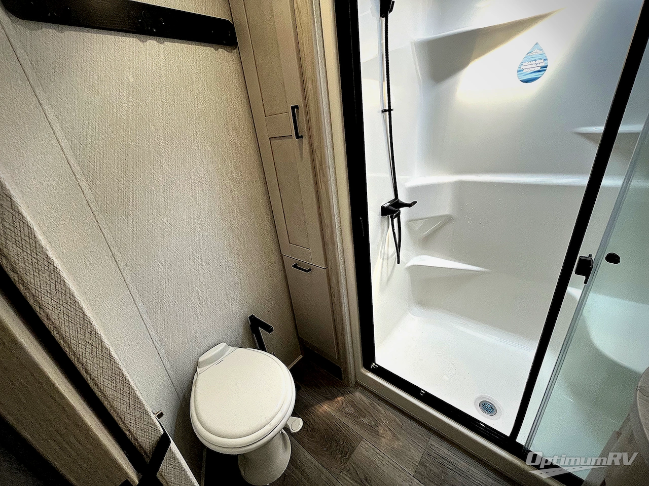 With any Blackthorn mid-profile fifth wheel by EAST TO WEST, you will find luxury amenities at every turn! There is Radiant Technology Composites insulation in the roof, front cap and underbelly, plus Azdel laminated sidewalls with block foam insulation for 4-seasons camping! You will love how easy it will be to tow your fifth wheel with Dexter axles and a MORryde CRE 3000 suspension, and the electric automatic leveling system means you can set up camp in no-time! The exterior also includes an adjustable power awning with LED lights, LED motion sensor lights in the pass-through storage, and a universal all-in-one docking station to easily manage your units tank levels and functions. Head inside to find vinyl flooring, solid wood shaker style cabinet doors with hidden hinges, a seamless fiberglass shower with the industry's first locking travel latch for glass shower doors, and many more elegant features!