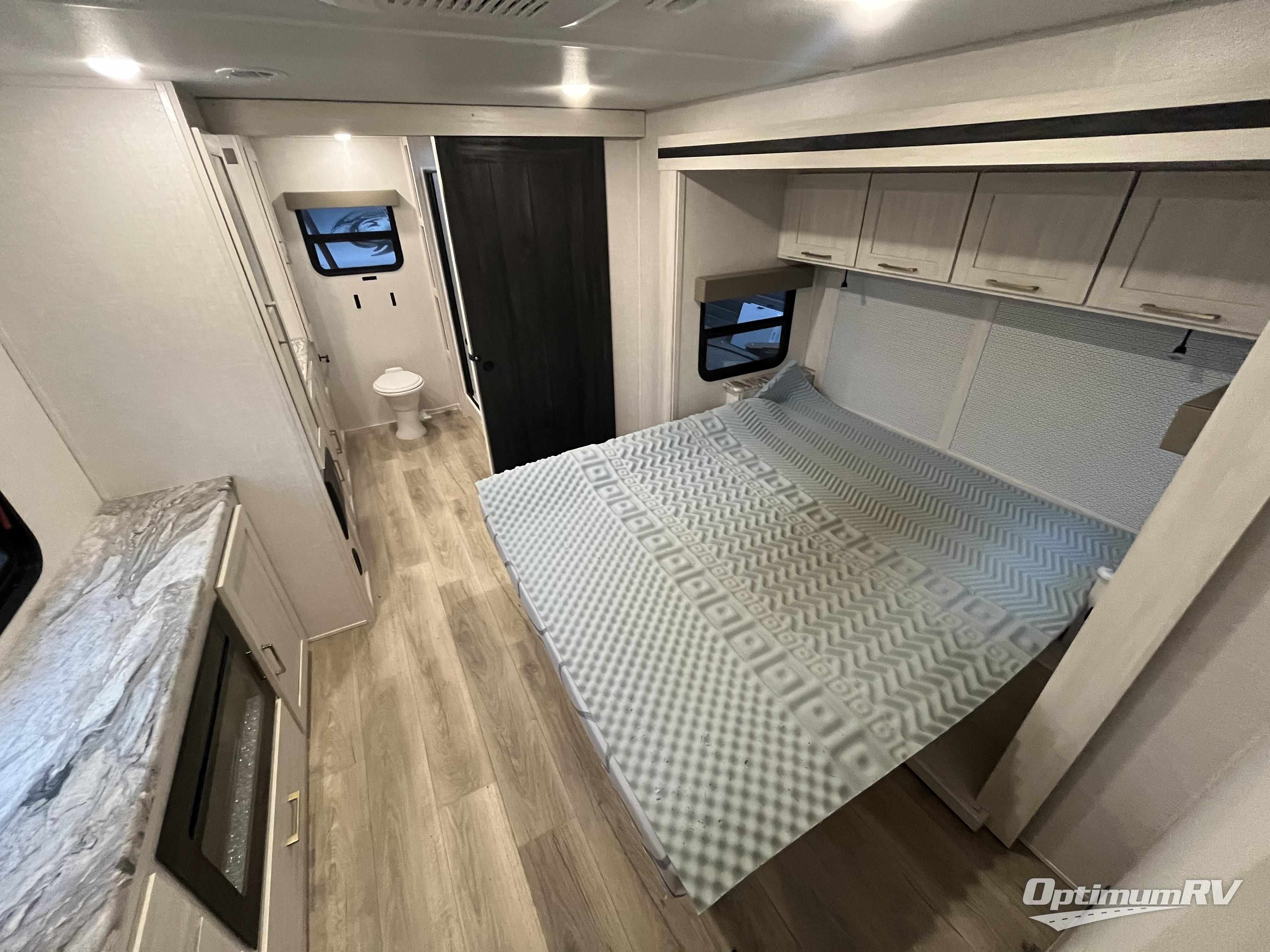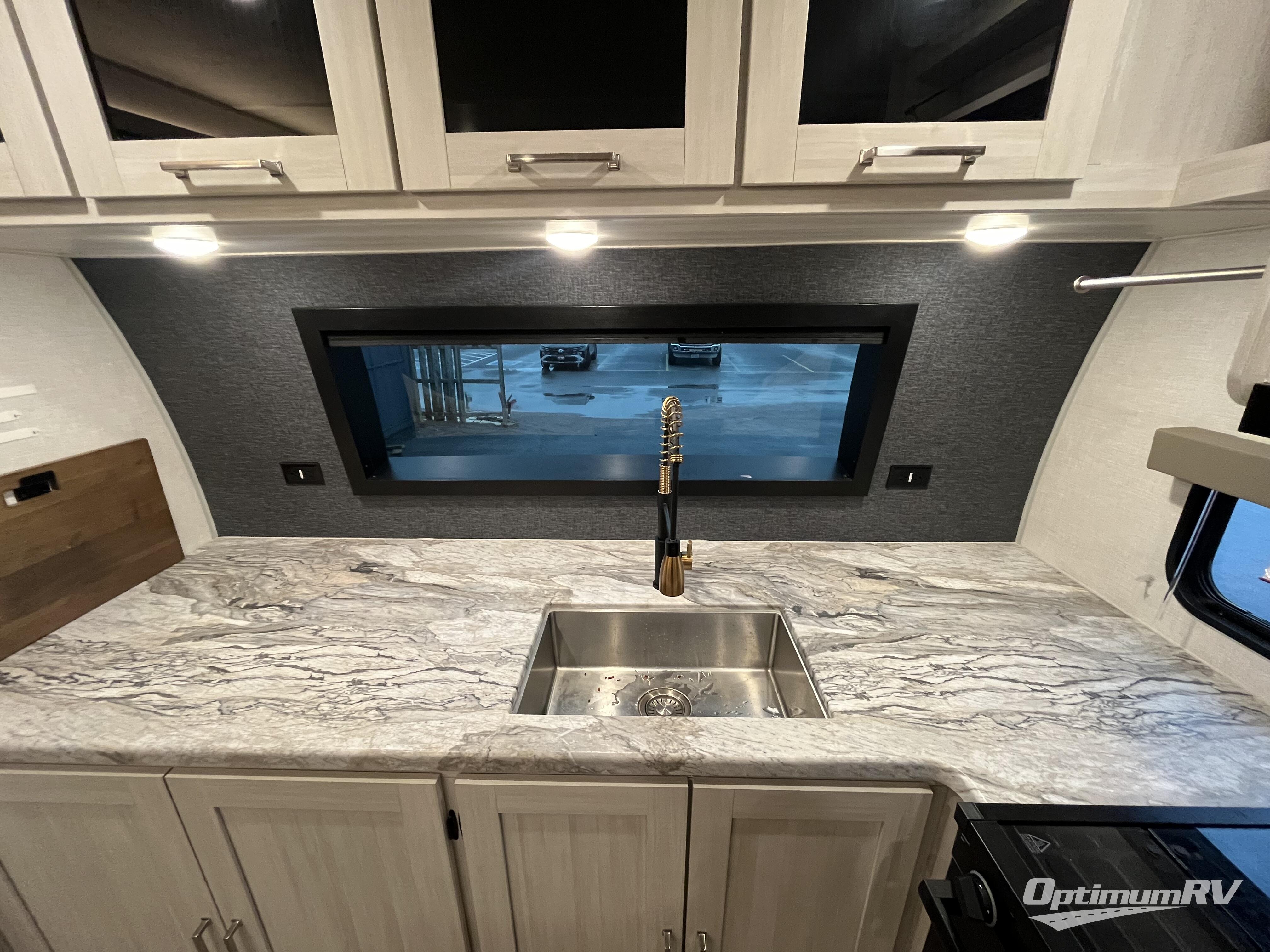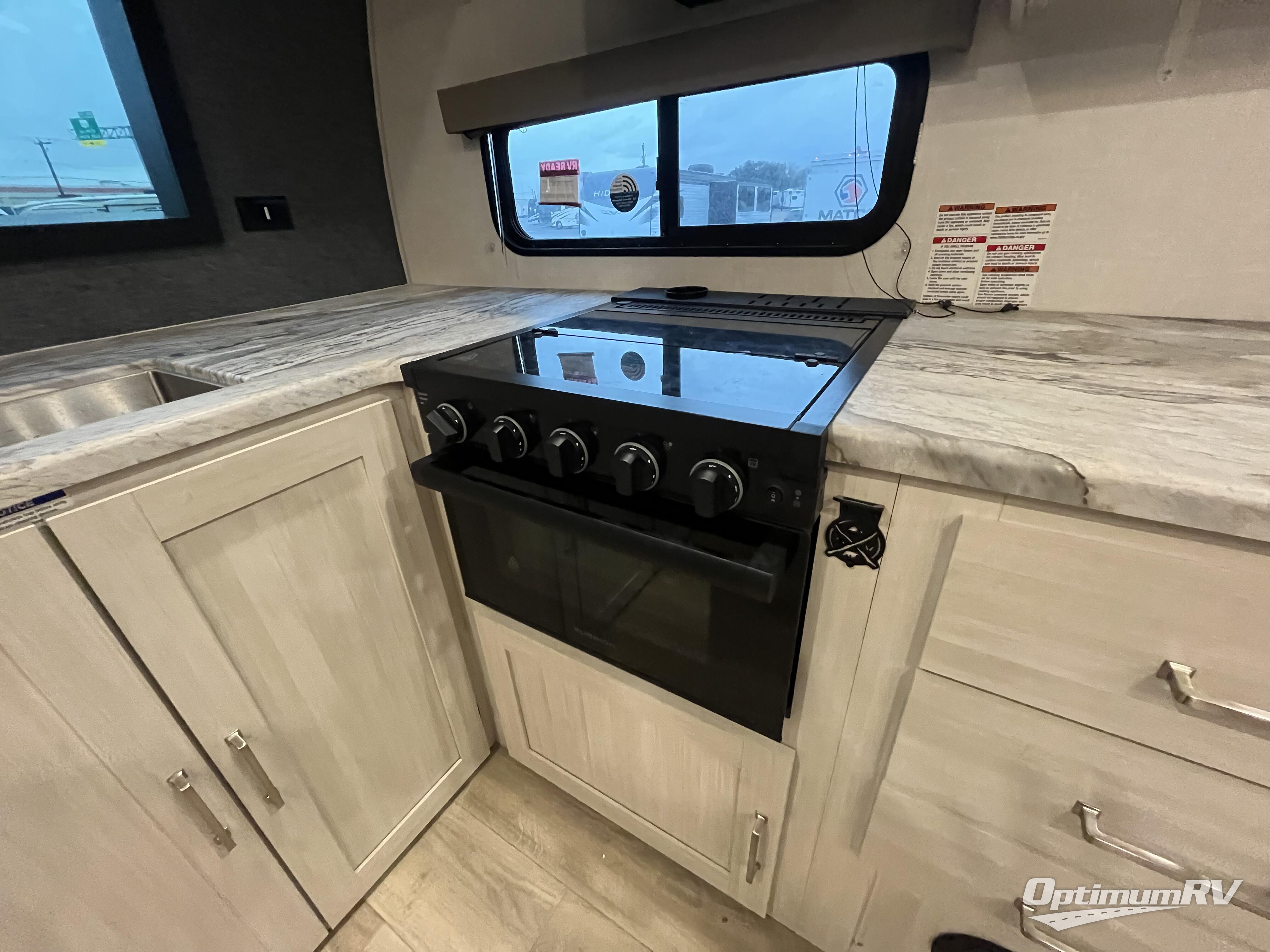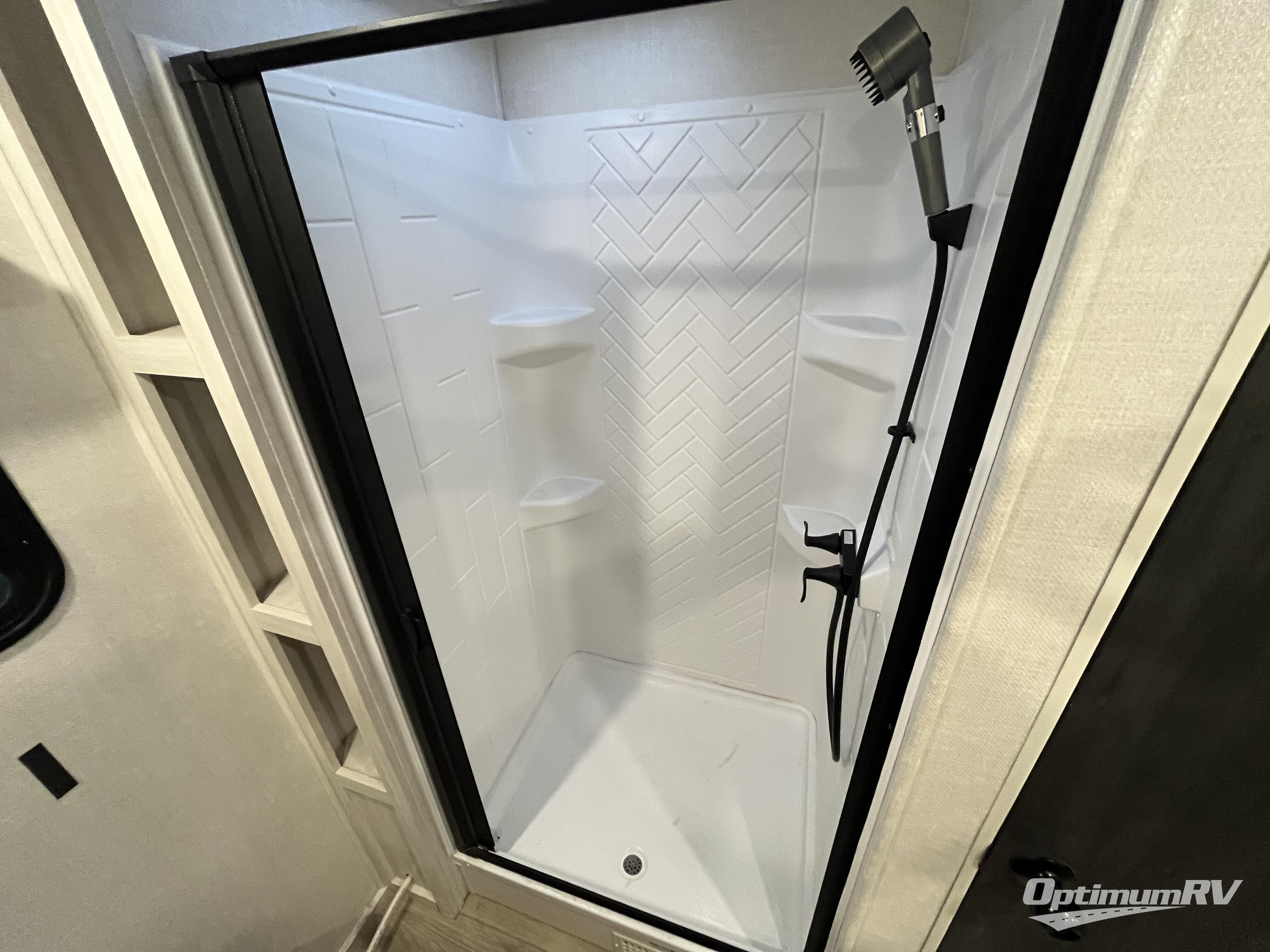 This couple's trailer will be giving you all the glamping vibes! There is a front kitchen with ample counter space, along with a counter with two bar stools, a central vacuum to easily clean up, and a slide out for more space! The second slide out is found in the middle master bedroom where you'll also enjoy a custom king bed across from a bedroom fireplace, a wardrobe, and a dresser with TV prep. Head towards the back and you'll be wowed by the full bath with dual bath sinks, an upgraded slow-close shower door, and a closet with washer and dryer prep. The exterior is just as impressive as the interior with its outside kitchen, 20' power awning with LED lights, pass-through storage, TV coax, and so much more!
