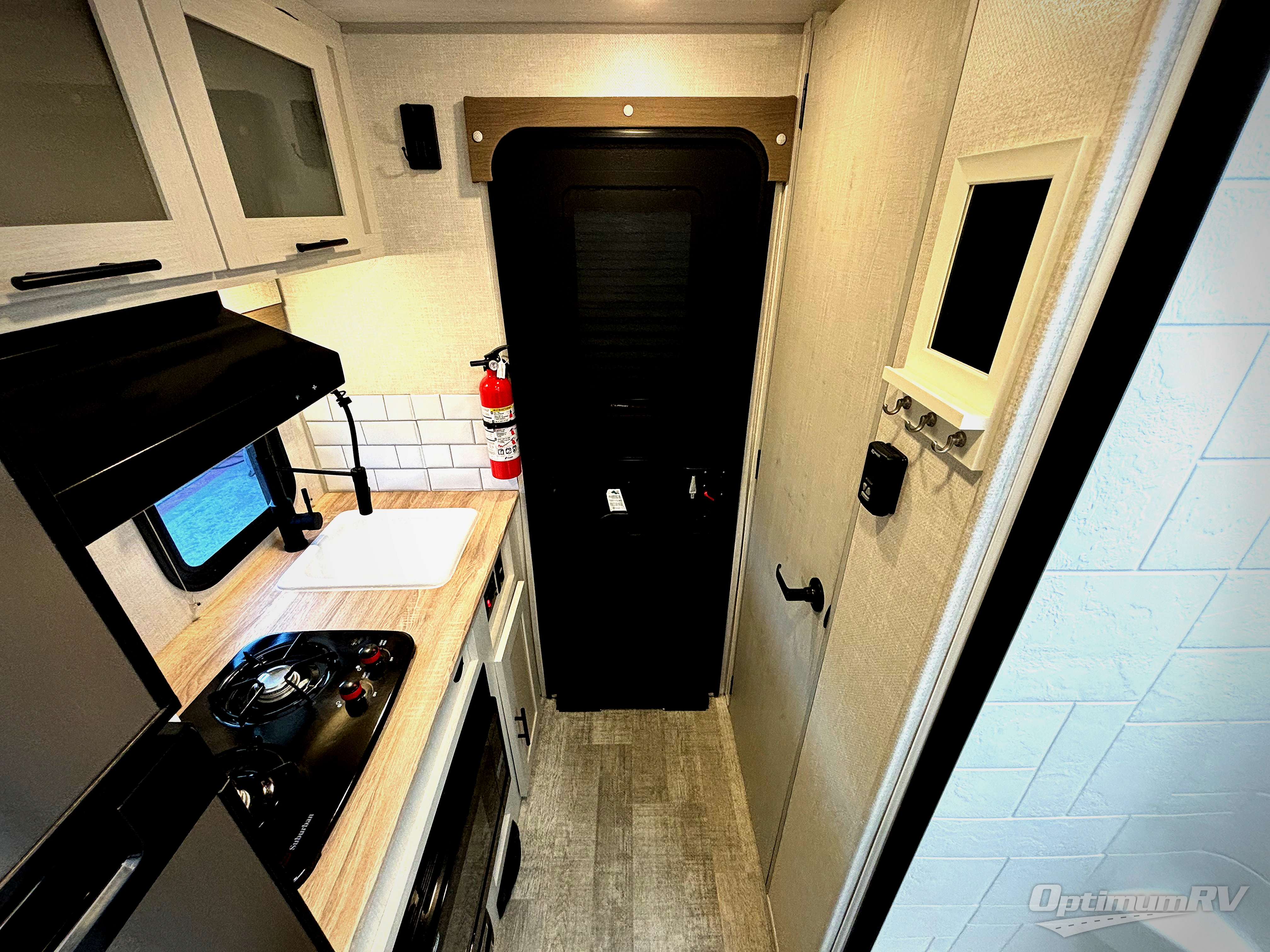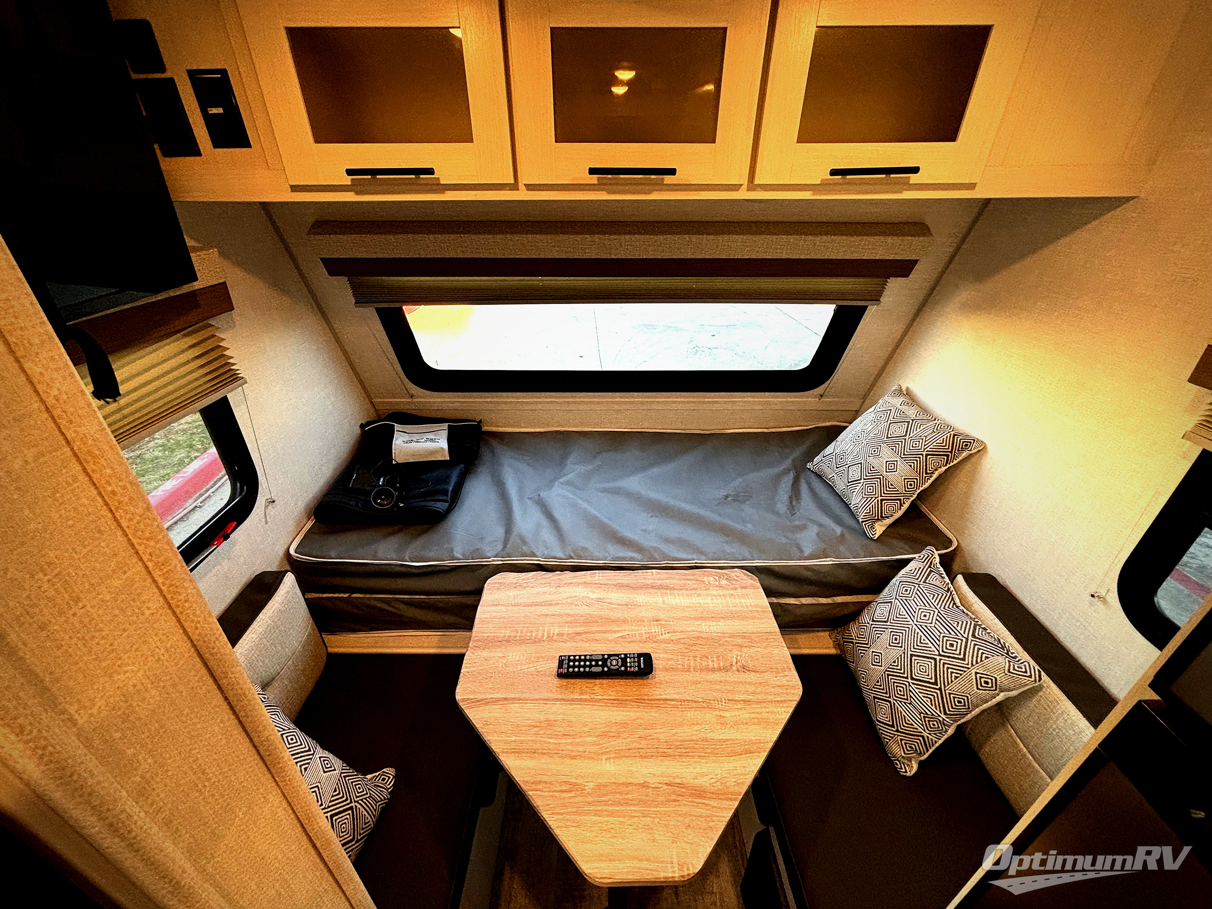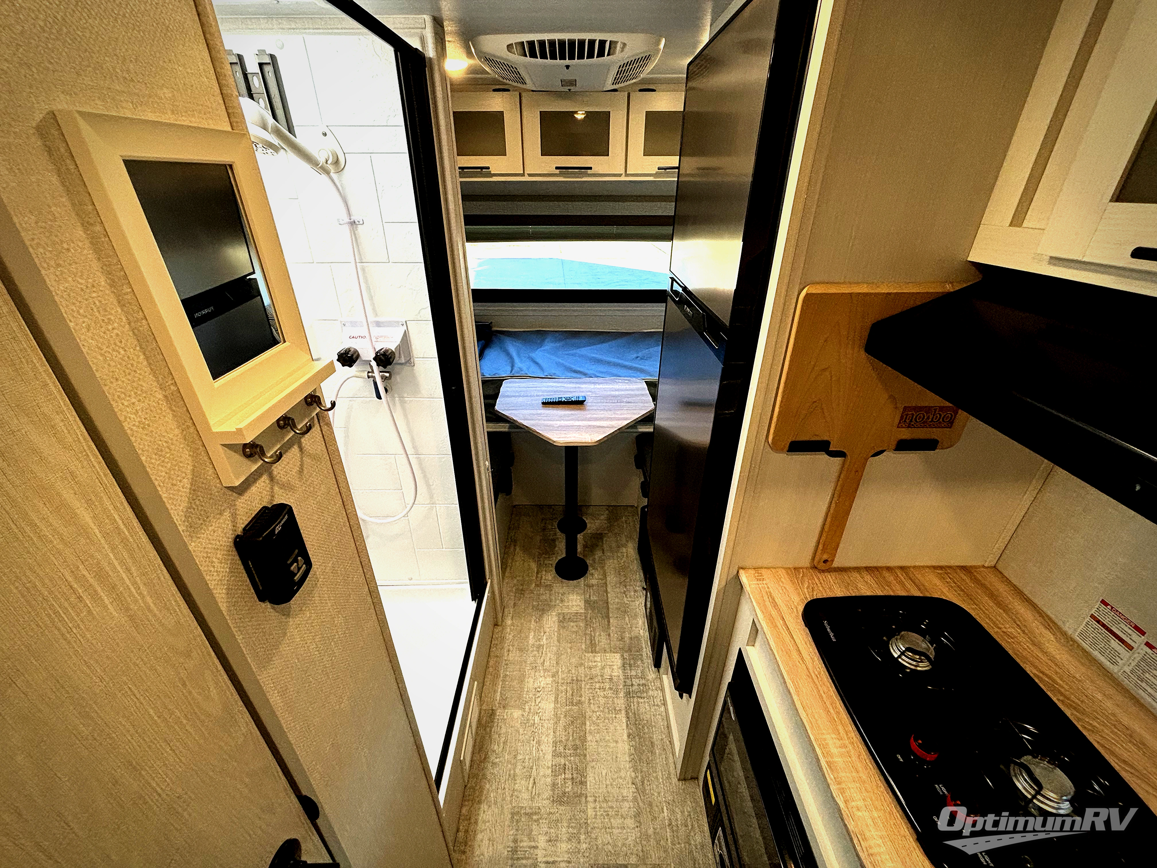 This is the perfect couples unit that features everything that you need to enjoy traveling and exploring yet keeping your tow length and weight down. The unique rear entry makes this unit easy to access, and just inside the rear door there is a private toilet area for quick access when you are outside and you need the bathroom. A front queen bed that is 60" x 74" provides a great night's rest, and can easily convert to a booth dinette when needed for inside seating and meals. The two burner cooktop, sink, and refrigerator allow you to make easy camp meals inside if you'd like.