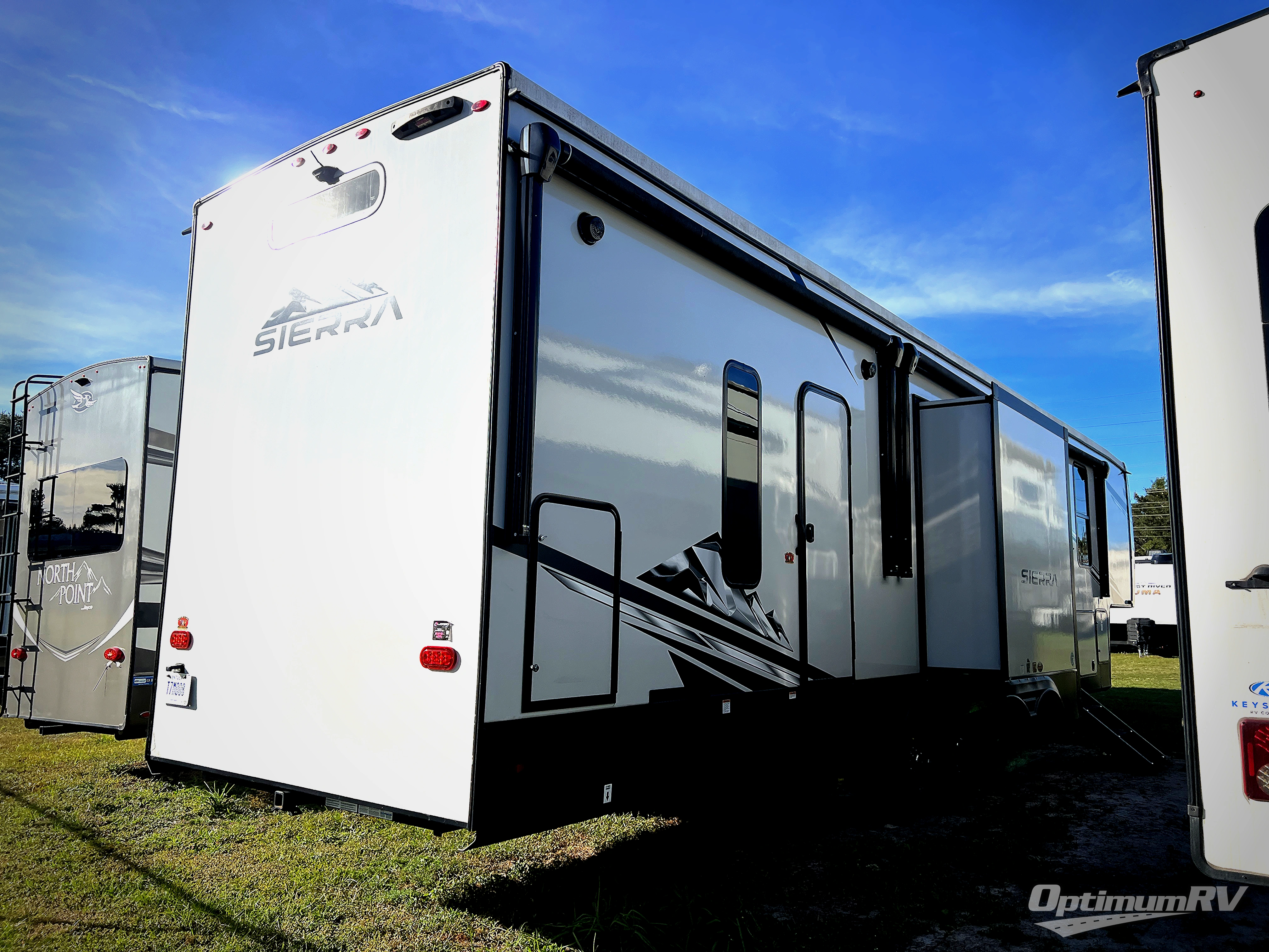 Each one of these Forest River Sierra fifth wheels are equipped with everything you need to make the most of each adventure! The underbelly armor will protect your unit's vitals from road debris and the painted two tone aerodynamic fiberglass front cap has an improved turning radius to make them easier to navigate. With an electric leveling system, you can set your unit up quick and easy then get to having fun faster than ever. The welded aluminum framed, vacuum bonded laminated superstructure will hold up through every adventure and the cambered powder coated frame comes with rust prohibitor to last longer. Each model also includes the Summit Package that comes with a king Wi-Fi extender system and Olympus antenna, a full coach water filter system, Goodyear tires with 7,000 lb. axles, and the list goes on. The interior is just as impressive with rustic wood plank linoleum, recessed residential lighting, a memory foam mattress, and mocha accent crown molding over the kitchen cabinets!