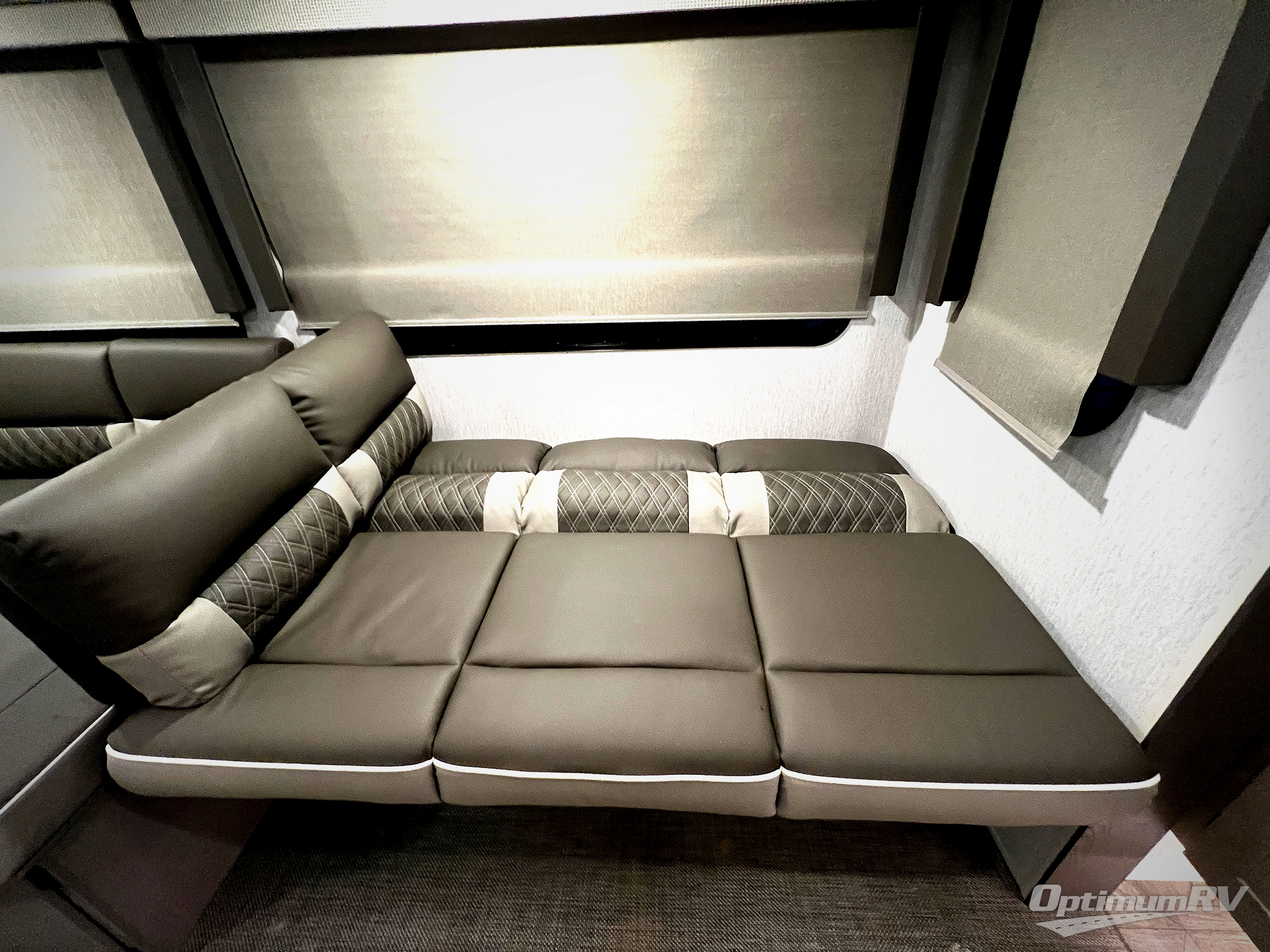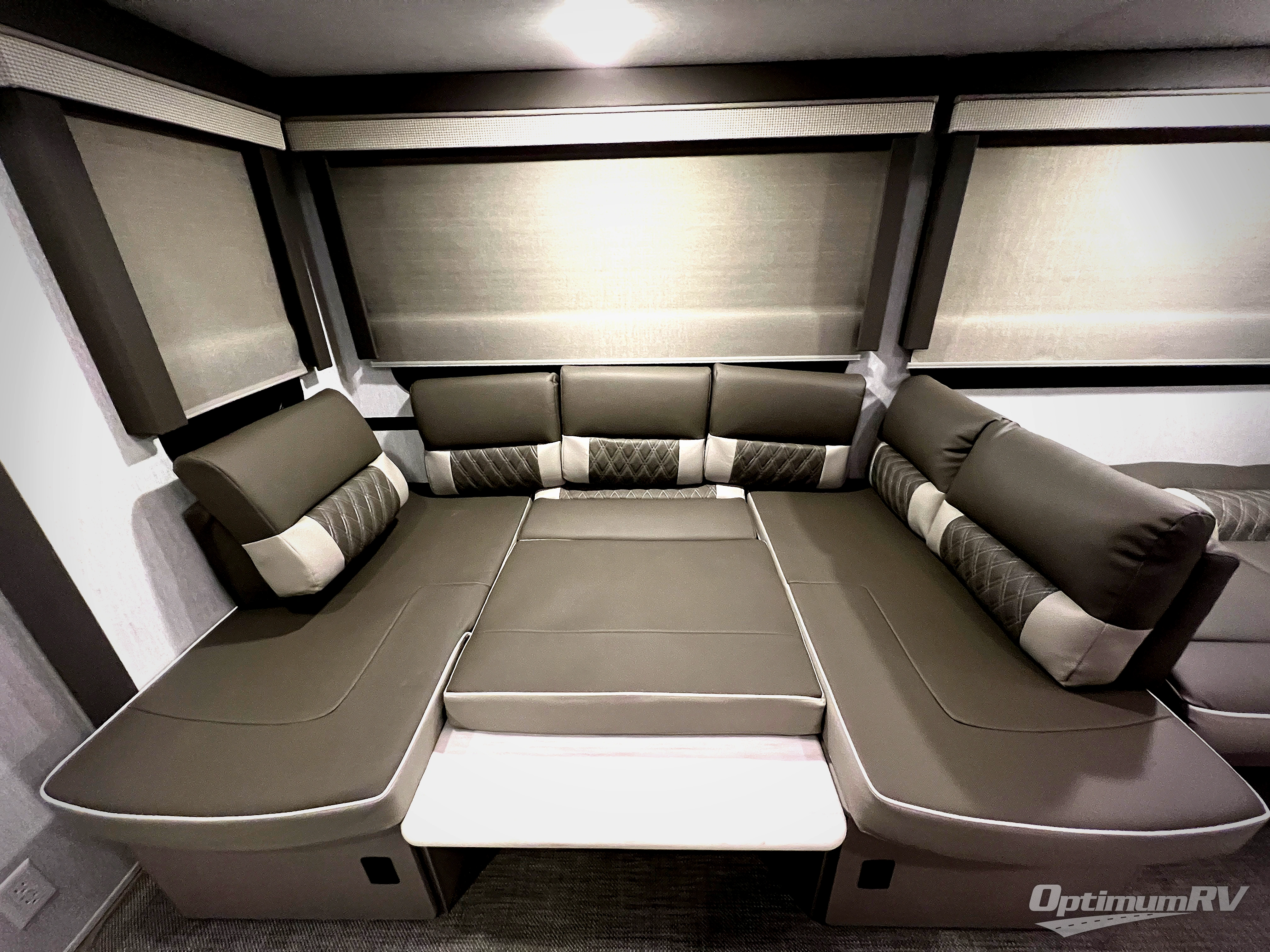 Hurry back to the campsite with this Wildwood travel trailer! With plenty of conveniences all throughout, this model gives you room and amenities to sleep ten people comfortably. You can choose from the custom king bed with Versa Tilt up front in the private bedroom, the set of double-size bunks in the back, or the U-shaped dinette and Versa-Lounge in the main living area. Plus, cooking for everyone will be a breeze in the fully-equipped kitchen or optional exterior kitchen!