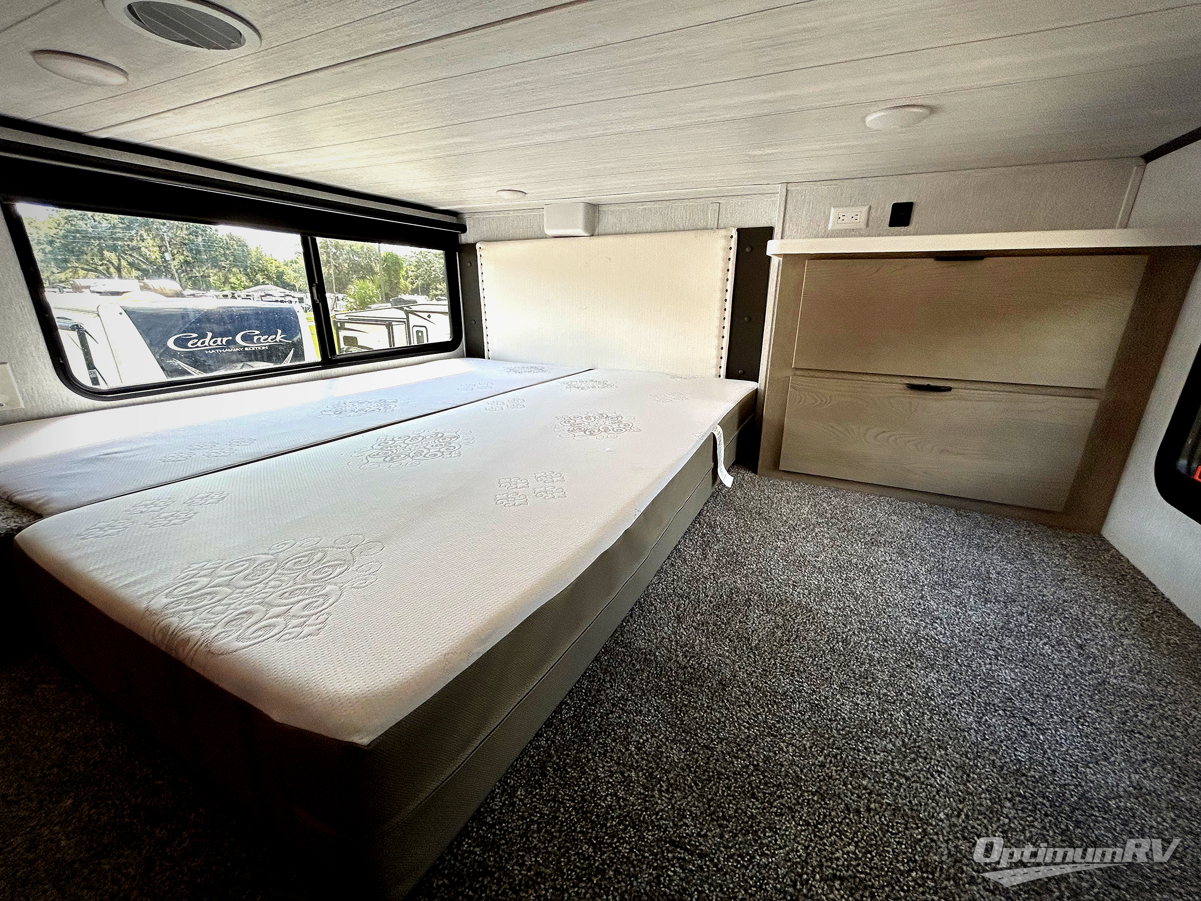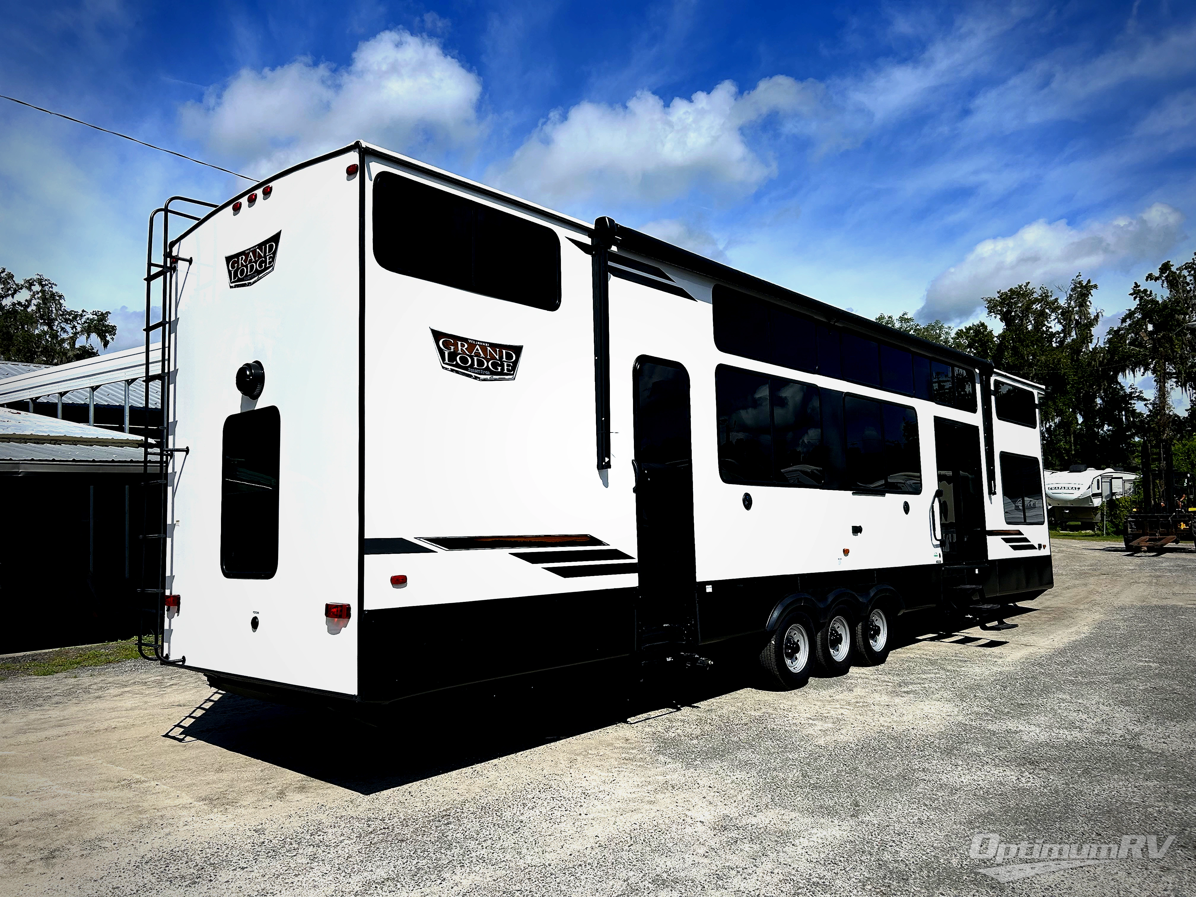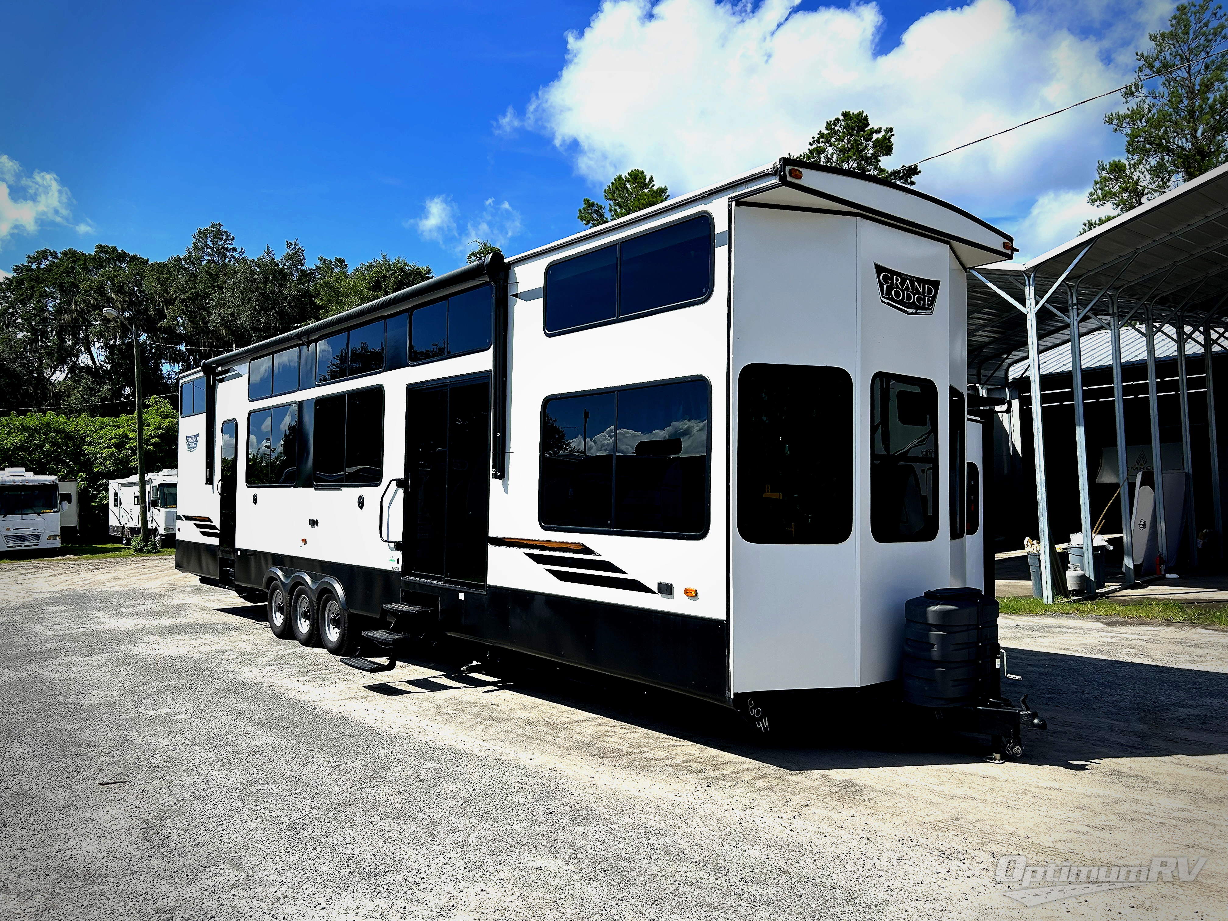 You will experience a home away from home with any one of these Forest River Wildwood Grand Lodge destination trailers! Their construction consists of a 12" forged I-beam frame, a cambered chassis, and plywood floor decking, as well as 5" bowed truss roof rafters, 3/8" roof decking, and color coded water lines to make life easier. The one-piece, seamless slides and 102" interior living room height makes for more walking around space. A Best in Class Value package includes upgraded designer furniture, a central vacuum with sweep attachment, and stainless steel kitchen appliances. Plus, it also features a heated and enclosed Accessi-Belly with removable panels and an exterior LED light strip under the awning. Come choose your favorite model today!