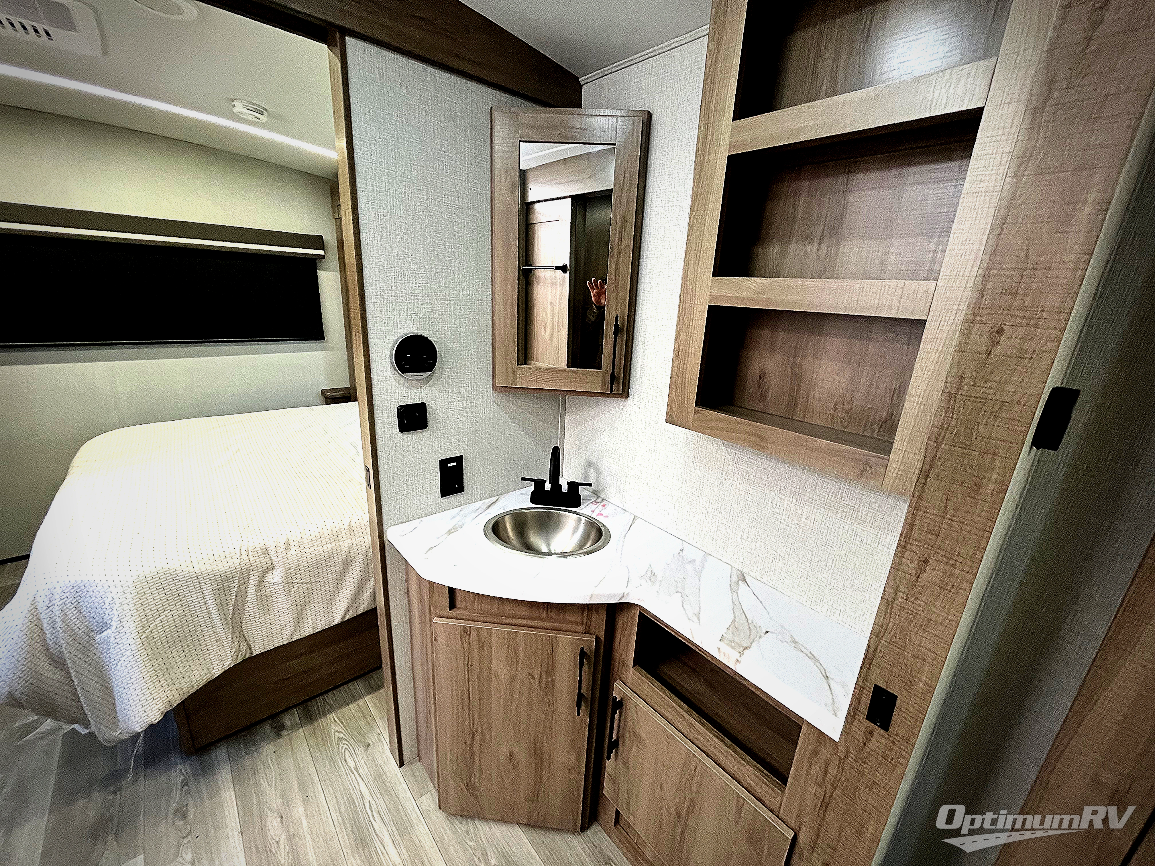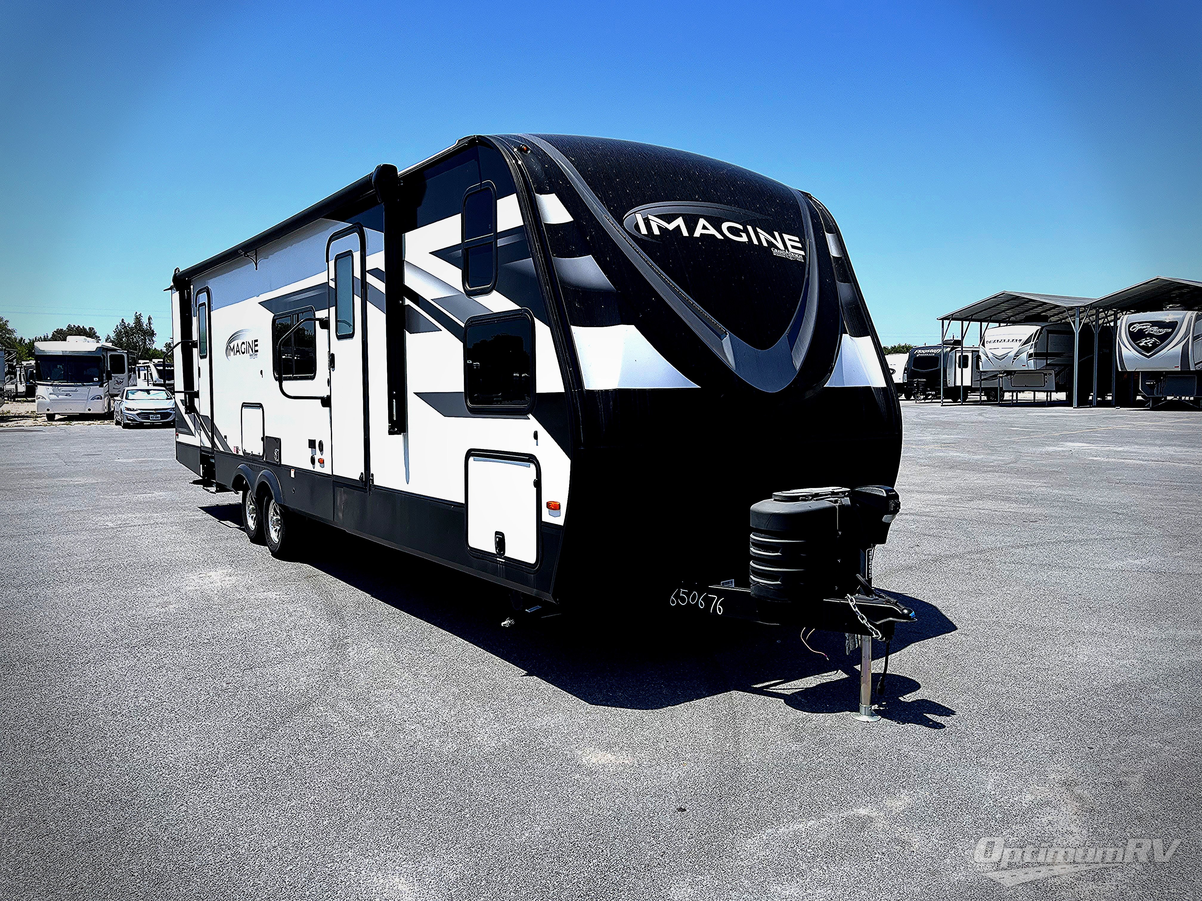 Just imagine leaving the world behind and secluding yourself away with your favorite people in your Grand Design Imagine travel trailer! The Imagine has been designed to enjoy extended season camping and includes a high-capacity furnace, a heated and enclosed underbelly with suspended tanks, a designated heat duct to the subfloor, and a high-density roof insulation with attic vent. You'll have maximum headroom with radius interior ceilings, and large panoramic windows to let in natural lighting. The exclusive drop-frame pass-through storage compartment is going to allow you to bring along lots of equipment, and the universal docking station is an all-in-one location for utilities and hook-ups. You'll also have industry-leading tank capacities so that you can fill and empty your tanks less often.