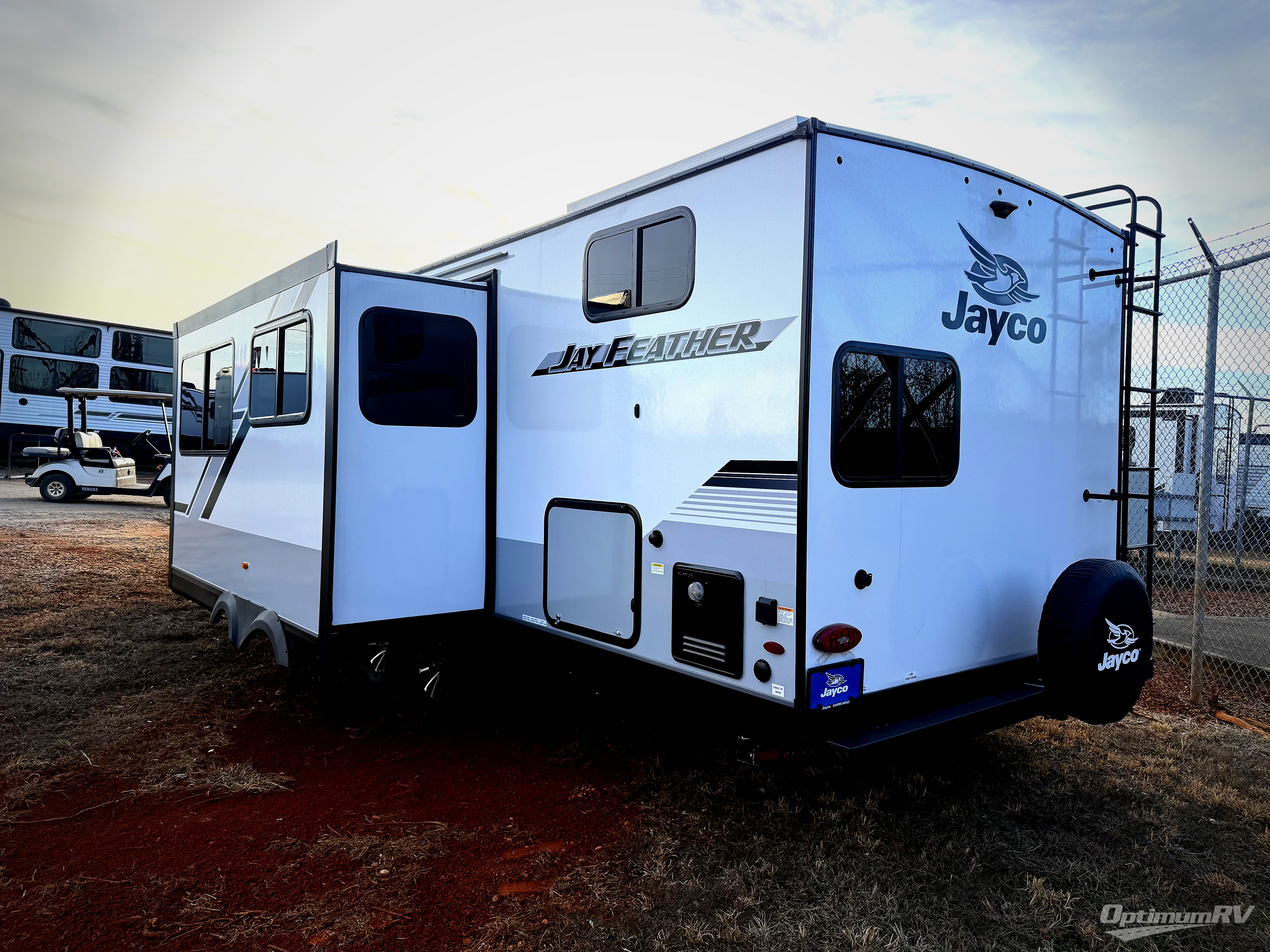 With any Jay Feather travel trailer by Jayco, you will enjoy lightweight towing, convenient exterior amenities, and at-home comforts inside! The Overlander 1 Solar Package included within the Jay Sport Package comes with a 200W solar panel and a 30-amp digital controller so you can enjoy some off-grid camping. There is also a modern graphics package with a dual-colored sidewall, LCI Solid Step fold-down aluminum tread steps on the main entry door, and Climate Shield 0 -100° F tested weather insulation package that will allow you to camp in all sorts of climates. The Customer Value Package will make time outdoors easier than ever with an outside shower, a power tongue jack and a Rock Solid stabilizer system, plus American-made nitro-filled Goodyear tires with self-adjusting electric brakes. More exterior features include a Keyed-Alike locking system, marine grade exterior speakers with blue LED accent lighting, a Magnum Truss roof system, and the list goes on! And we haven't even touched on the interior comforts, like the residential style kitchen countertops and vinyl flooring throughout, decorative backsplash, handcrafted hardwood door/drawer fronts, and multiple USB charging ports to keep you going!