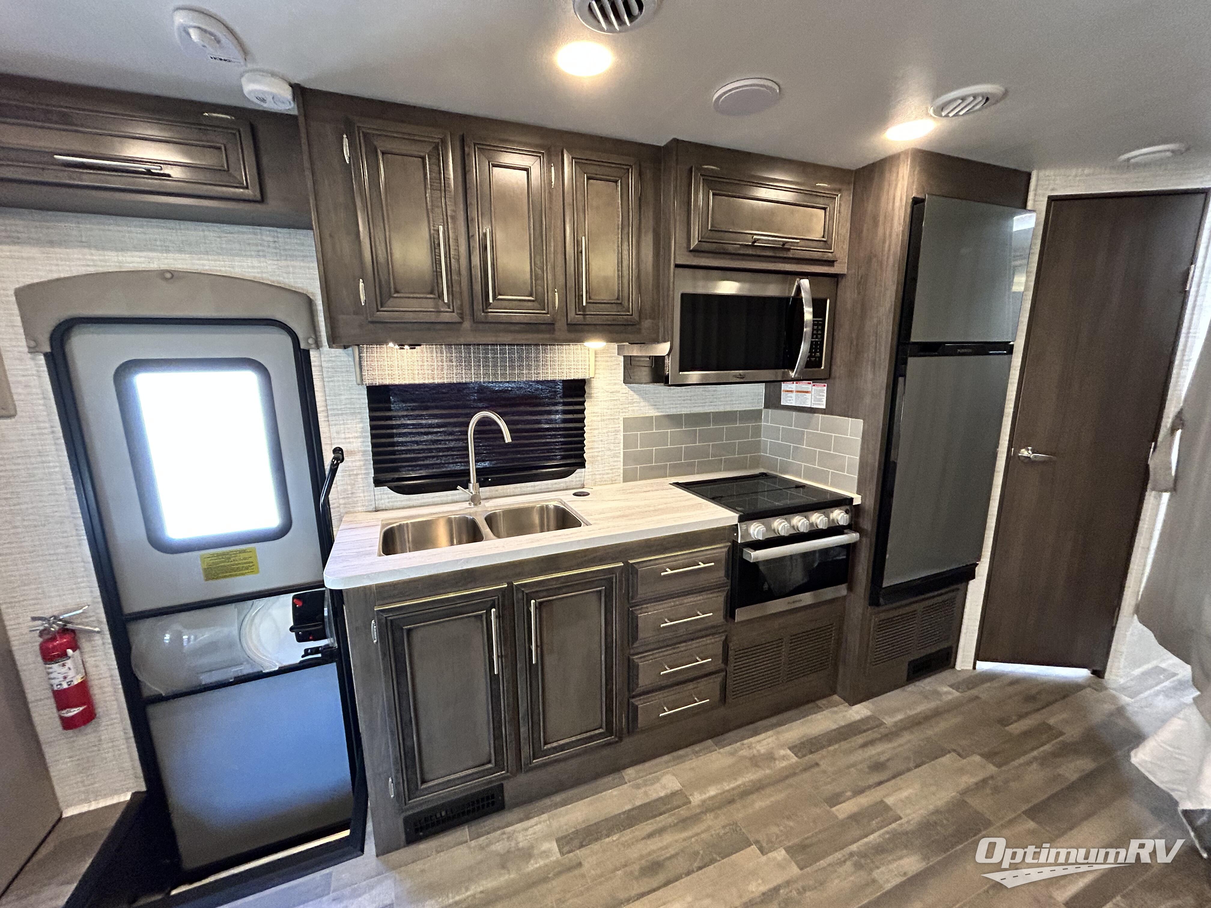 Easily load up and head out for an adventure in this Redhawk with sleeping space for five, a full bathroom, and kitchen amenities to stay fed the whole trip. Once at your campsite, easily let out the slide and the 16' electric awning and plan your next activity. You an use the full bath, make a meal in the kitchen with the Furrion all-in-one cooktop and oven, plus the residential-size microwave, and grab your beverage from the 10 cu. ft. refrigerator. The driver and passenger seats swivel for more interior seating, and if you like, choose the theater seating option in place of the U-shaped dinette.