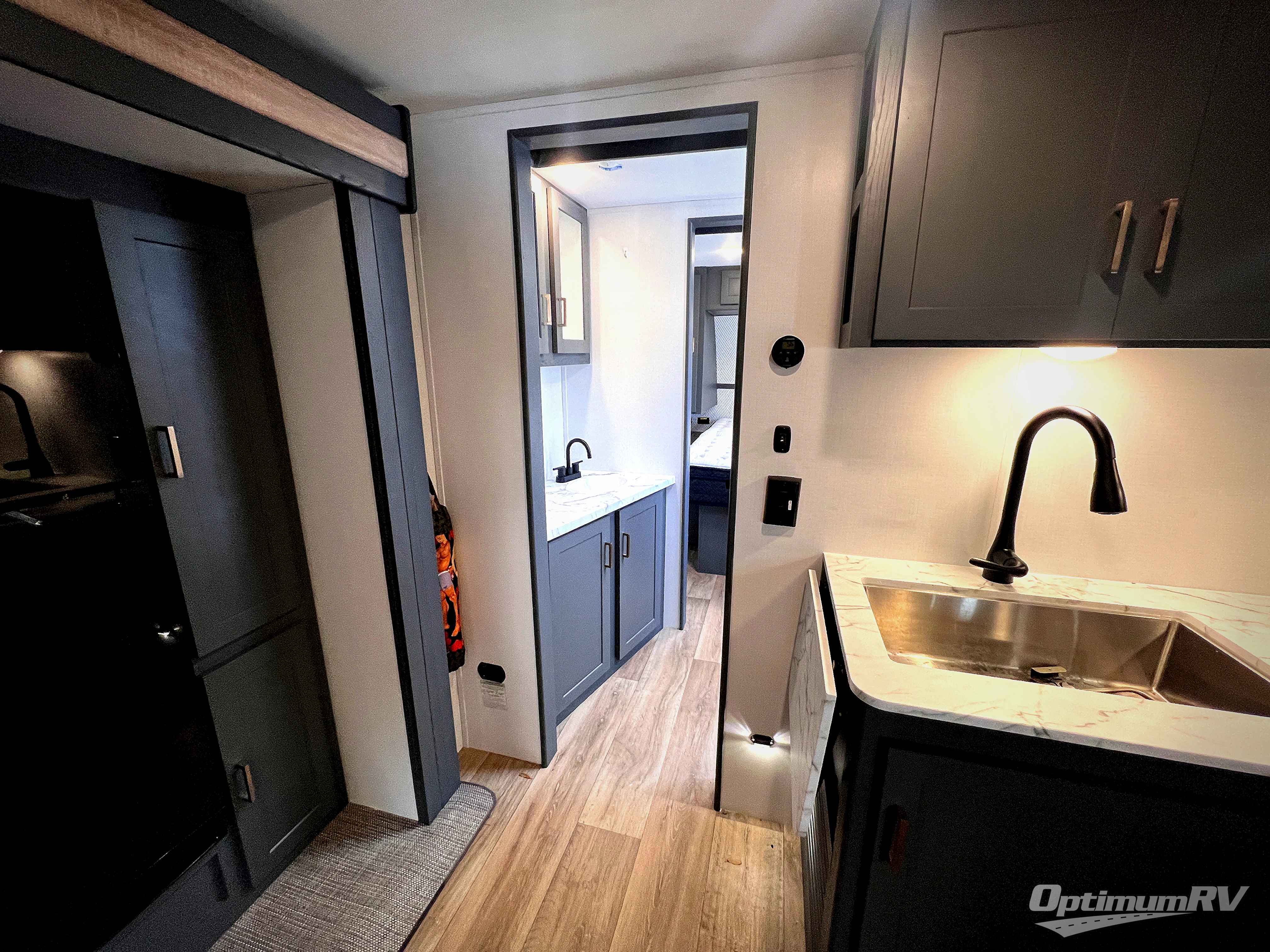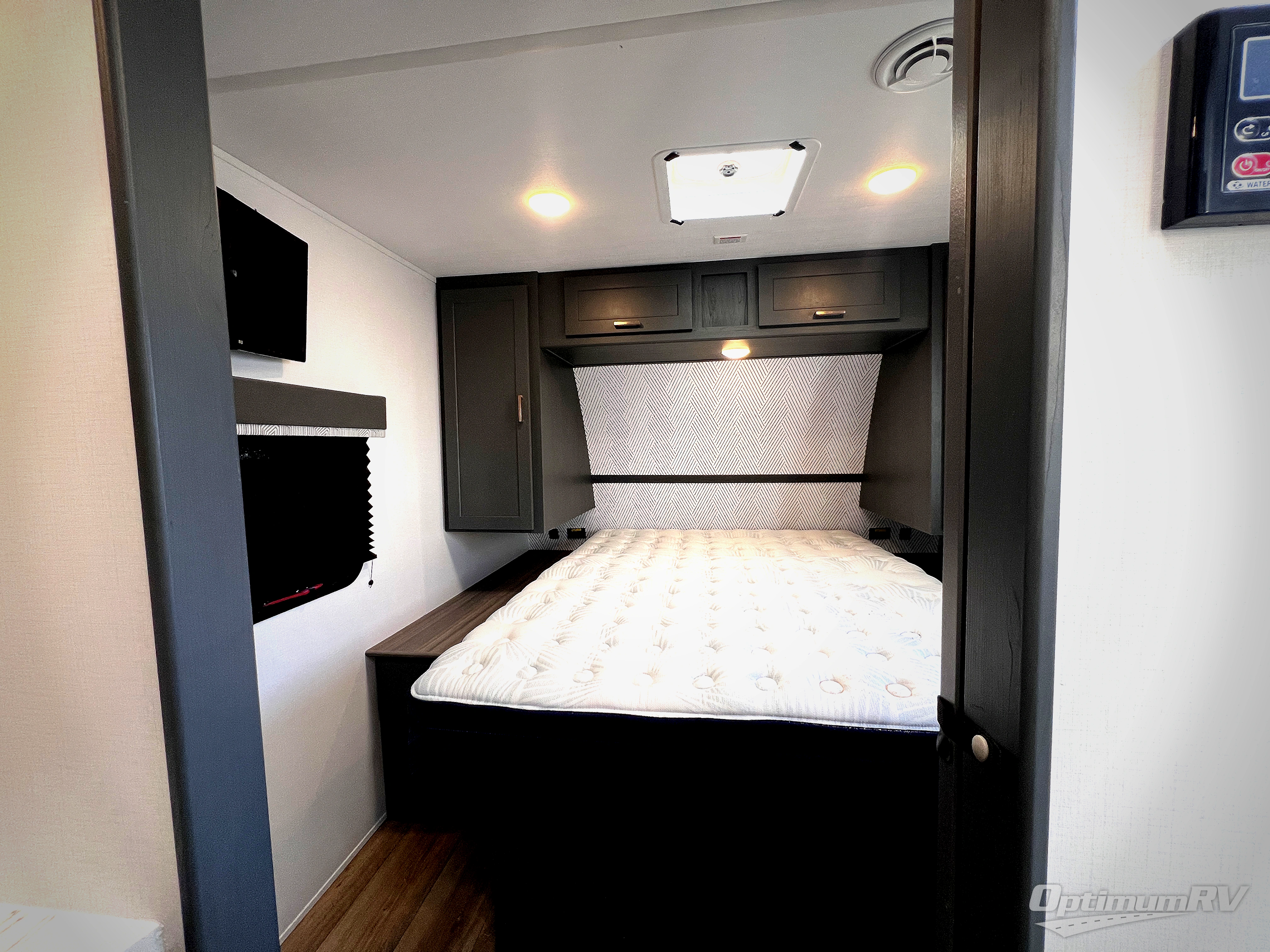 It won't be hard to find comfort in this dual entry travel trailer for six! You can enter in through the front private bedroom or the rear living area, and there is a large slide out for added space to move about. Spend your evenings on the tri-fold sofa across from the LED TV, around the U-shaped dinette, or outside under the 19' power awning with LED lights. You might even like to add the optional theater seating in place of the sofa for more comfort! The walk-through bath will provide easy access for everyone, and the front master bedroom is sure to feel just like home with its queen bed and dual wardrobes!
