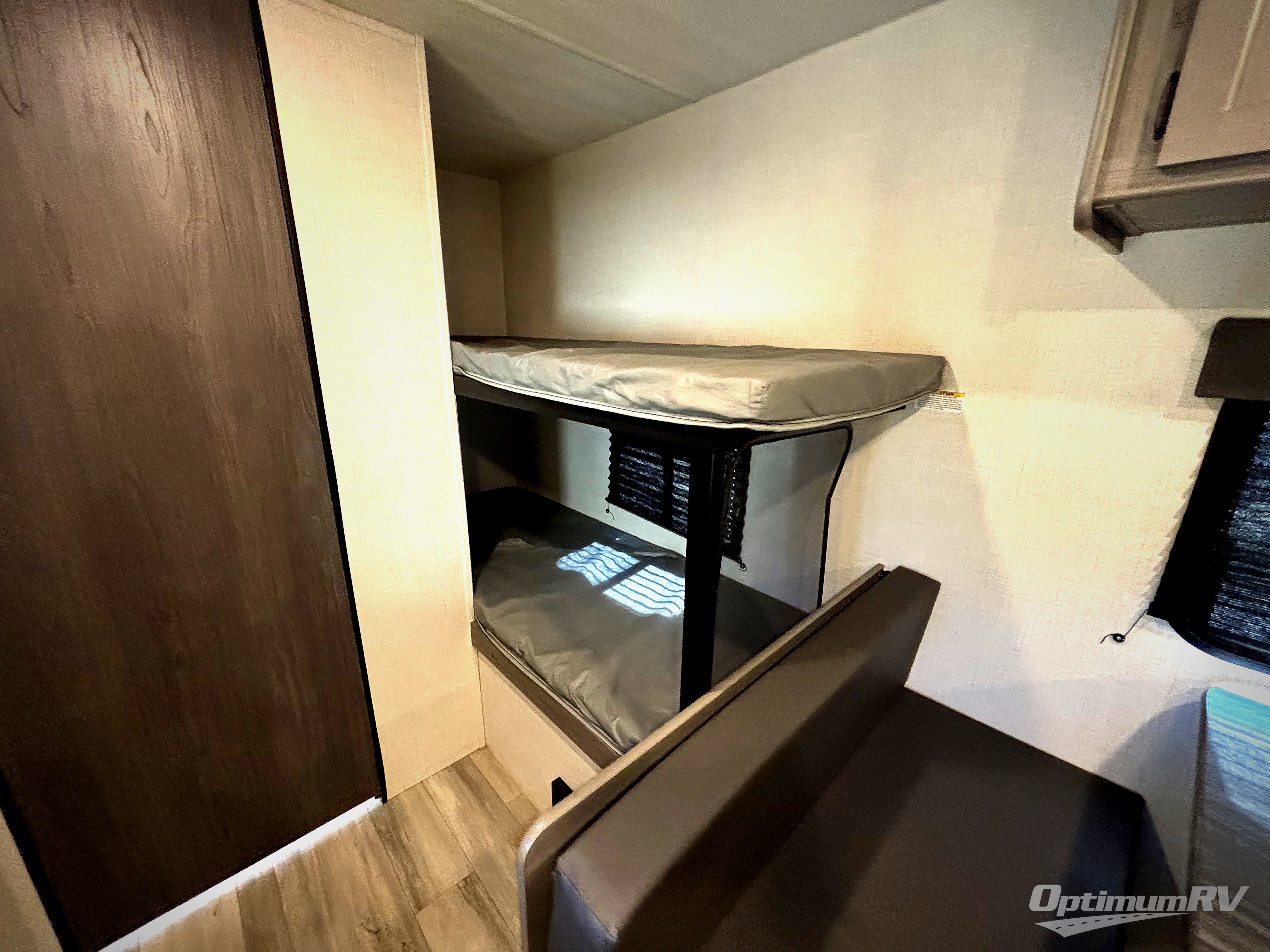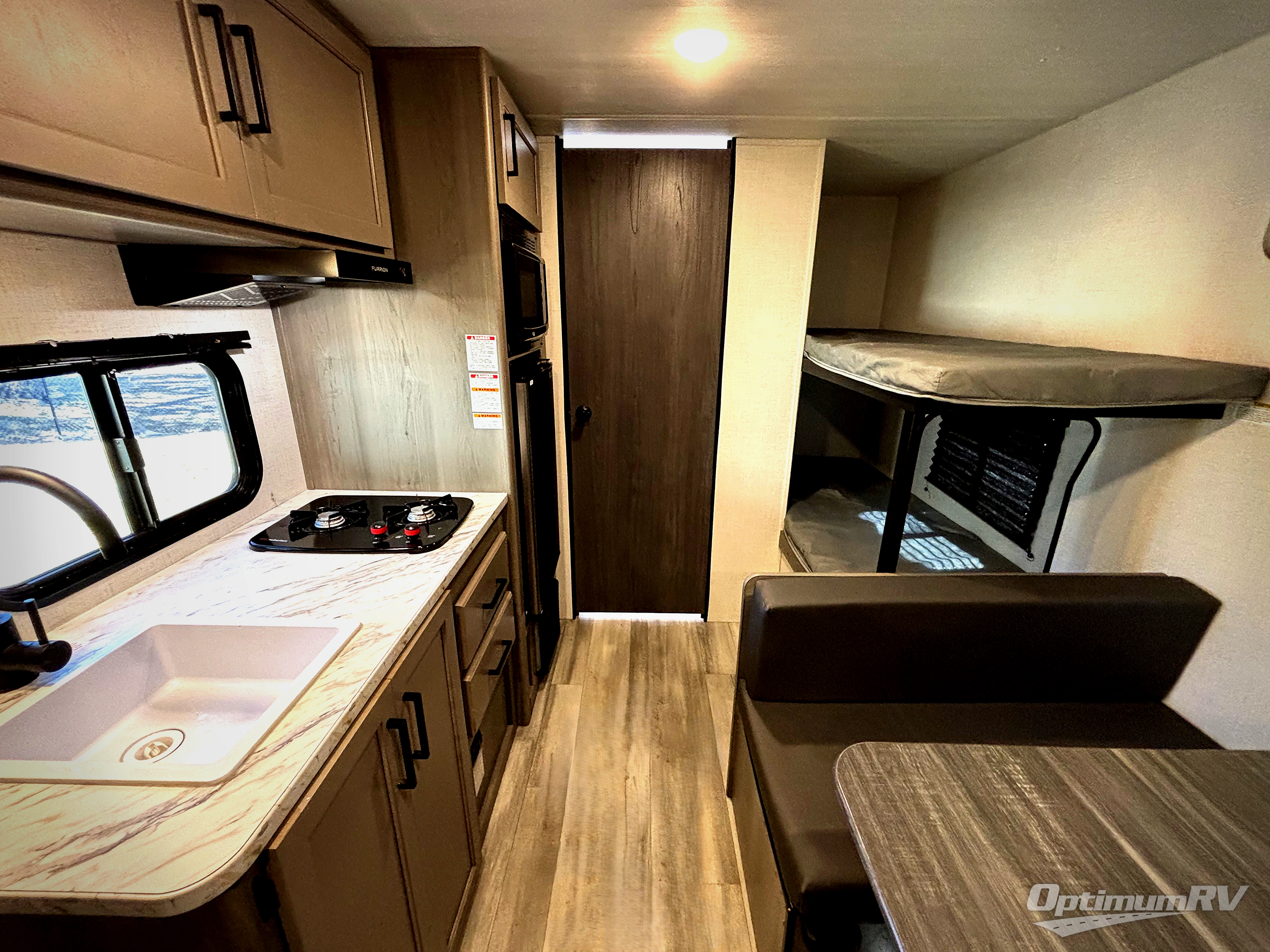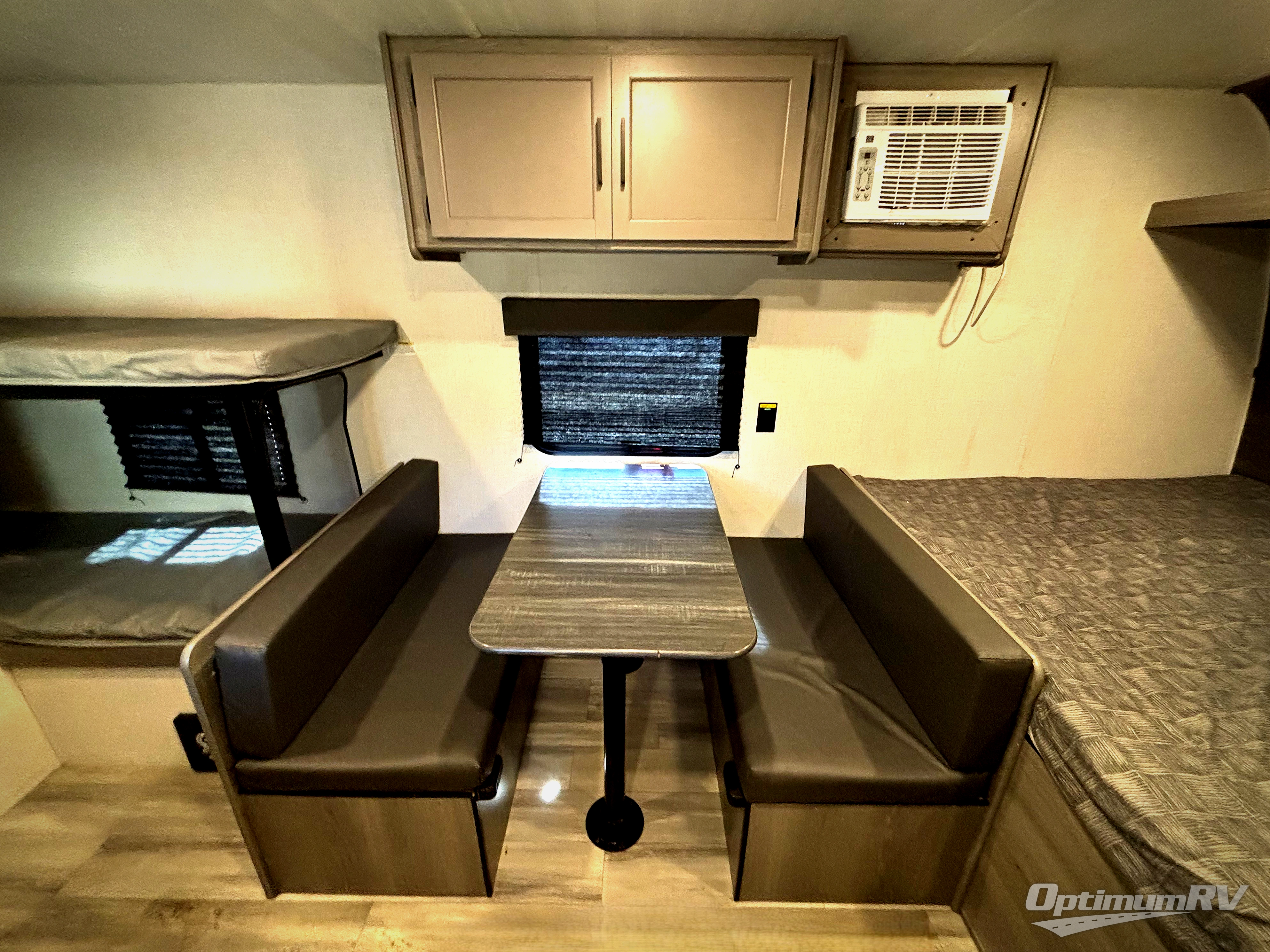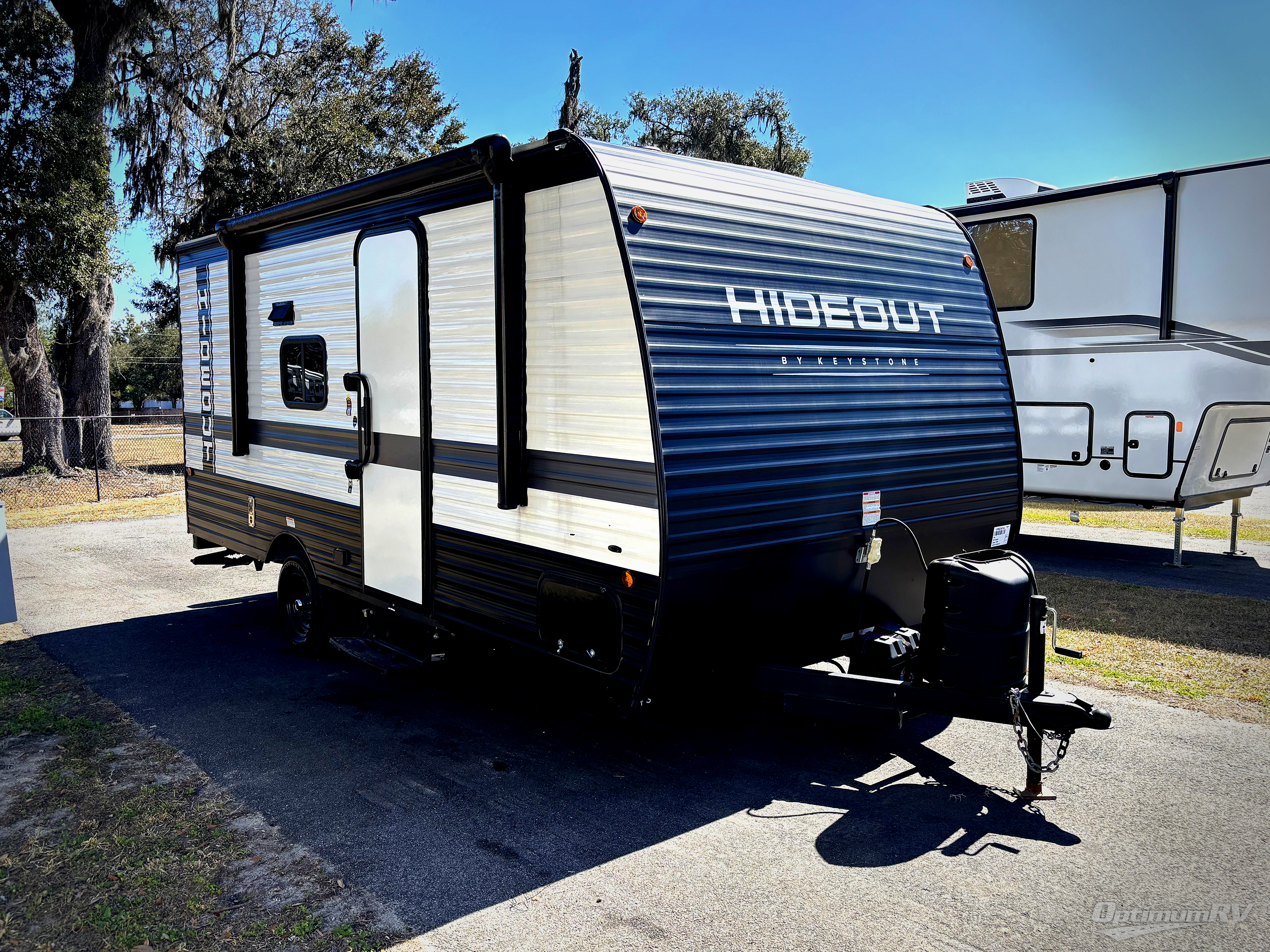 Open your horizons with the Hideout Sport Single Axle travel trailers by Keystone. They are compact, convenient, and lightweight; everything you're looking for in an RV! Each model features an aluminum exterior, tinted safety glass windows, and an I-beam frame with stamped steel cross-members and outriggers for added support. The interior includes blackout night shades for added privacy and real wood doors and drawers that will give a more at-home touch. The Girard tankless water heater is a feature you won't want to camp without, and the LED lighting will keep your space bright and open!