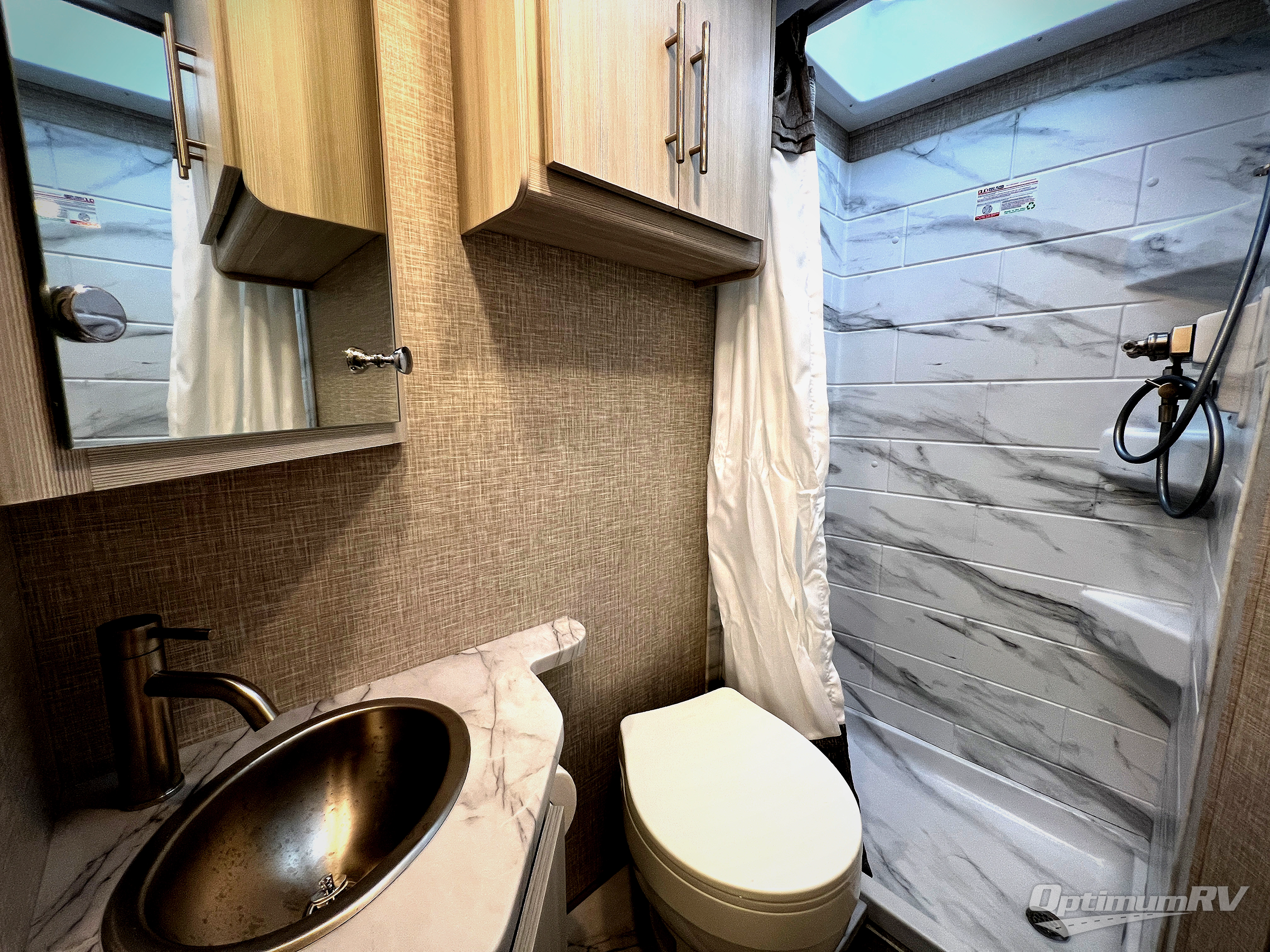 You can tour a local winery or trek up north to find a cozy and secluded camping spot with this Compass AWD Class B+ gas motorhome! All of your needs will be met with the excellent features and amenities included on this coach, like the full bathroom complete with a 24" x 32" shower, three robe hooks, a shower skylight, a foot-flush toilet, and a power bath vent. The kitchen is ready to help you make mobile meals, and the 68" Dream Dinette is the perfect place for eating those meals or playing a game later on. At the dinette table top, you'll find a wireless phone charger with USB plug so that you can charge your phones. There is a privacy curtain that sections off the flip-up RV queen bed, and you'll also find a 32" TV in the bedroom. The second 32" TV is located out in the main living area for everyone else to watch.