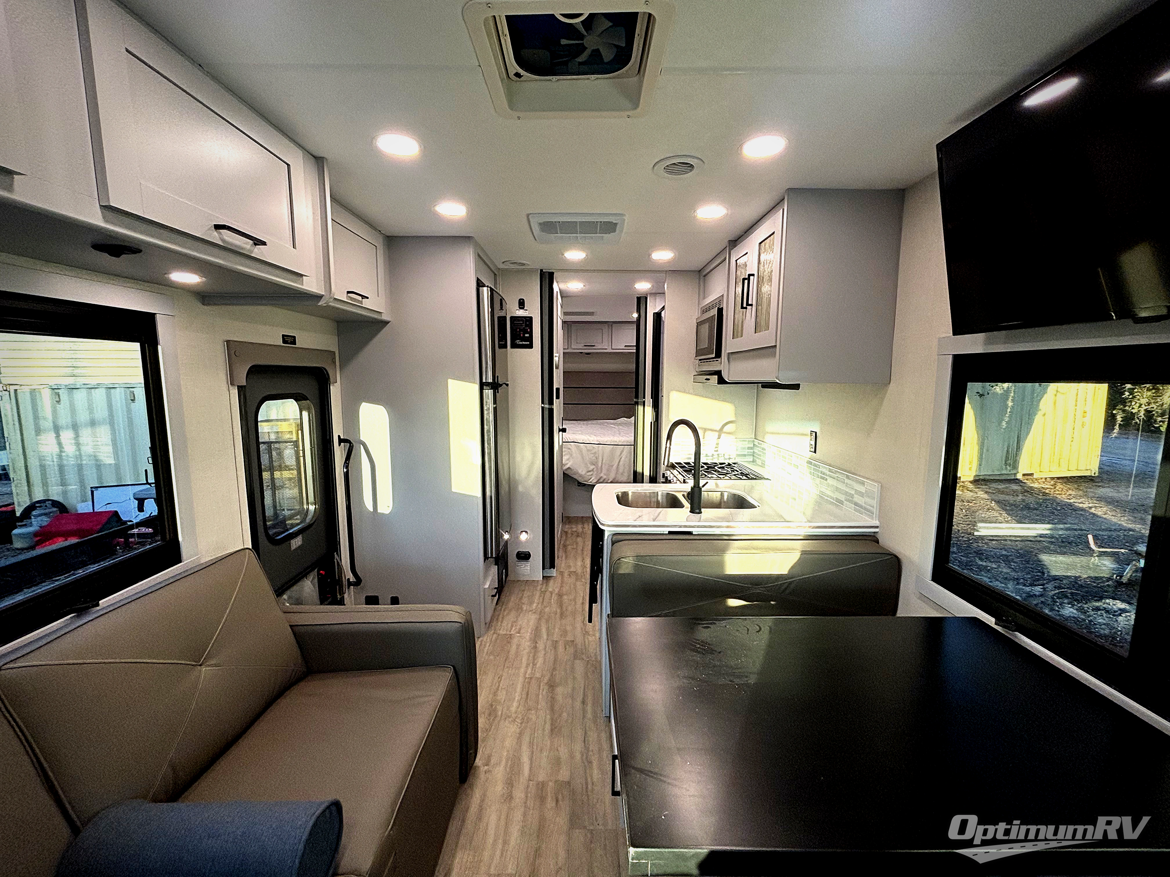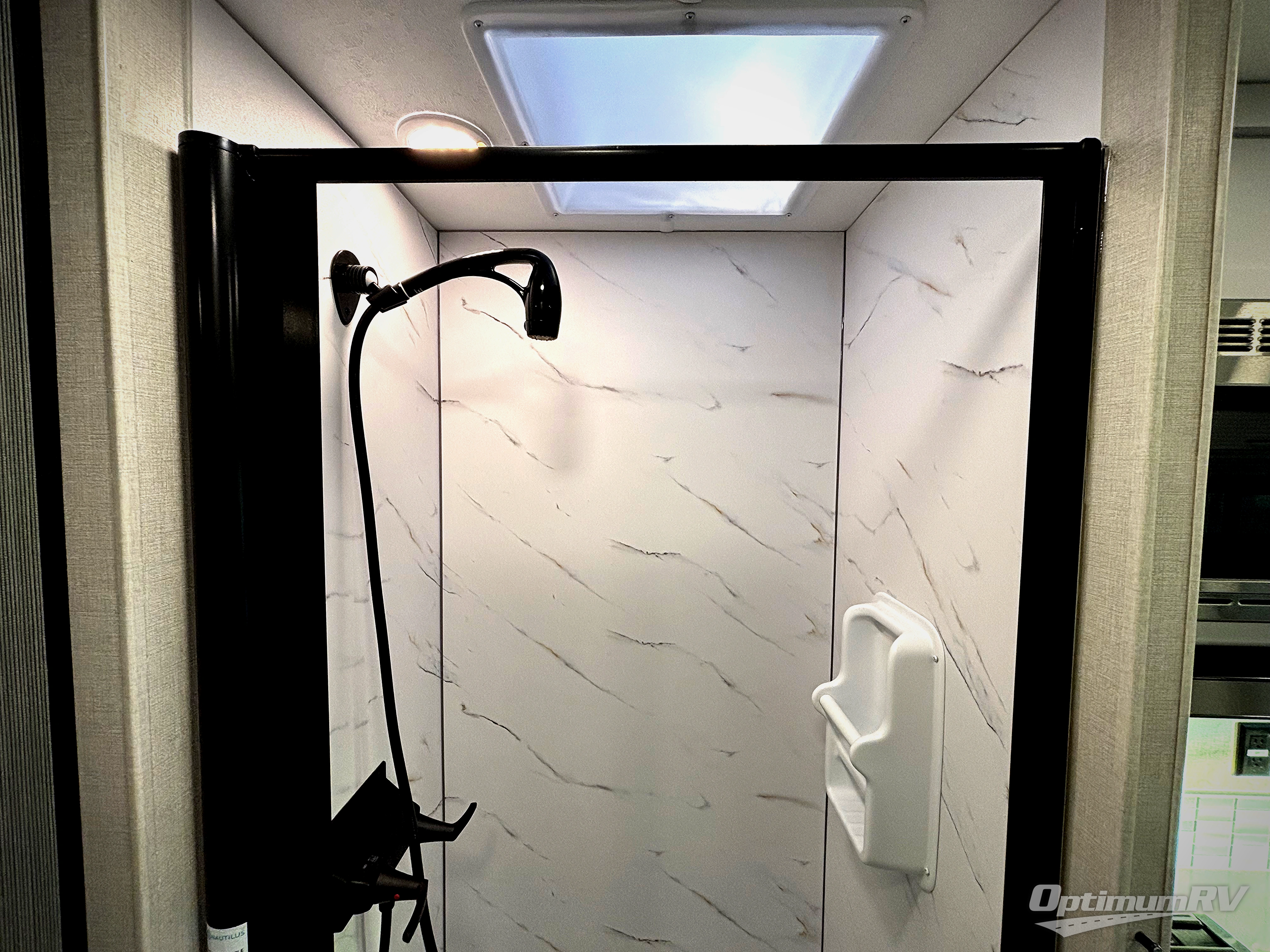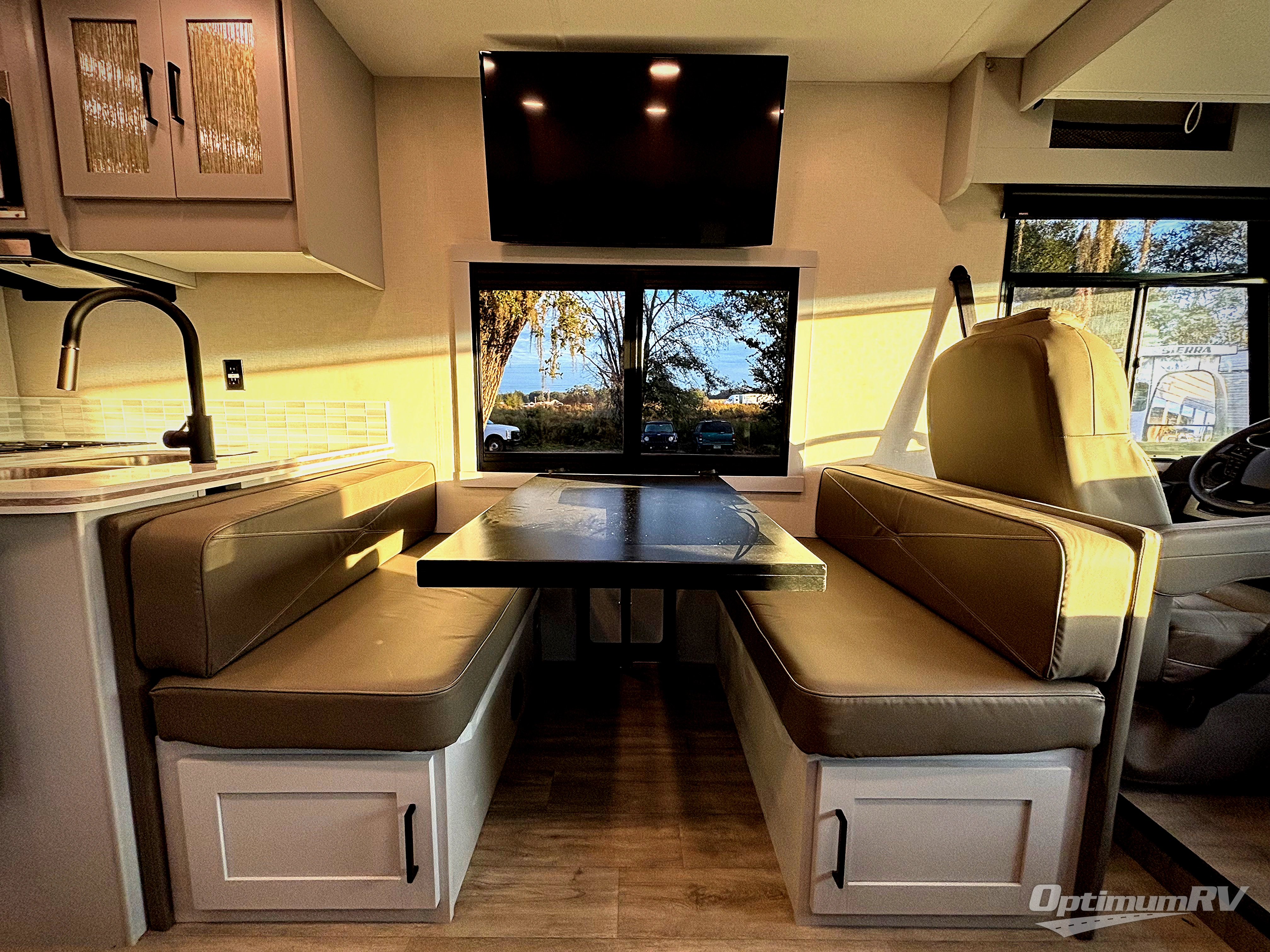 Live your best life on the road with this motorhome! The rear private bedroom has a 60" x 74" queen bed to lay your head on at night with wardrobes on either side of it for your clothes. A separated bathroom makes it easy for one person to freshen up in the 24" x 32" shower while another uses the private toilet and sink. Enjoy home cooked meals while out on the road with the stainless steel three burner cooktop, the 12V stainless steel double door 10 cu. ft. refrigerator, and even the stainless steel microwave oven. Eat your meals, play card games, and even transform the 42" x 70" booth dinette into an extra sleeping space. The 63" sofa has storage below for an extra blanket or board games. If you need to get some work done while you're away then you will appreciate the computer work station with 12V, 110V, and USB outlets in front of the passenger chair!