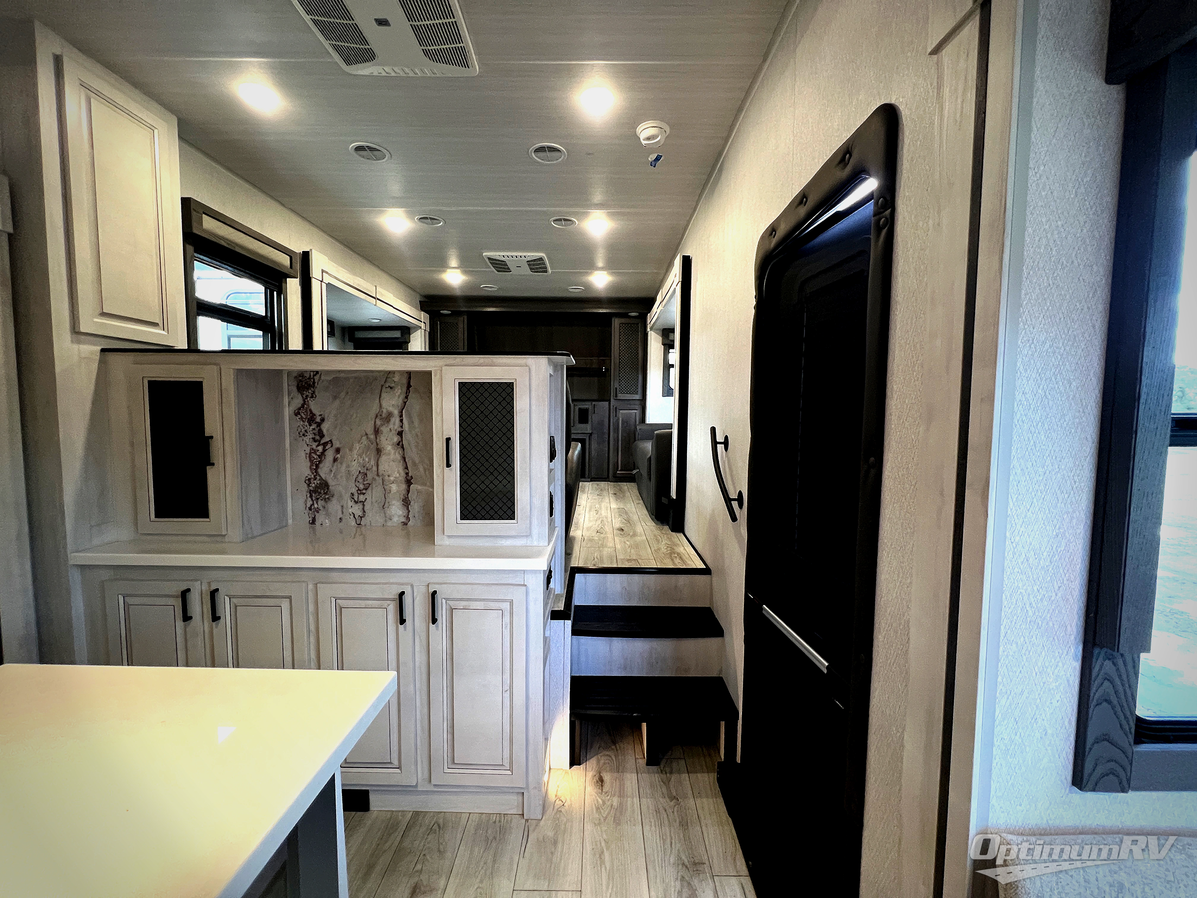 There is just too much luxury to name on the EAST TO WEST Ahara fifth wheel! These units are quite impressive, and once you see them, you'll know what we mean. The Ahara first grabs your attention with its hi-gloss gel-coated fiberglass exterior which showcases two power awnings with LED lights, an LP quick connect, an exterior cable/satellite hookup, and a universal all-in-one docking station. For towing, you'll find a MORryde CRE 3000 suspension, Dexter Gladiator thick-wall 7,000-LB axles with Nev-R-Adjust brakes, and preparations for a rearview camera. Traveling during all seasons is also made easy with the high-efficiency triple A/C system, a 40,000 BTU high-capacity furnace, a heated, insulated, and enclosed underbelly and dump valves with circulating heat, and Radiant Technology Composites insulation in the roof, front cap, and underbelly.