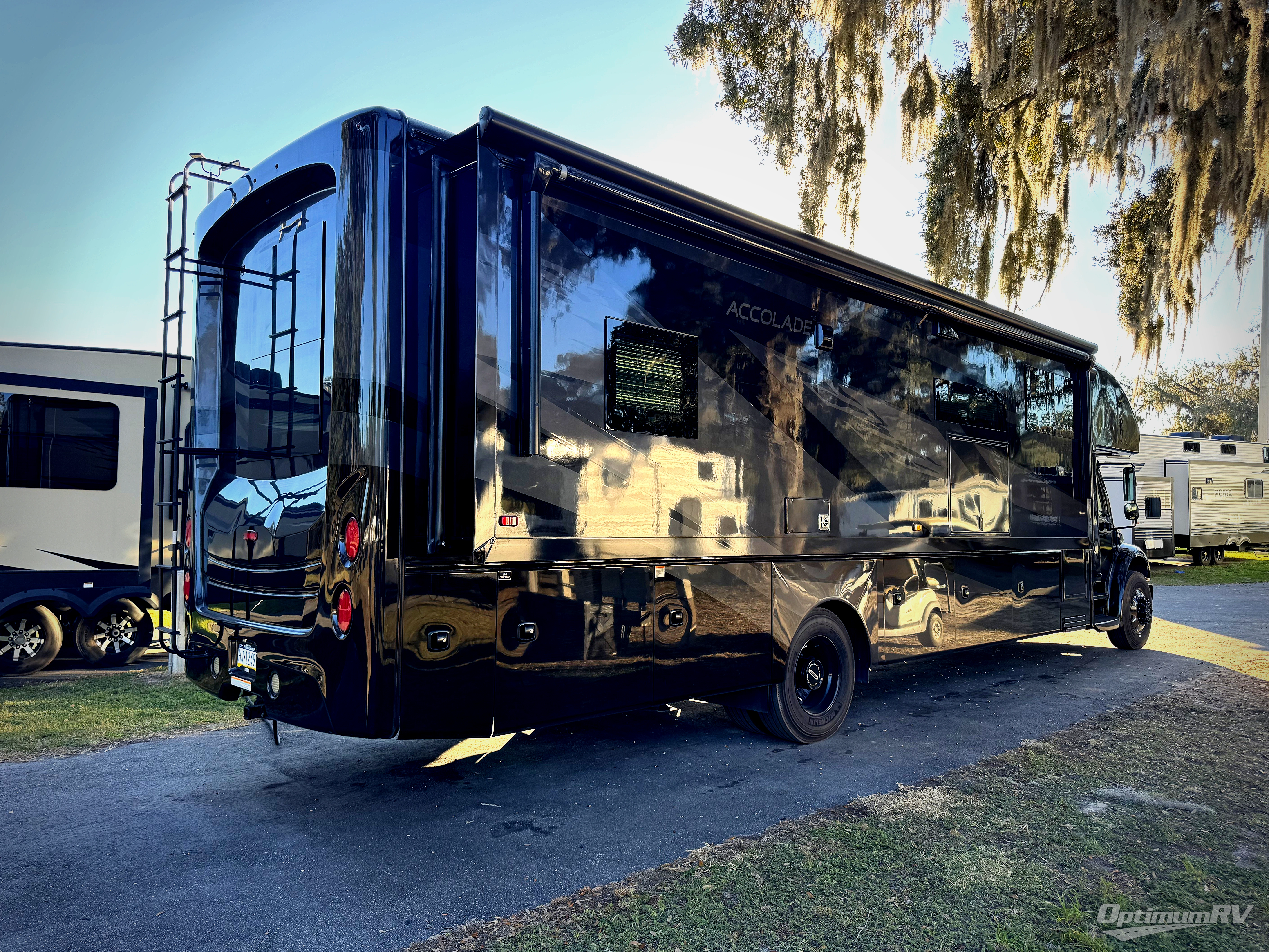 Strength and luxury come together perfectly to bring you the Accolade Super C diesel motorhome by Entegra Coach. The E-Z Drive Premier includes a computer-balanced driveshaft, a heavy-duty rear stabilizer bar, SACHS shocks, and more to provide a smooth drive. You'll be able to feel the power behind the Cummins ISB 6.7L diesel engine with 360 HP and 800 ft. lb. torque, plus each model sits on the advanced Freightliner S2RV chassis. The cockpit is every captain's dream with its Sony infotainment center, backup and side-view cameras, 6-way power driver and passenger seats, and much more. Step inside to find vinyl plank flooring, LED-lit, solid-surface kitchen countertops, and an electric fireplace to name a few comforts. The Accolade also includes many convenient amenities to make each trip enjoyable, like the water filtration system, the Winegard in-motion satellite dish, and the automatic hydraulic leveling jacks!