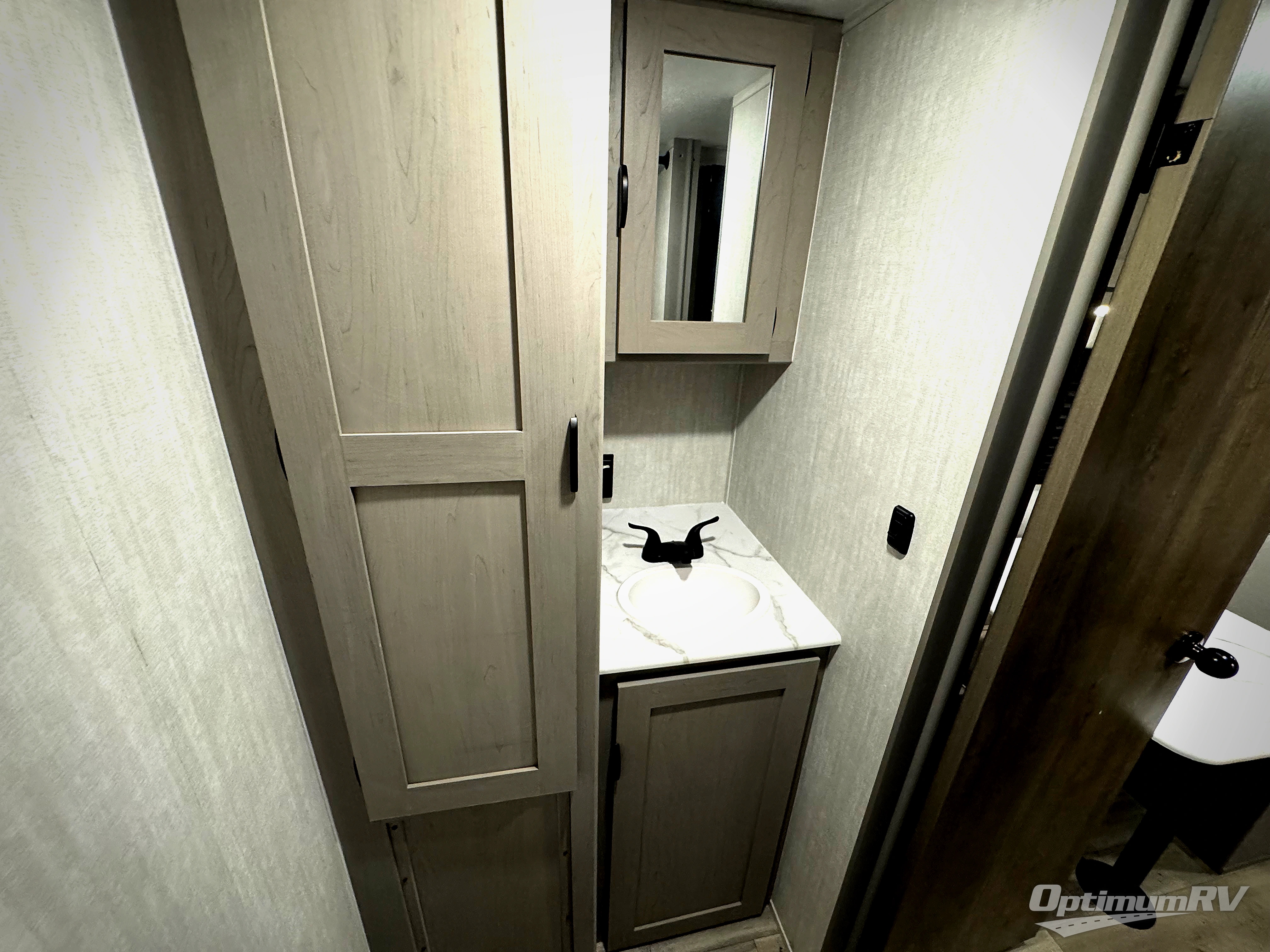 This Viking 3K Series is a cozy couples trailer or one perfect for a small family of three or four featuring a queen bed up front with overhead storage. The booth dinette also features additional storage and can be converted to sleeping space for one or two more depending on size. You will have an induction cooktop and sink with cover to provide a bit more counter space when the sink is not being used. A rear full bath including a 24" x 36" shower, toilet, and vanity with a sink, as well as an overhead medicine cabinet for your toothbrushes and other toiletries. On the outside, a 10' power patio awning will provide added protection from the sun and rain giving you added living space outside to enjoy with camp chairs. And, a front pass-through compartment for your outdoor camping gear, plus so much more!
