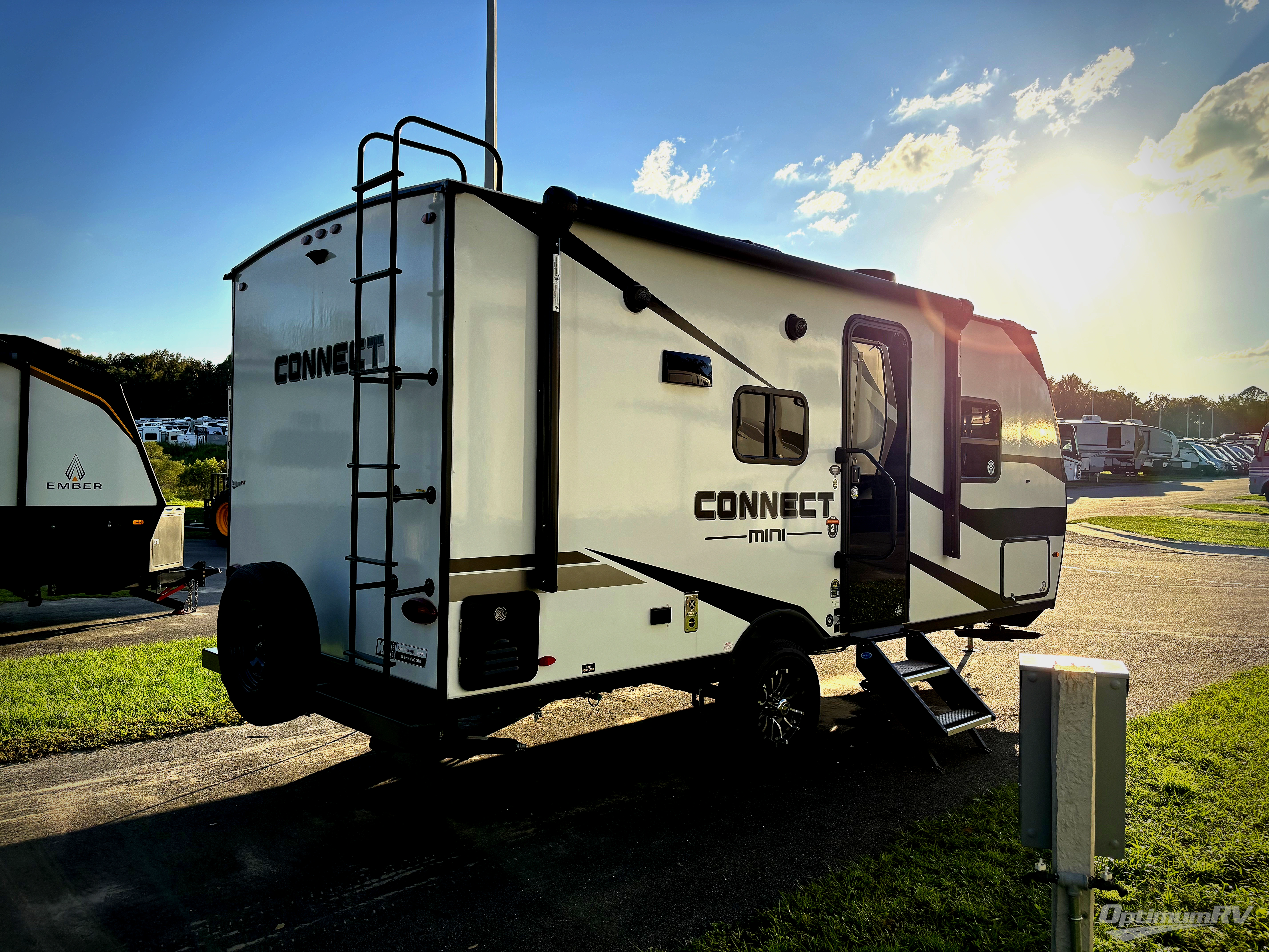 With any Connect Mini travel trailer by KZ, you will enjoy lightweight towing, interior comforts, and a price point you're sure to appreciate. Each model is constructed with durable 1-piece Tufflex material, 5/8" tongue and groove plywood flooring, and a molded fiberglass front cap with a windshield to let of your outdoor views in! You will love the look of the full glass friction hinged entry door, and the power awning with an LED light strip will provide a place to visit outdoors with friends and family. A hot and cold exterior shower also comes standard, along with nitrogen filled tires, a folding grab handle plus roof mounted solar prep and backup camera prep. Head inside to find residential grade linoleum, seamless countertops, roller shades, and painted hardwood cabinet doors. The 42,000 BTU tankless hot water heater will provide endless hot showers, and the low profile 13,500 BTU A/C will keep you comfortable during the summer!