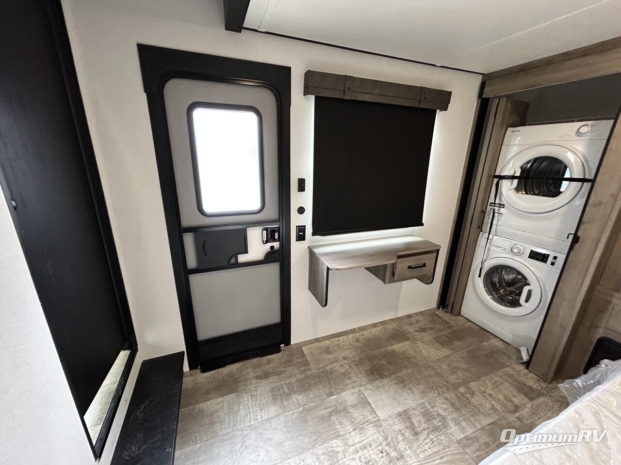 This is the perfect destination trailer for a larger group since it can sleep up to nine campers each night. The little ones will love the double loft areas with three bunk mats and storage space for their things, while you take the rear private bedroom. There is a king bed slide out here, along with a wardrobe/closet for your clothes, plus a second closet with the option to add washer and dryer prep. Everyone can meet in the middle living room to relax on the dual sofas or recliners across from the fireplace and entertainment center. Head to the front of the unit where you'll find the kitchen that includes ample counter space to prep meals, a residential style refrigerator and pantry for food storage, and a free-standing table to dine at. There is also a breakfast nook that overlooks the living area so you can visit with the cook and watch a movie at the same time!
