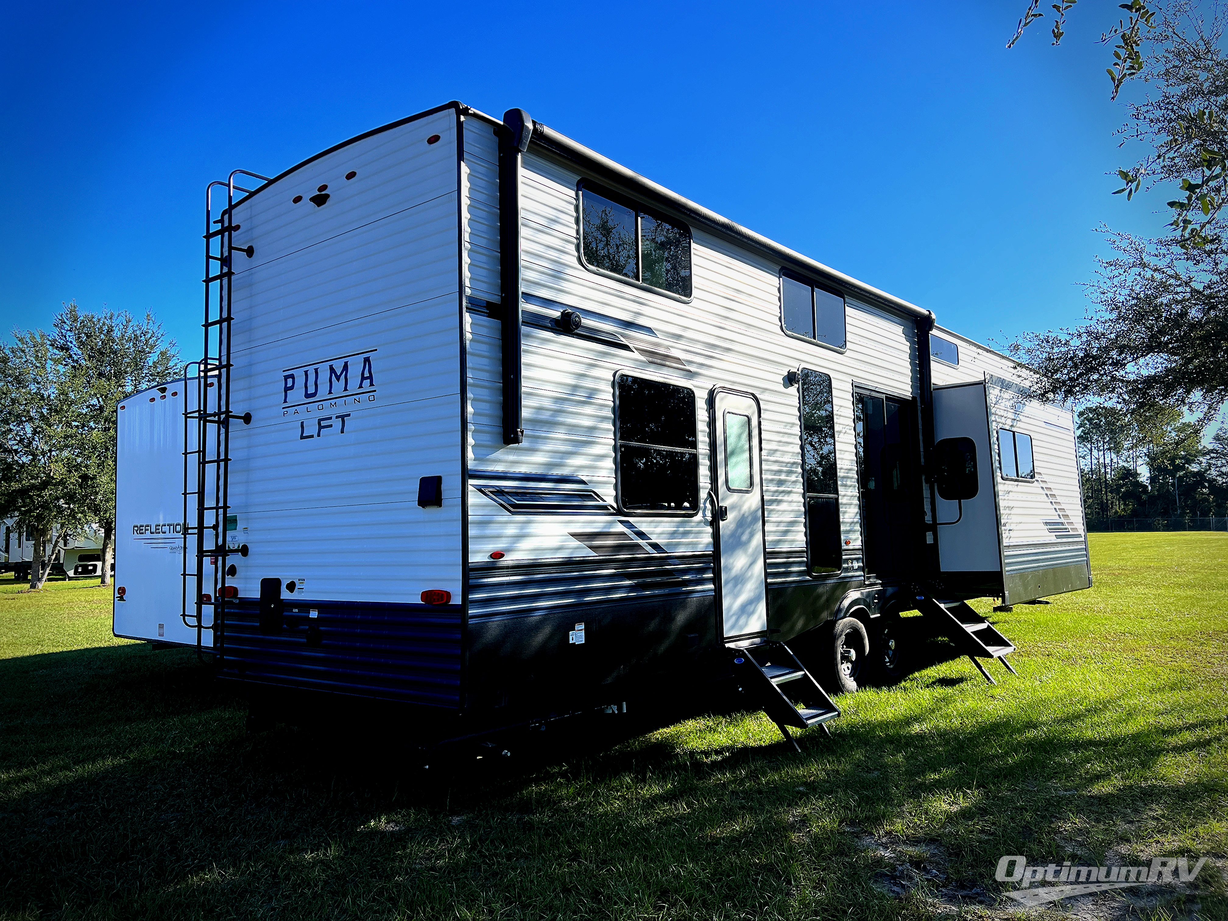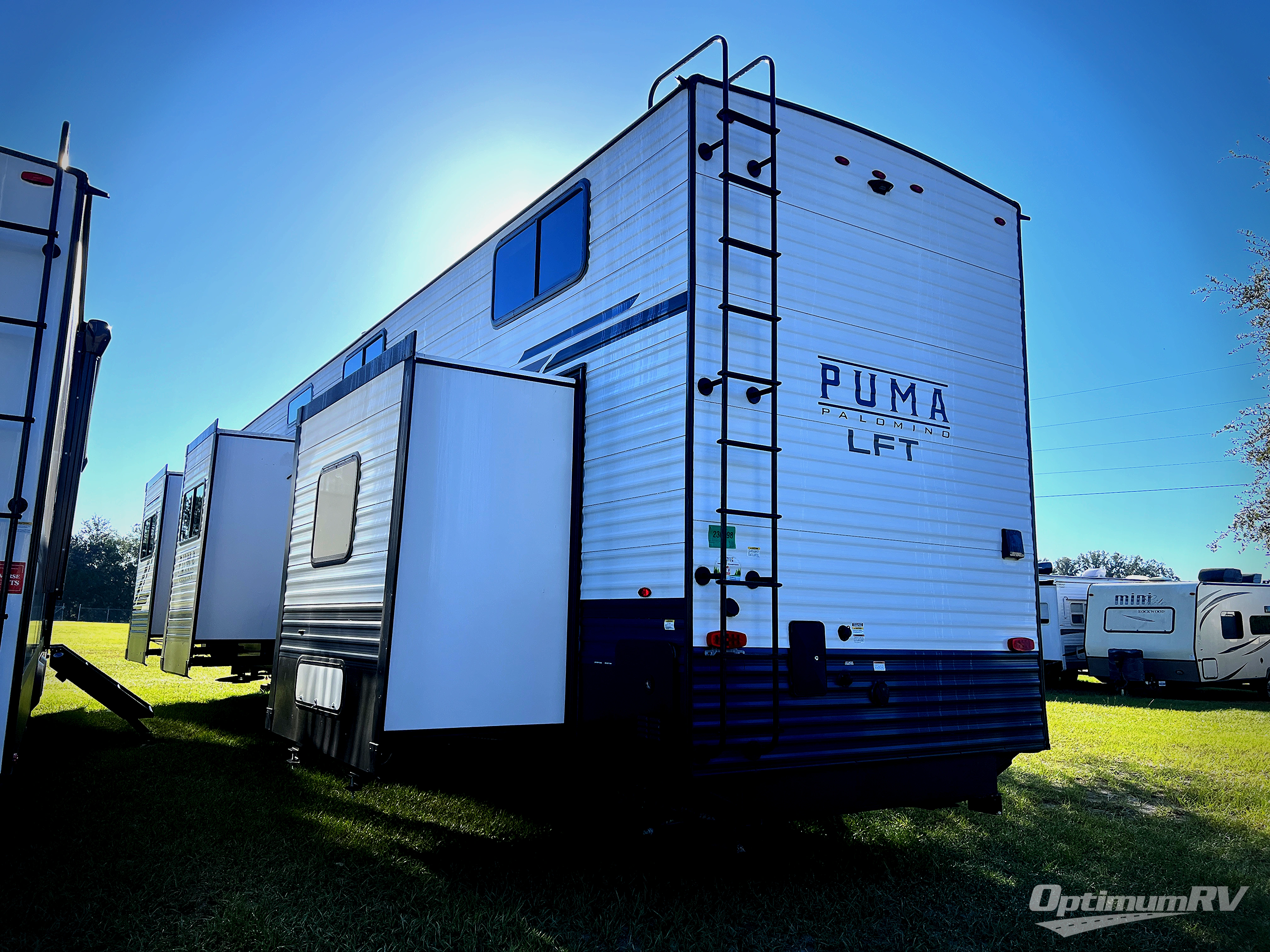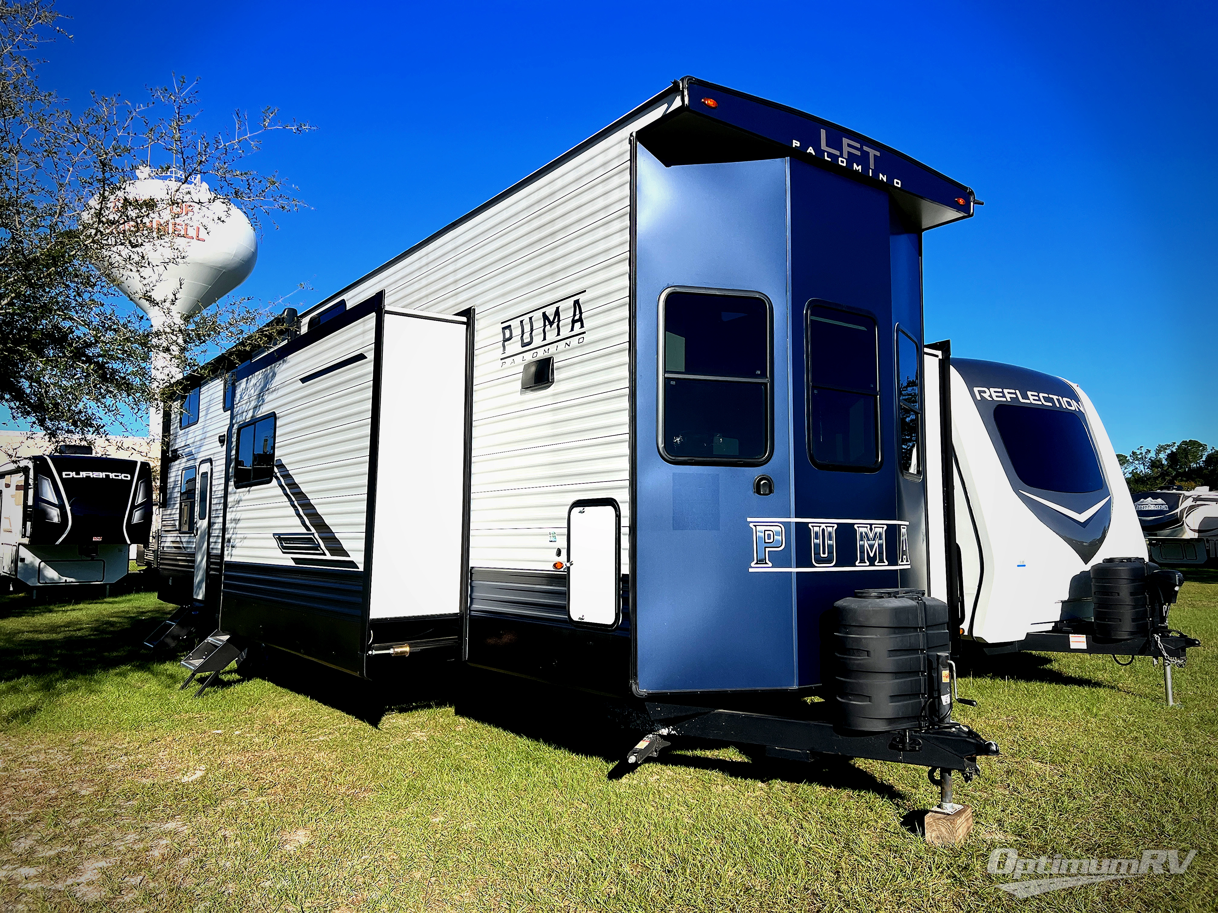 Each Puma Destination trailer by Palomino is designed to give you unforgettable getaways to the destination of your choice! The required Value Shopper Loft Package includes Congoleum designer linoleum, night roller shades, LED lighting, and a 24" stainless steel oven with a four burner stove so you can make meals just like you would at home. The tankless water heater is another feature you won't want to camp without, and there is WiFi prep, solar prep, plus optional washer and dryer prep for the option to further customize your trailer. An outside shower is included with the required Loft Package, along with two exterior speakers, solid surface countertops, four stabilizer jacks, and more!