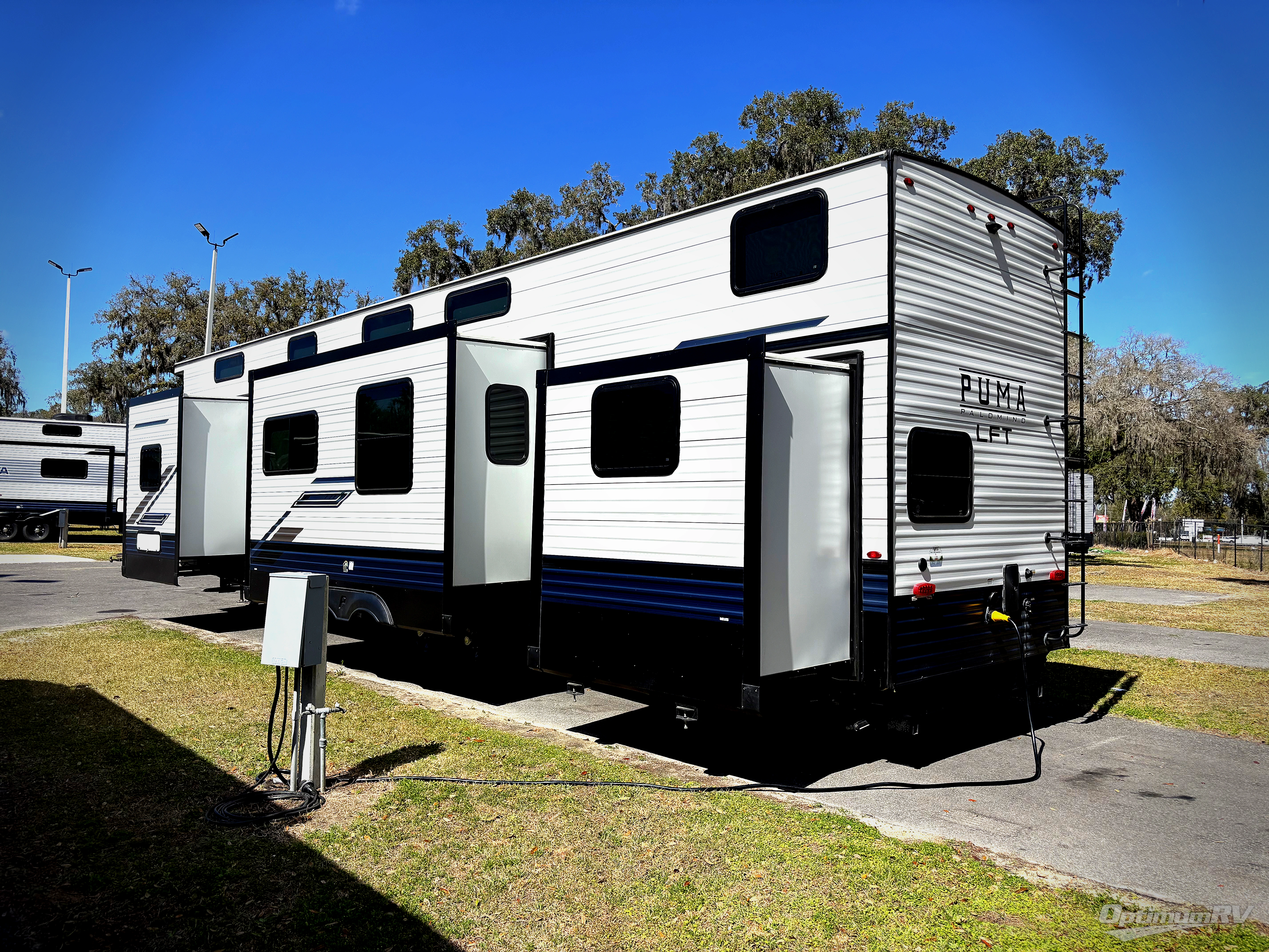 Each Puma Destination trailer by Palomino is designed to give you unforgettable getaways to the destination of your choice! The required Value Shopper Loft Package includes Congoleum designer linoleum, night roller shades, LED lighting, and a 24" stainless steel oven with a four burner stove so you can make meals just like you would at home. The tankless water heater is another feature you won't want to camp without, and there is WiFi prep, solar prep, plus optional washer and dryer prep for the option to further customize your trailer. An outside shower is included with the required Loft Package, along with two exterior speakers, solid surface countertops, four stabilizer jacks, and more!