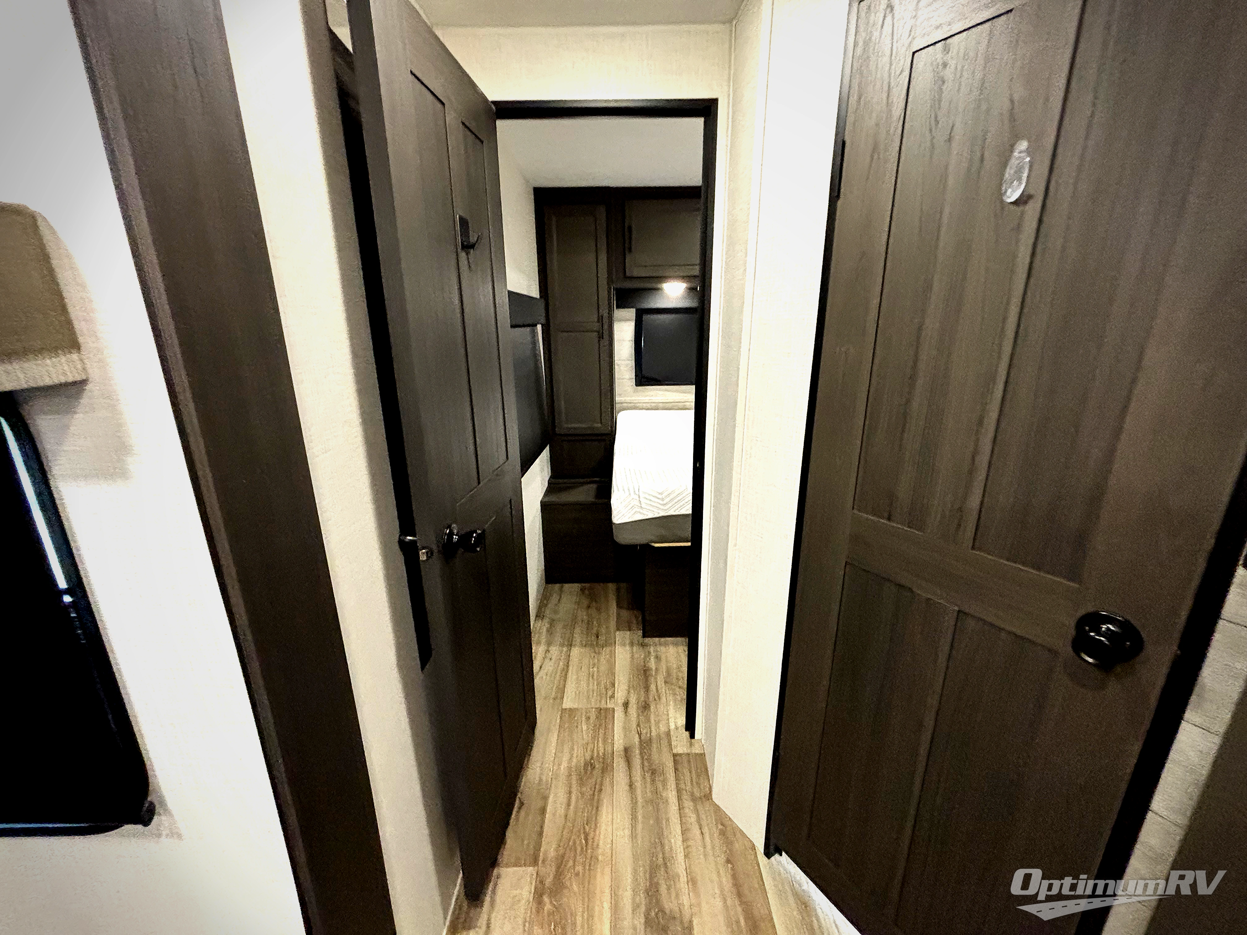Every Venture RV SportTrek lightweight travel trailer is constructed to offer peace of mind and the comforts of home! Their purposeful residential kitchens are packed with handy features like a Furrion oven and three burner cooktop, a large stainless steel sink with a cover and dish drying rack, plus a 12V refrigerator. You will find plenty of storage throughout, including Safe-Tek hidden storage with a charging center and StorMore nightstands on either side of the bed behind the full-length closets. And the magnetic slam-latch baggage doors and spacious pass-through storage area will hold your outdoor gear in place. They even come with a hot and cold exterior shower and SporTrek's Weather Shield which includes a forced air heated and enclosed underbelly, high output A/C ducting, and more features that will let you extend your camping season. You will also love the new residential upgraded furniture, Serta memory foam mattress, barn style passage doors, and many more comforts!