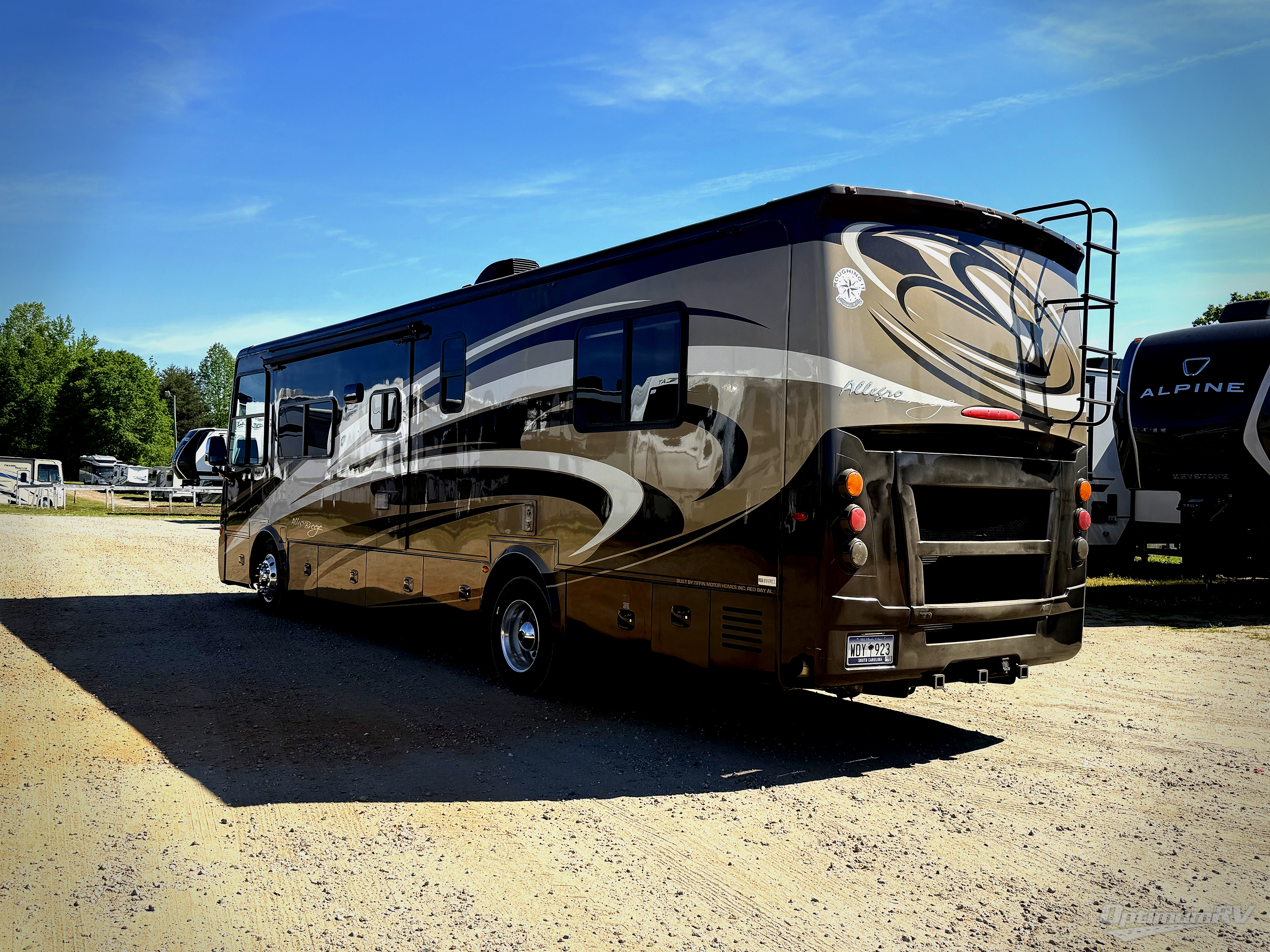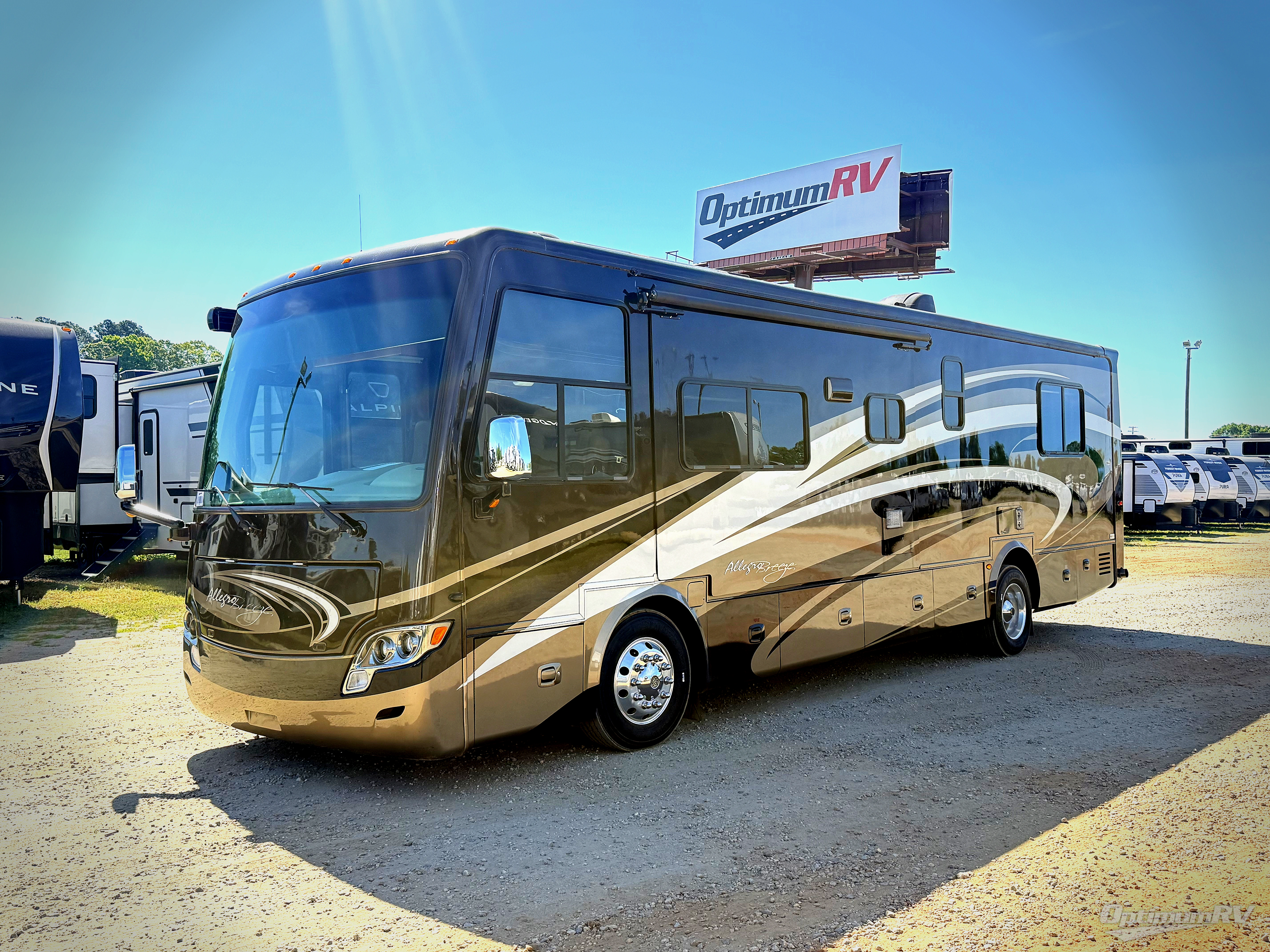 The Tiffin Allegro Breeze 32 BR class A diesel motorhome features wide open living space thanks to two slides that are opposite each other.