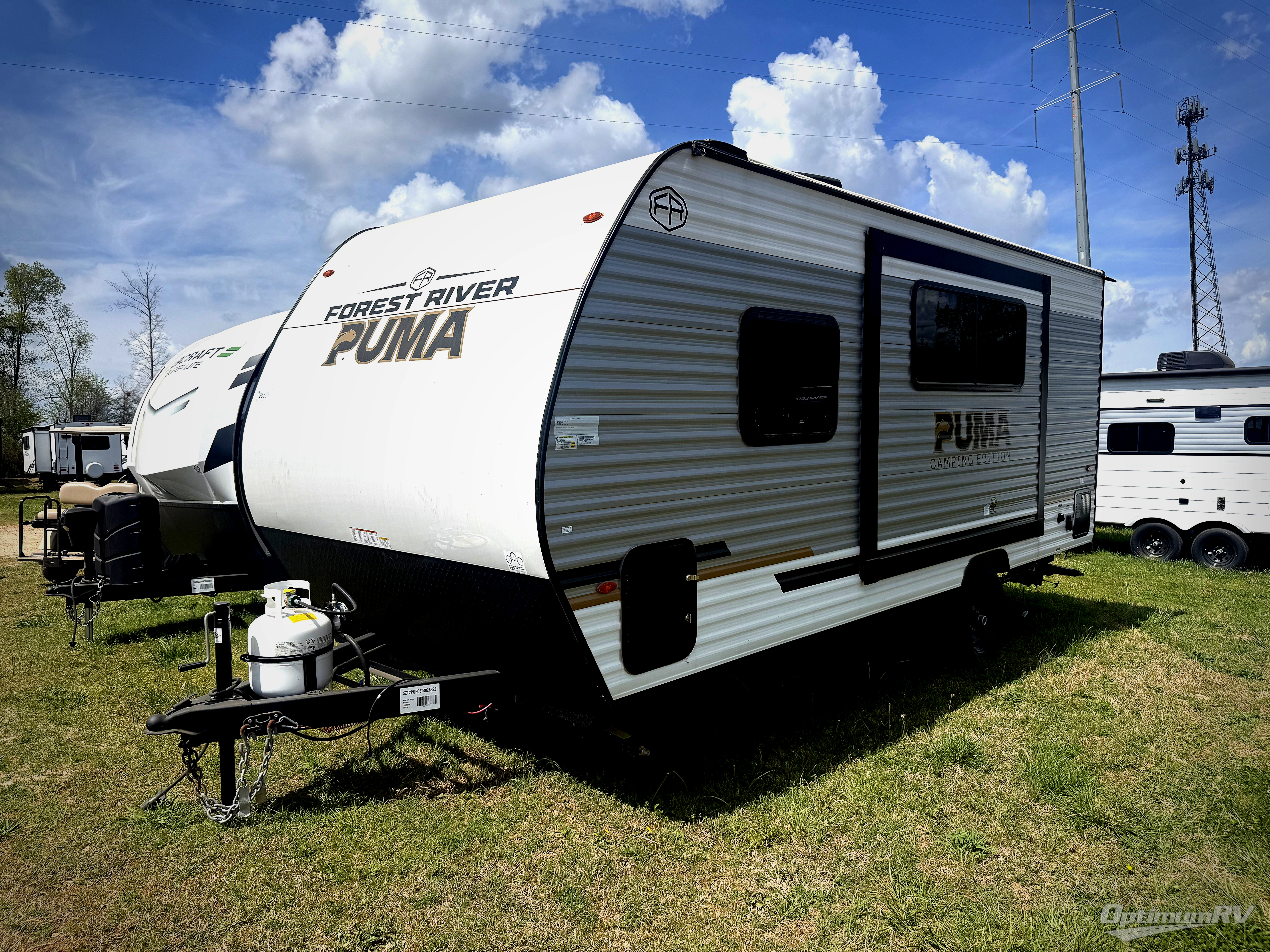 The Puma Camping Edition by Forest River offer an affordable travel trailer for rookie campers or seasoned RVers! They are built with 5/8" tongue and groove plywood flooring and a front diamond plate for added protection. There are also exterior magnetic baggage door latches, back up camera prep, a battery disconnect. Head inside to find Thermofoil countertops with a smooth drop edge, bedroom USB ports and outlets, and pleated shades in the living room.