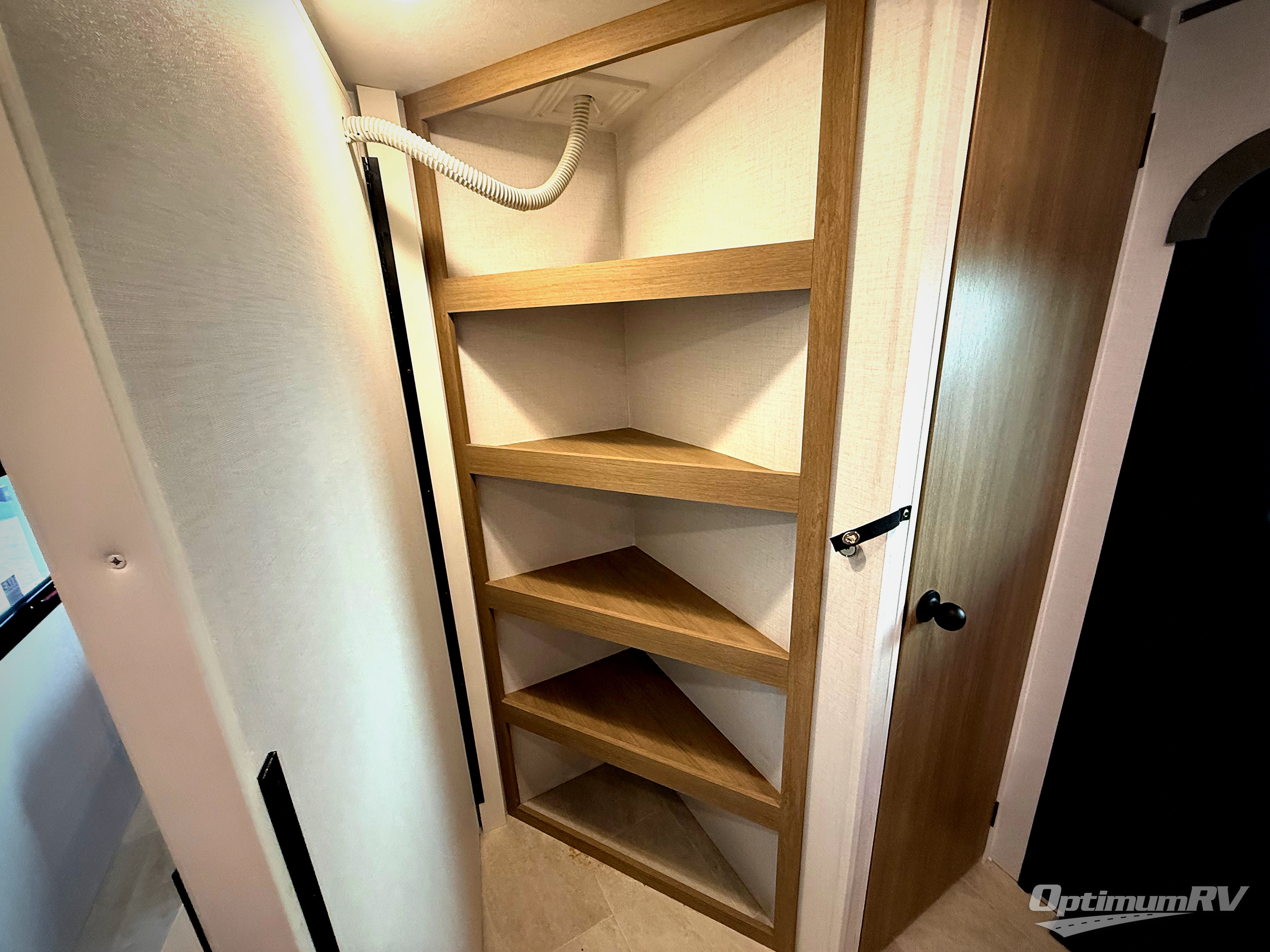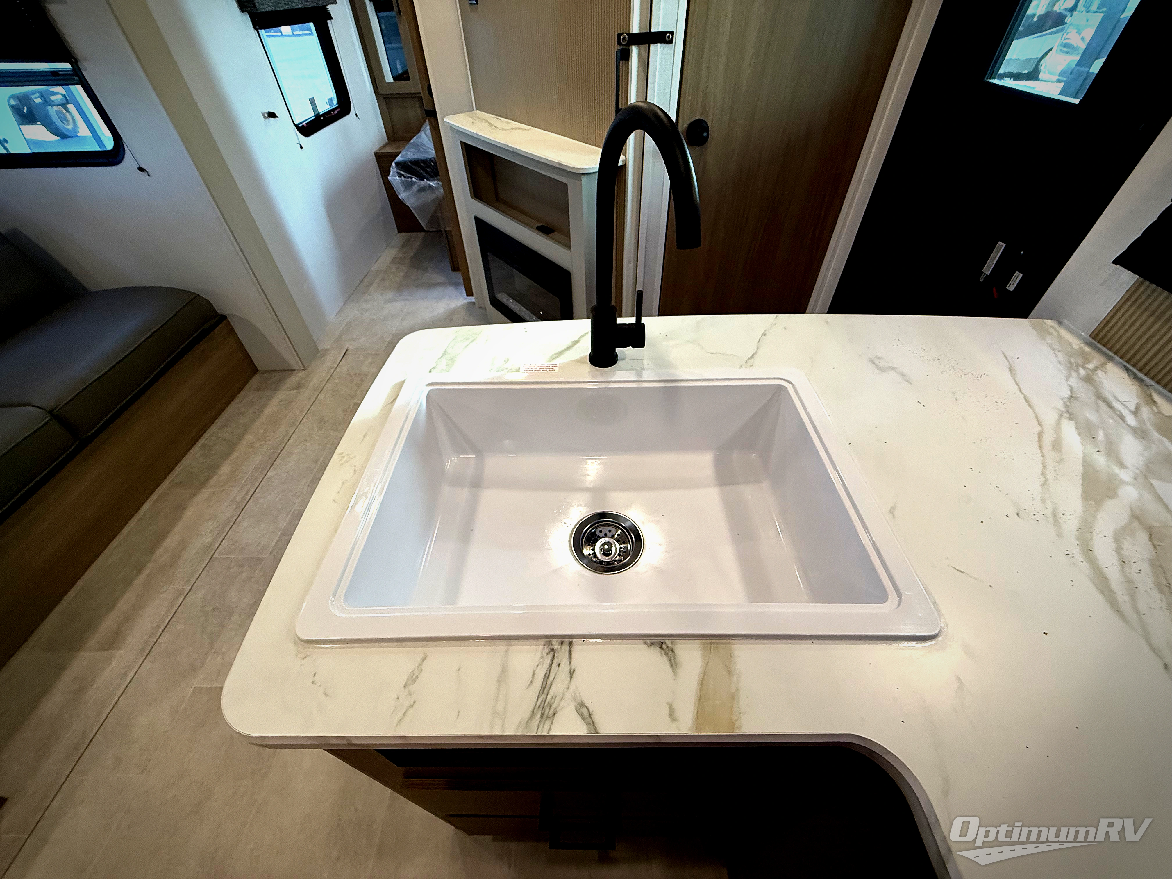 This travel trailer is one your whole crew will love! There is a rear private bunkhouse with double-size bunks for the little ones, a front private bedroom for you, and a booth dinette and jackknife sofa for even more sleeping space! The chef has their choice to cook indoors on the three burner range and microwave oven, or head outdoors to cook on the outdoor kitchen! The full bath will let everyone clean up each day, and the fireplace and large slide out will make your space feel more like home. And don't overlook the pass-through storage and 16' power awning with LED lights!