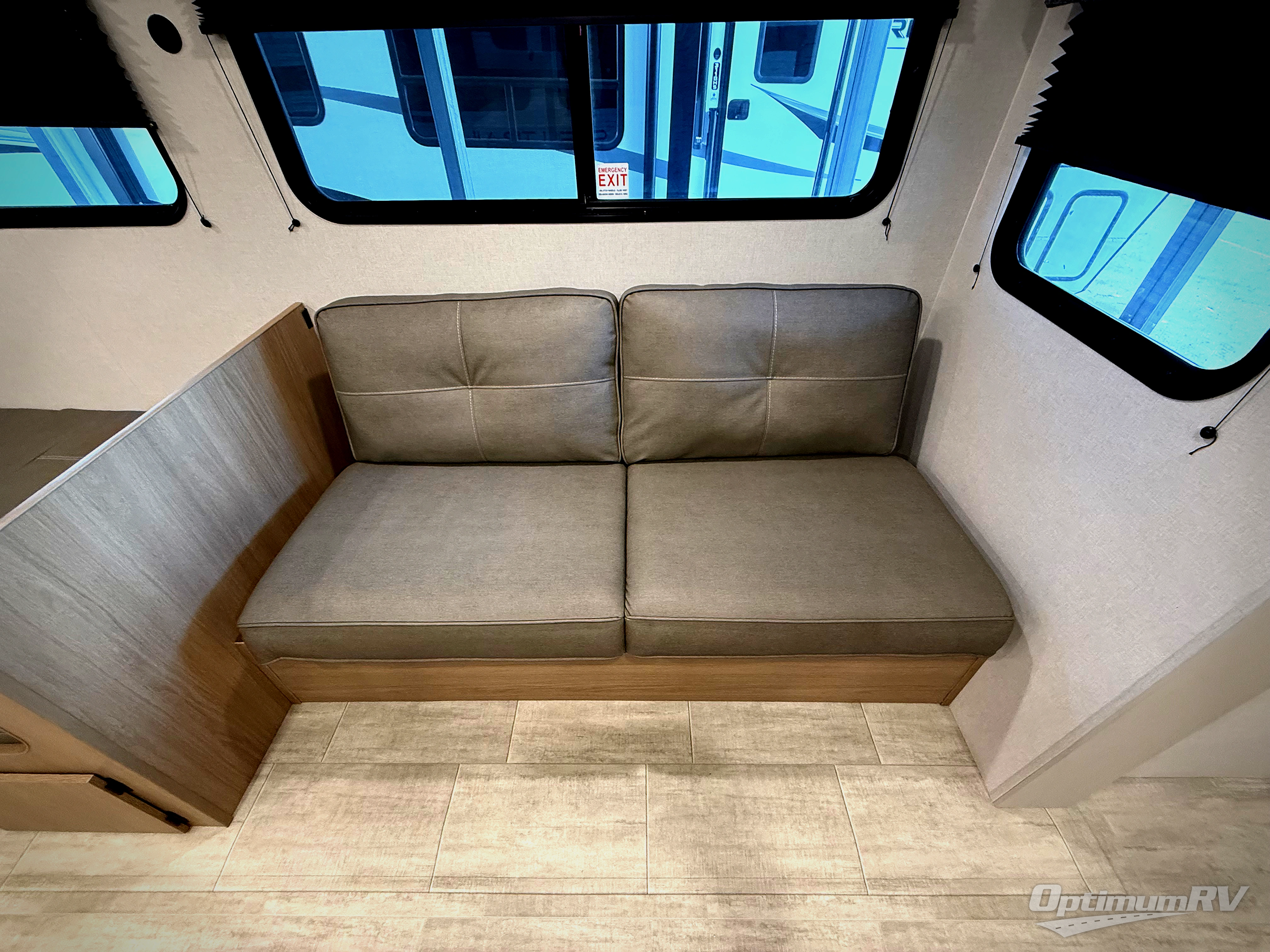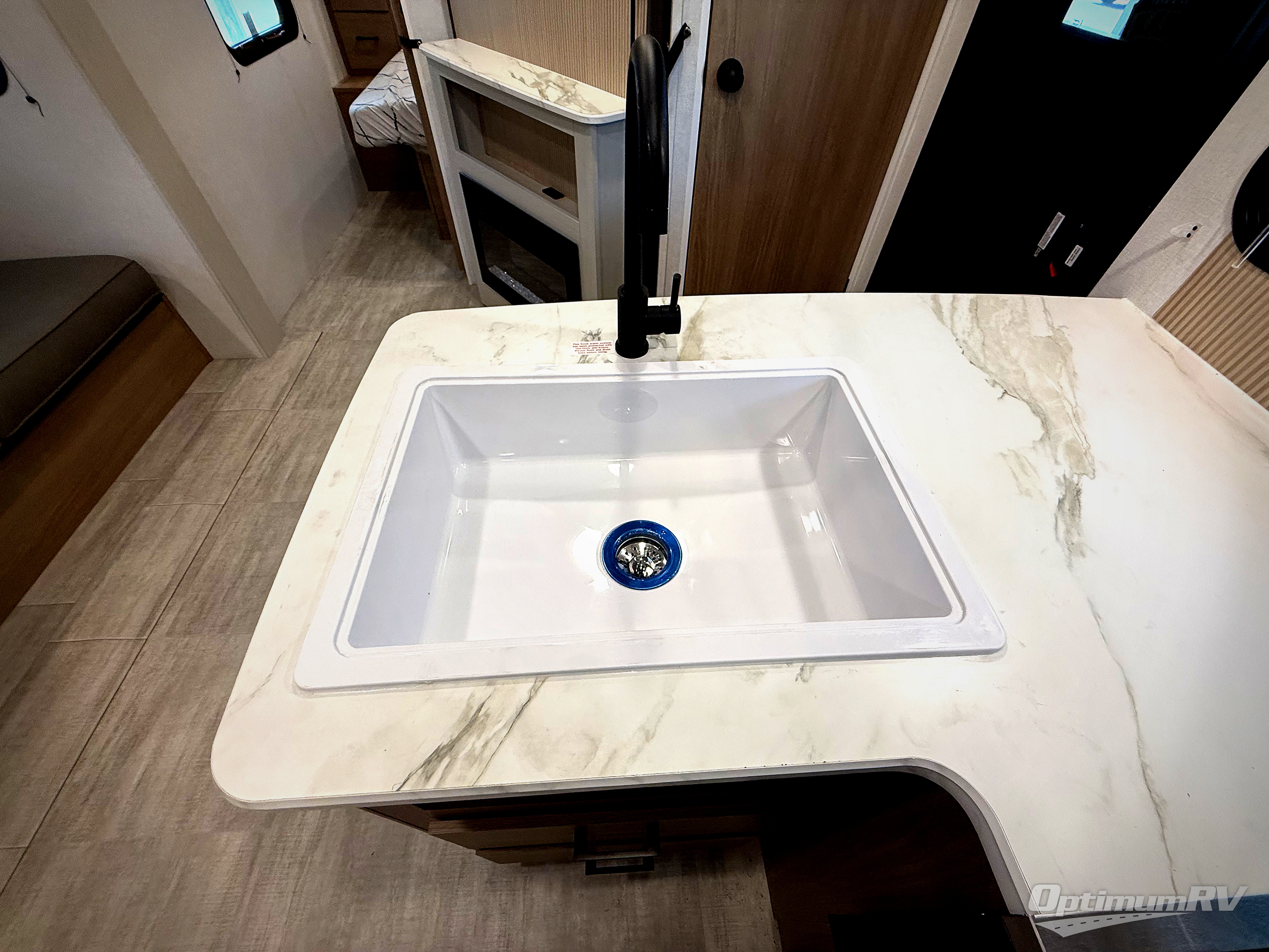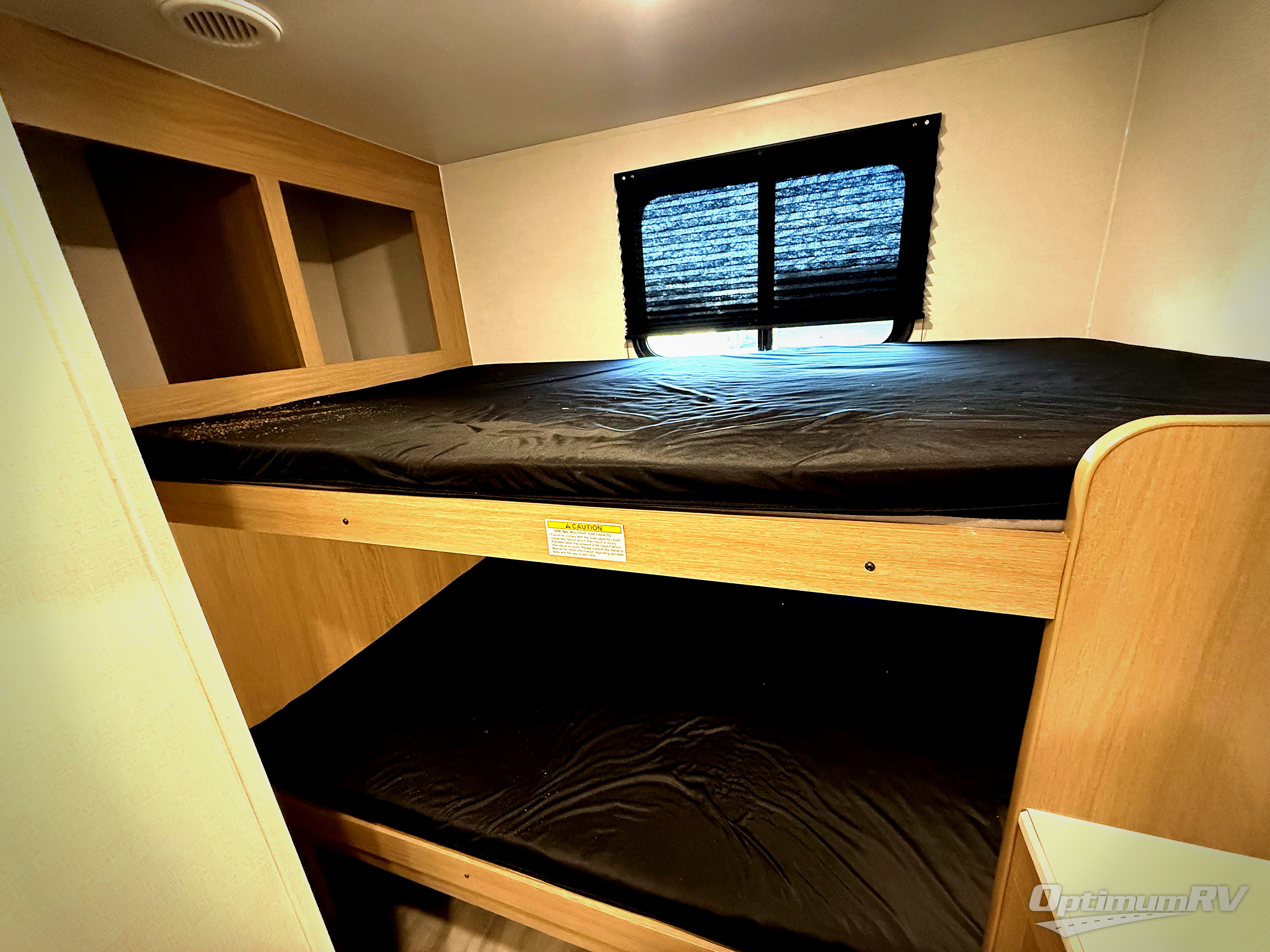 This travel trailer is one your whole crew will love! There is a rear private bunkhouse with double-size bunks for the little ones, a front private bedroom for you, and a booth dinette and jackknife sofa for even more sleeping space! The chef has their choice to cook indoors on the three burner range and microwave oven, or head outdoors to cook on the outdoor kitchen! The full bath will let everyone clean up each day, and the fireplace and large slide out will make your space feel more like home. And don't overlook the pass-through storage and 16' power awning with LED lights!