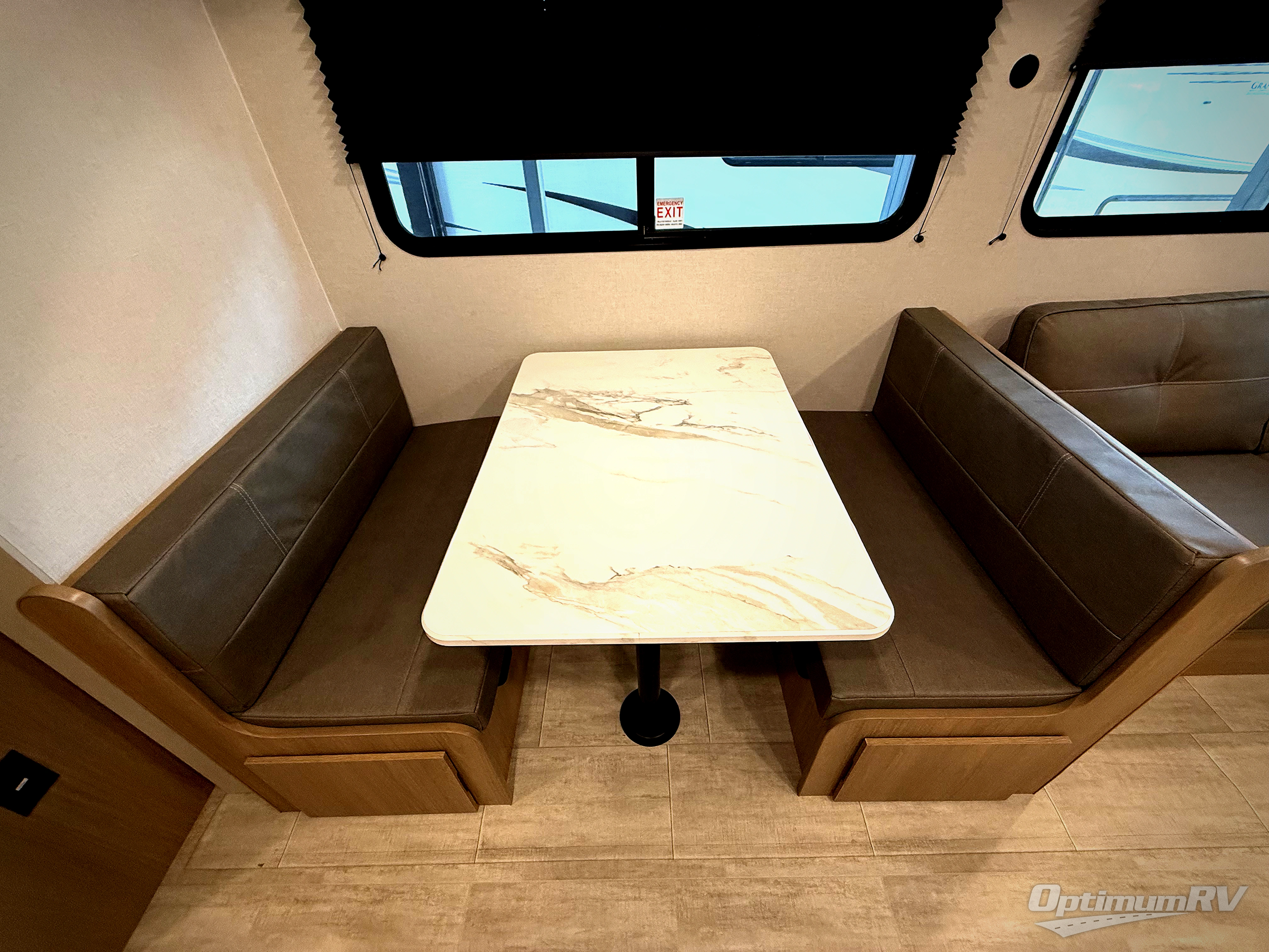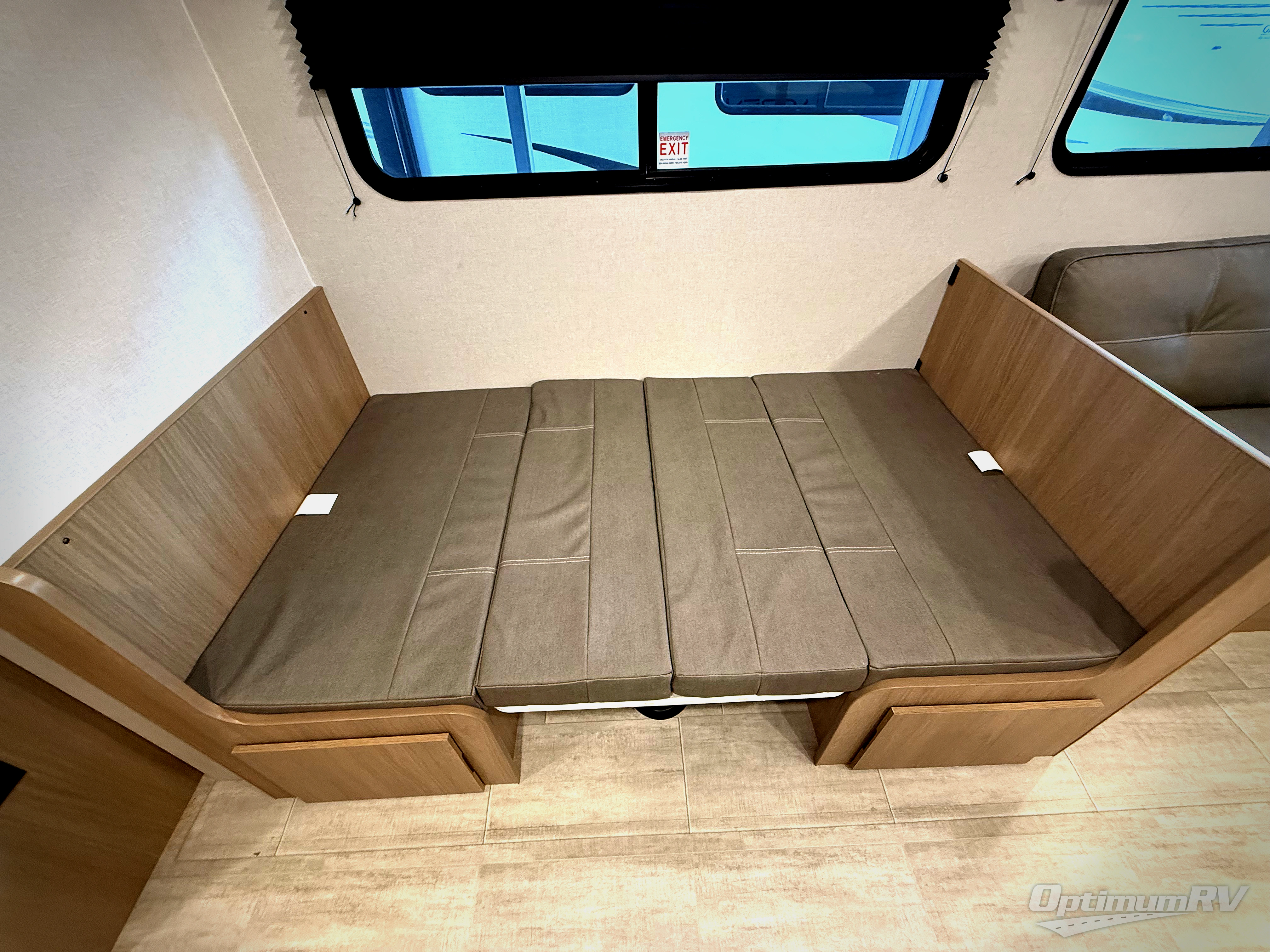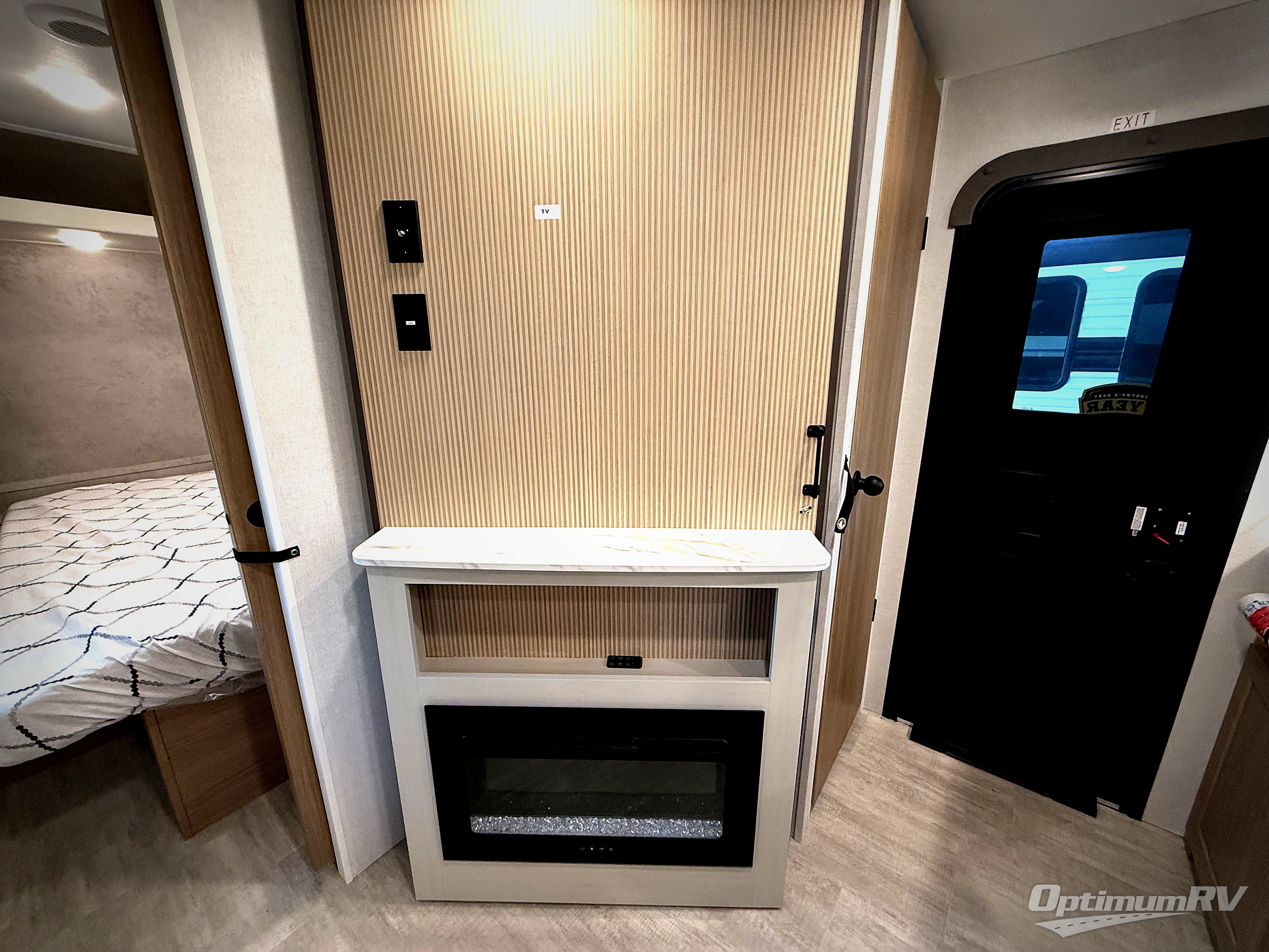 This travel trailer is one your whole crew will love! There is a rear private bunkhouse with double-size bunks for the little ones, a front private bedroom for you, and a booth dinette and jackknife sofa for even more sleeping space! The chef has their choice to cook indoors on the three burner range and microwave oven, or head outdoors to cook on the outdoor kitchen! The full bath will let everyone clean up each day, and the fireplace and large slide out will make your space feel more like home. And don't overlook the pass-through storage and 16' power awning with LED lights!