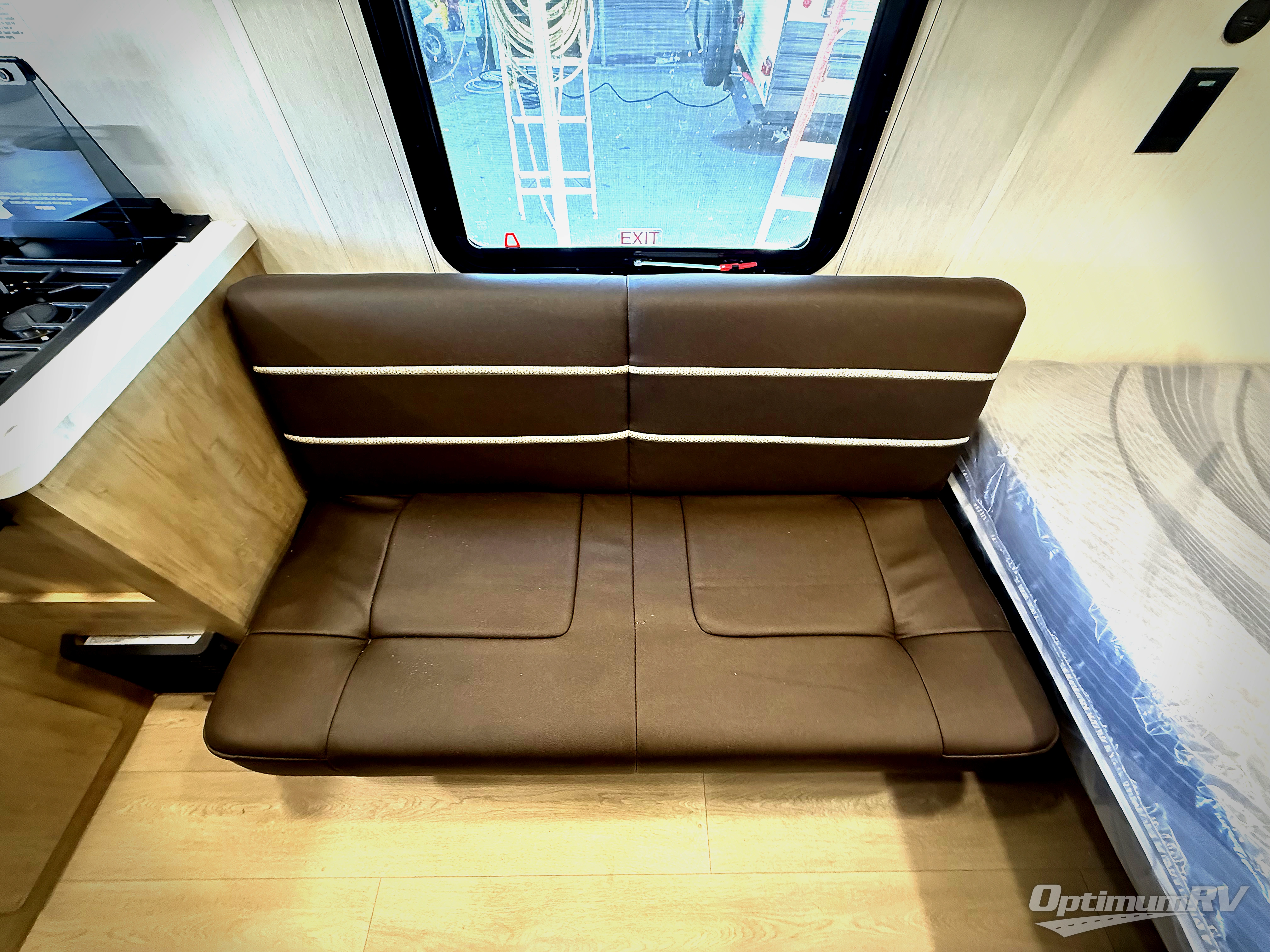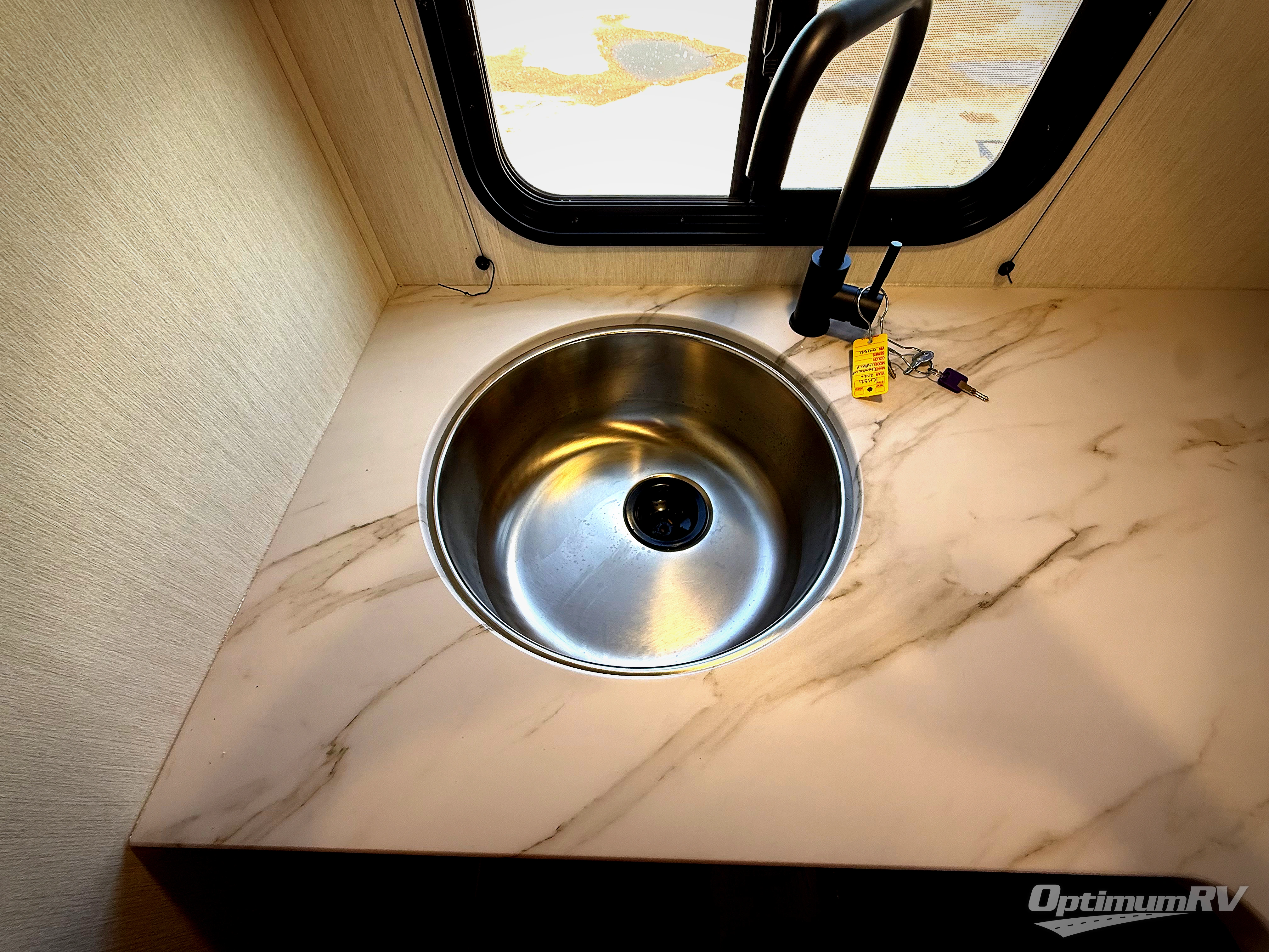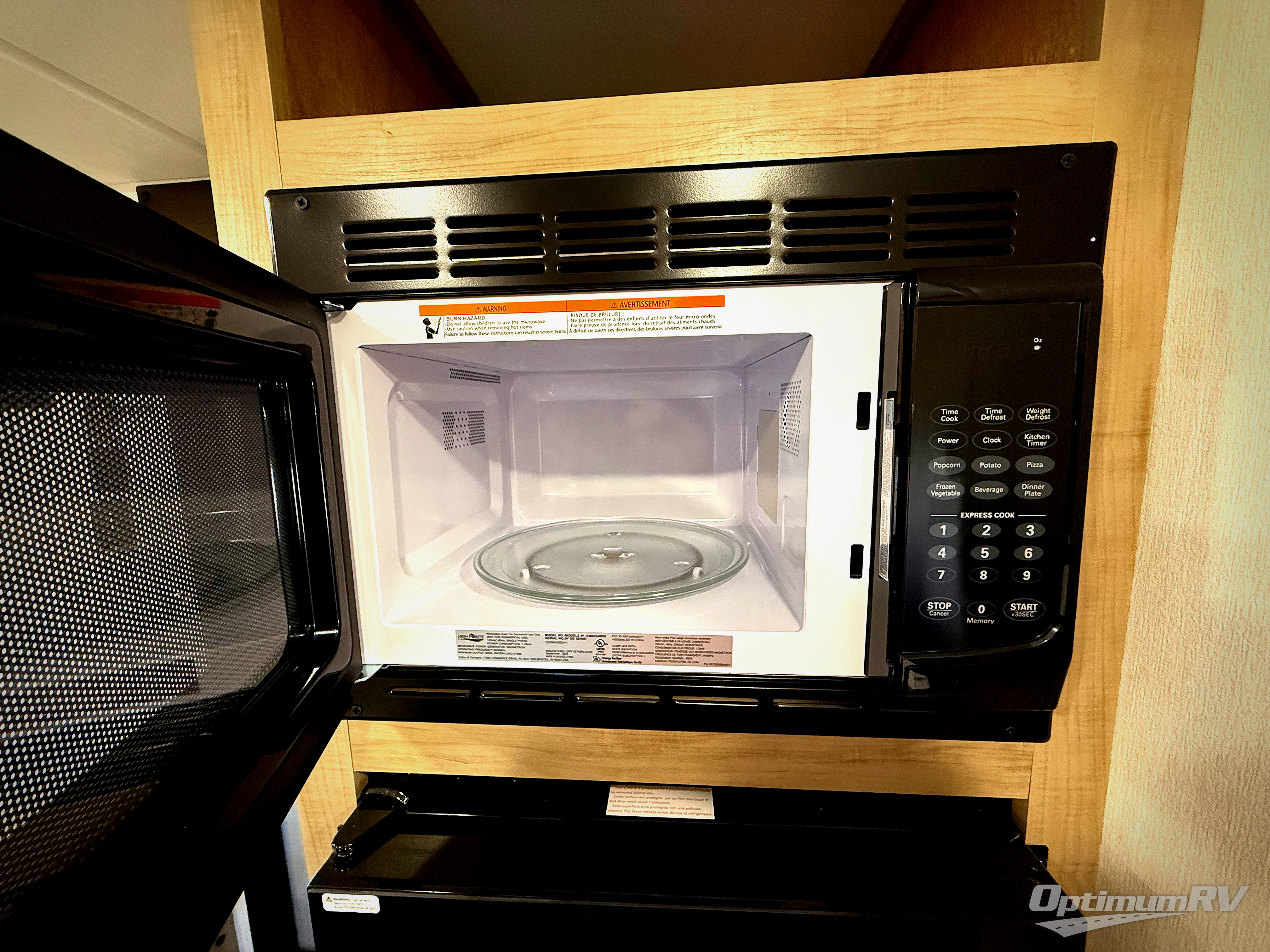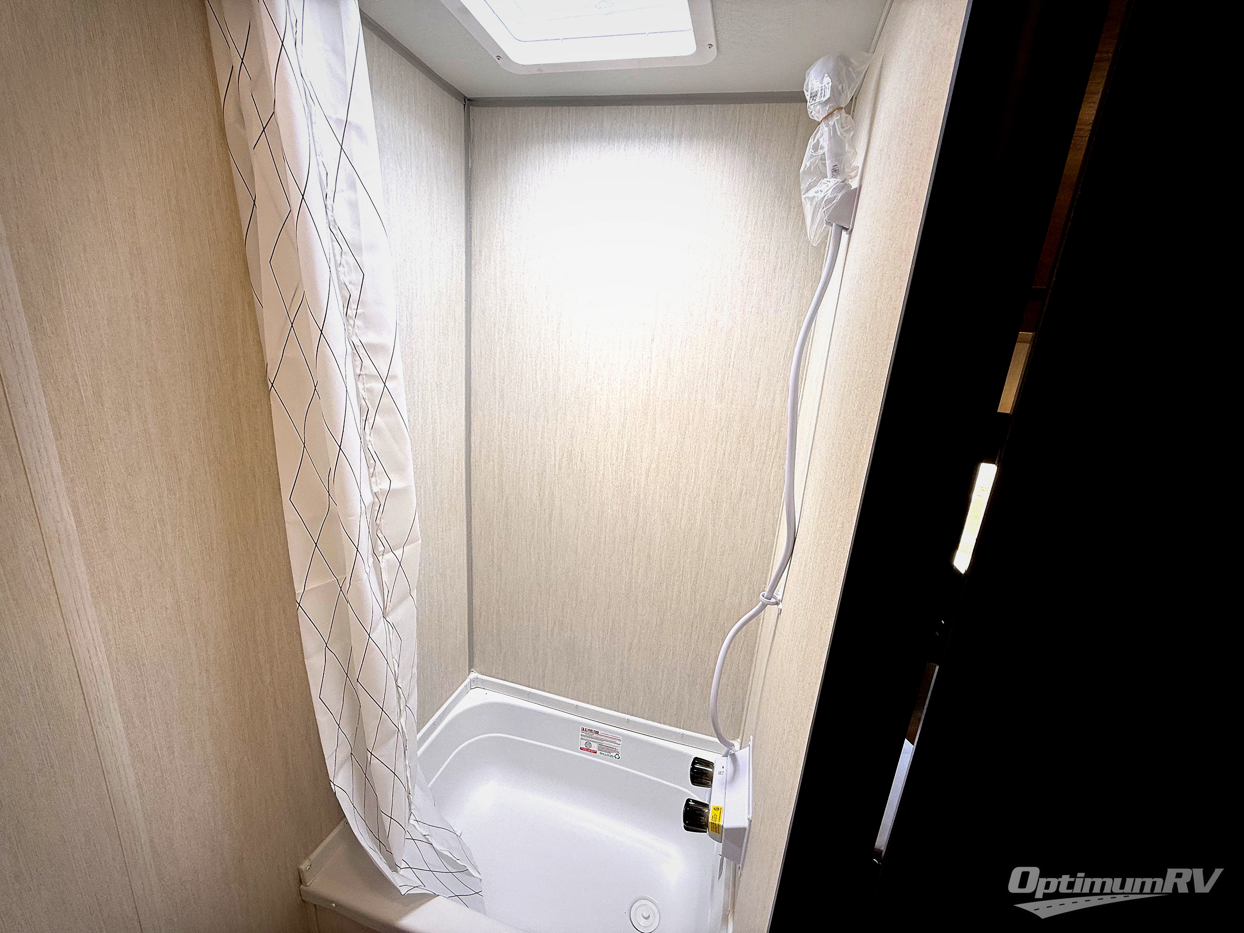 You will be enchanted by this travel trailer! The bathroom is equipped with everything you need for a comfortable stay. The kitchen is equipped with a refrigerator for keeping drinks and perishables fresh, a microwave for quick reheating, and a cooktop for preparing meals. The sofa provides a comfortable seating area for relaxation and an extra sleeping area. Overhead cabinets and a shelf provide additional storage for essentials, cookware, and dishes. The queen-sized bed allows a comfortable sleeping space, perfect for unwinding after a long day.
