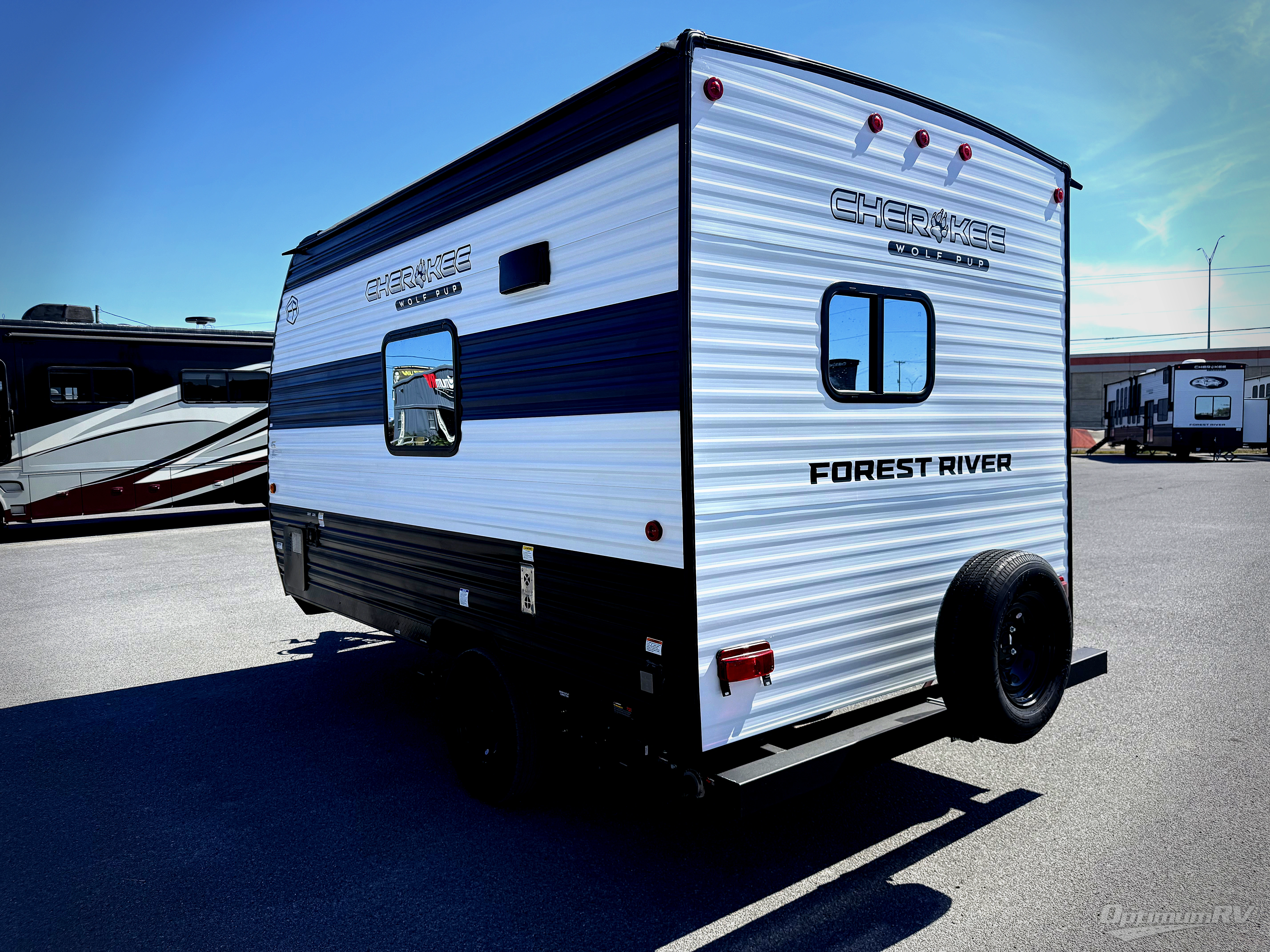 Each one of these Forest River Cherokee Wolf Pup travel trailers and toy hauler are lightweight and easy to tow! They are fully self-contained with ample tank capacities, an abundance of storage space, and filled with at home amenities. The full bath and kitchen amenities will make life at the campground easier than ever, and the outdoor patio awning will provide an inviting outdoor space!