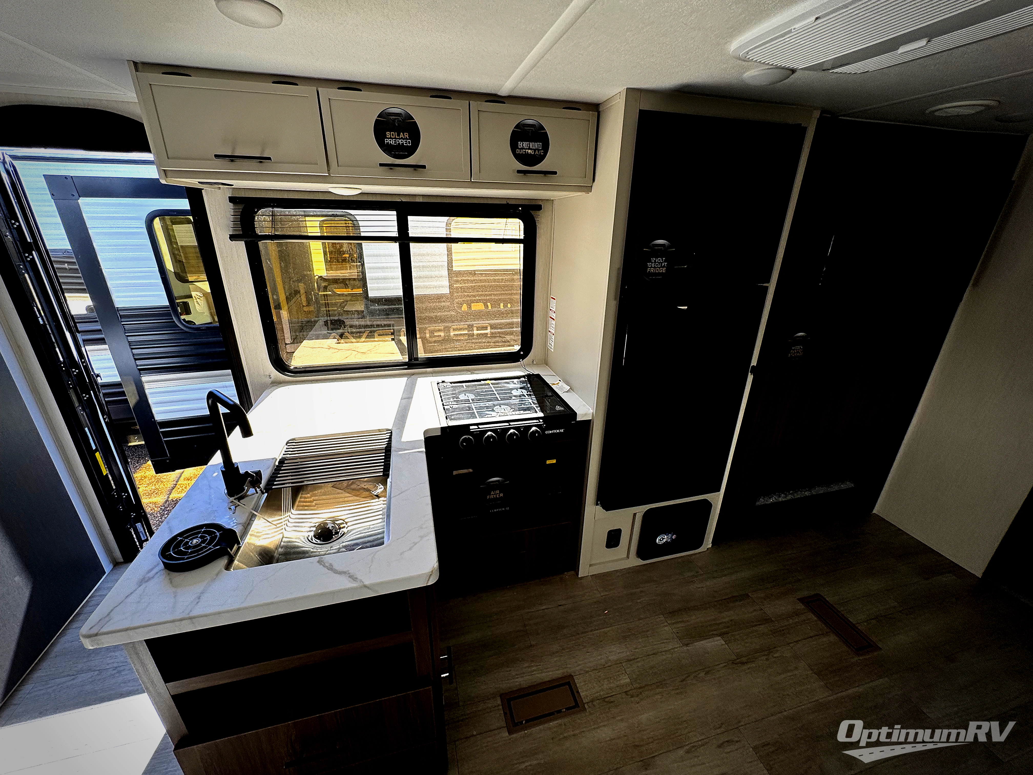 With any Avenger travel trailer by Prime Time RV, you will find innovation, a solid build, and comfort at every turn. Each model is built with Tuff Coat on the exterior metal, a fully enclosed underbelly, and a PVC roof membrane to help extend the life of your trailer. You will also find automotive name badging on the exterior, along with an exterior shower, front rail LED light strips, plus an XL padded entry grab handle to name a few conveniences. There are plenty of storage spaces inside, as well as Congoleum flooring and woven PVC marine grade slide out flooring, a designer shower surround, and seamless pressed countertops. You are sure to appreciate the onboard water filtration system, tankless water heater, plus 30K BTU furnace and 15K ducted A/C to help keep you comfortable.